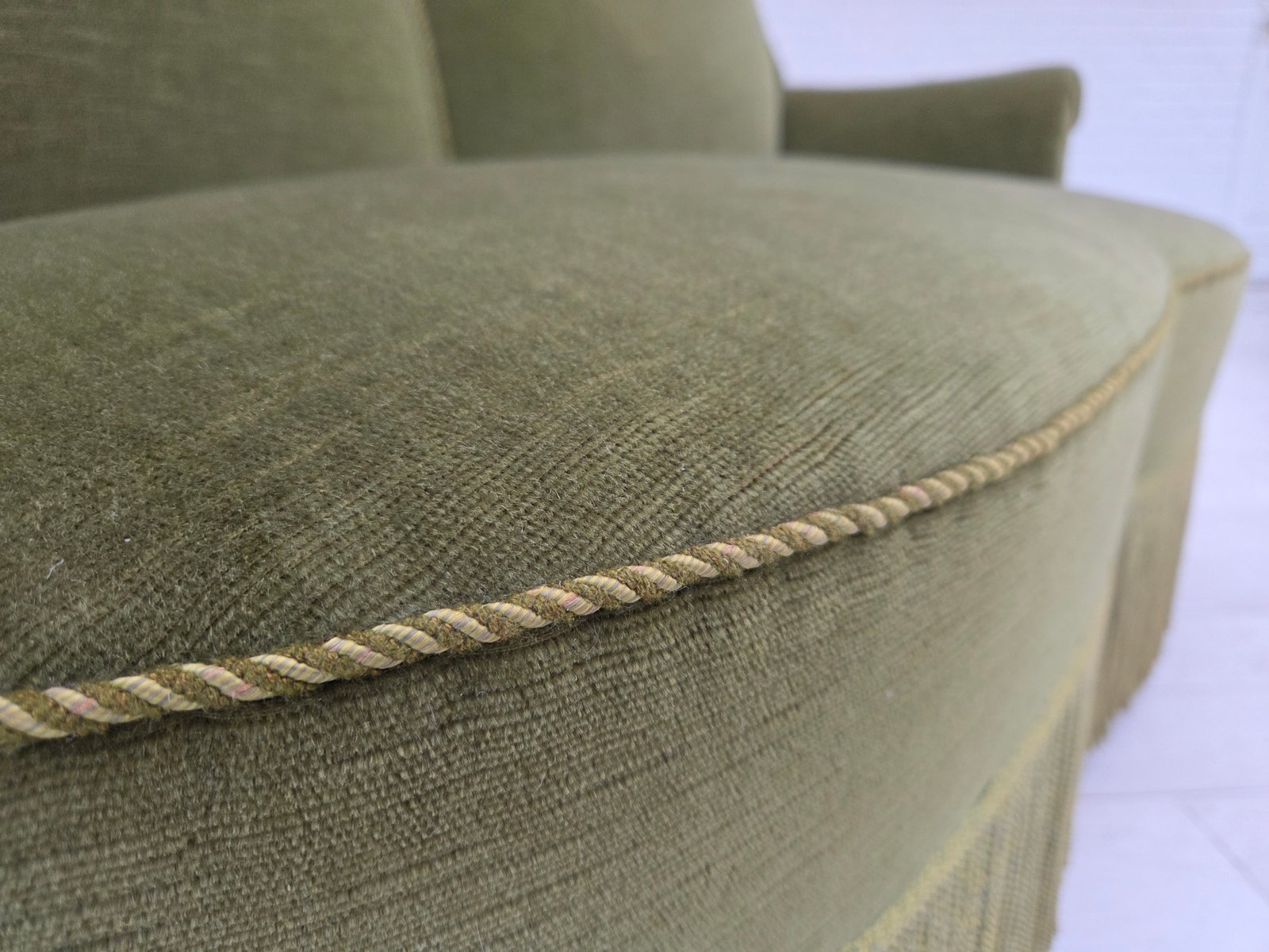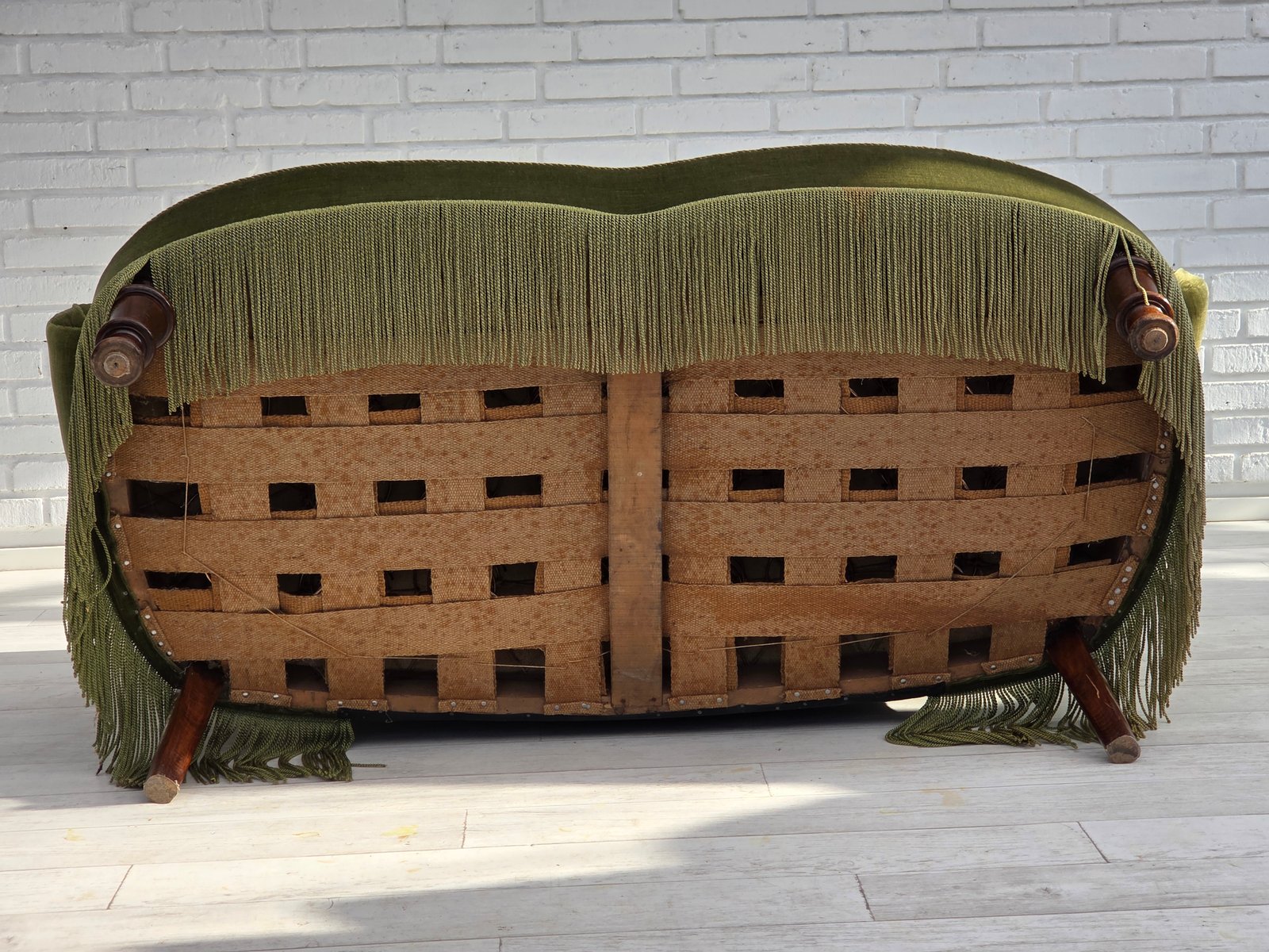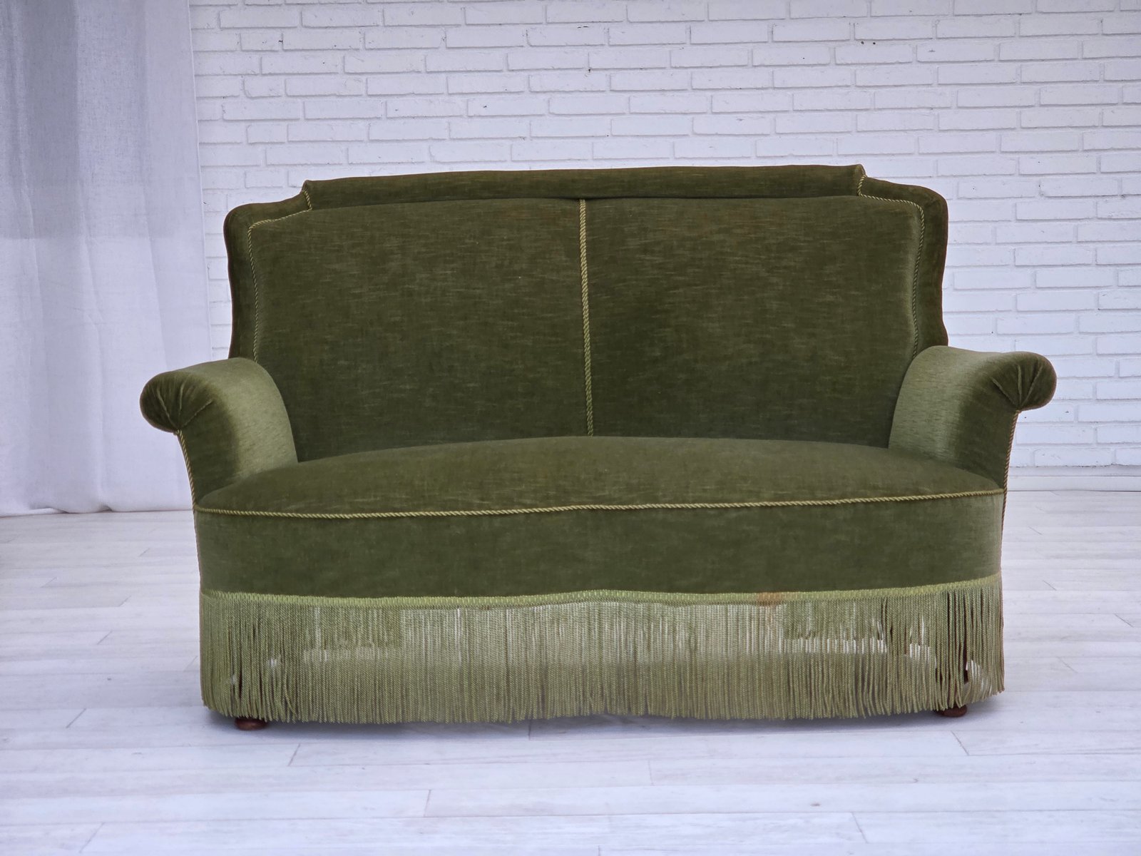 Divano a due posti in velluto verde e gambe in faggio, Danimarca, anni '60