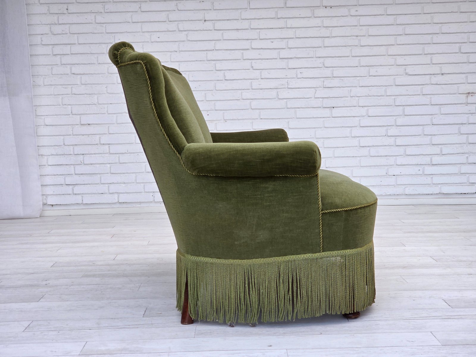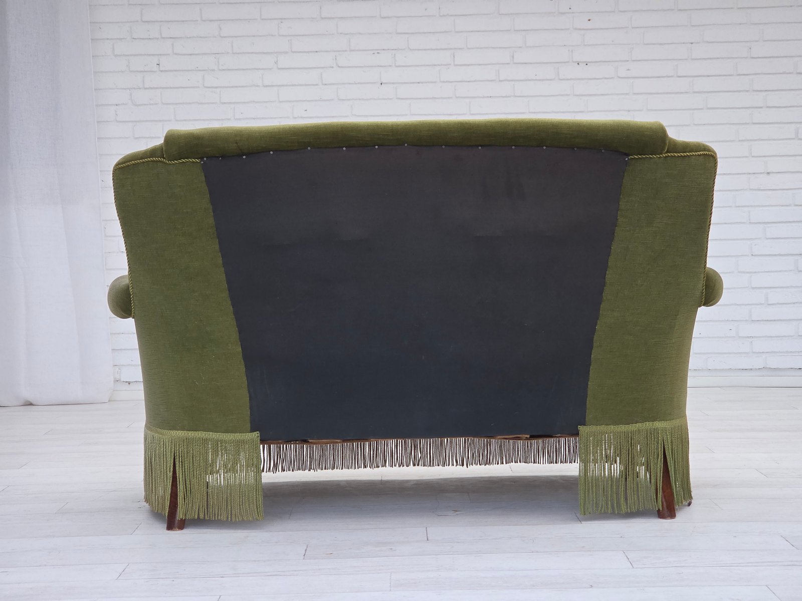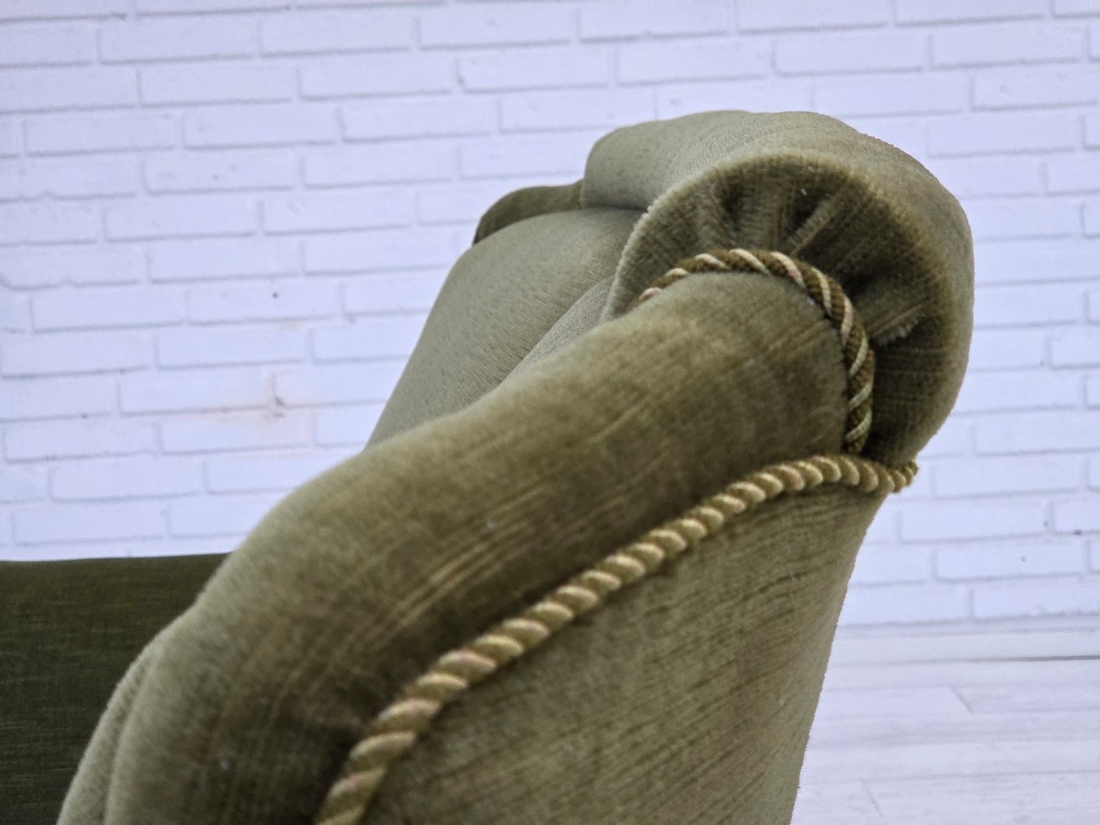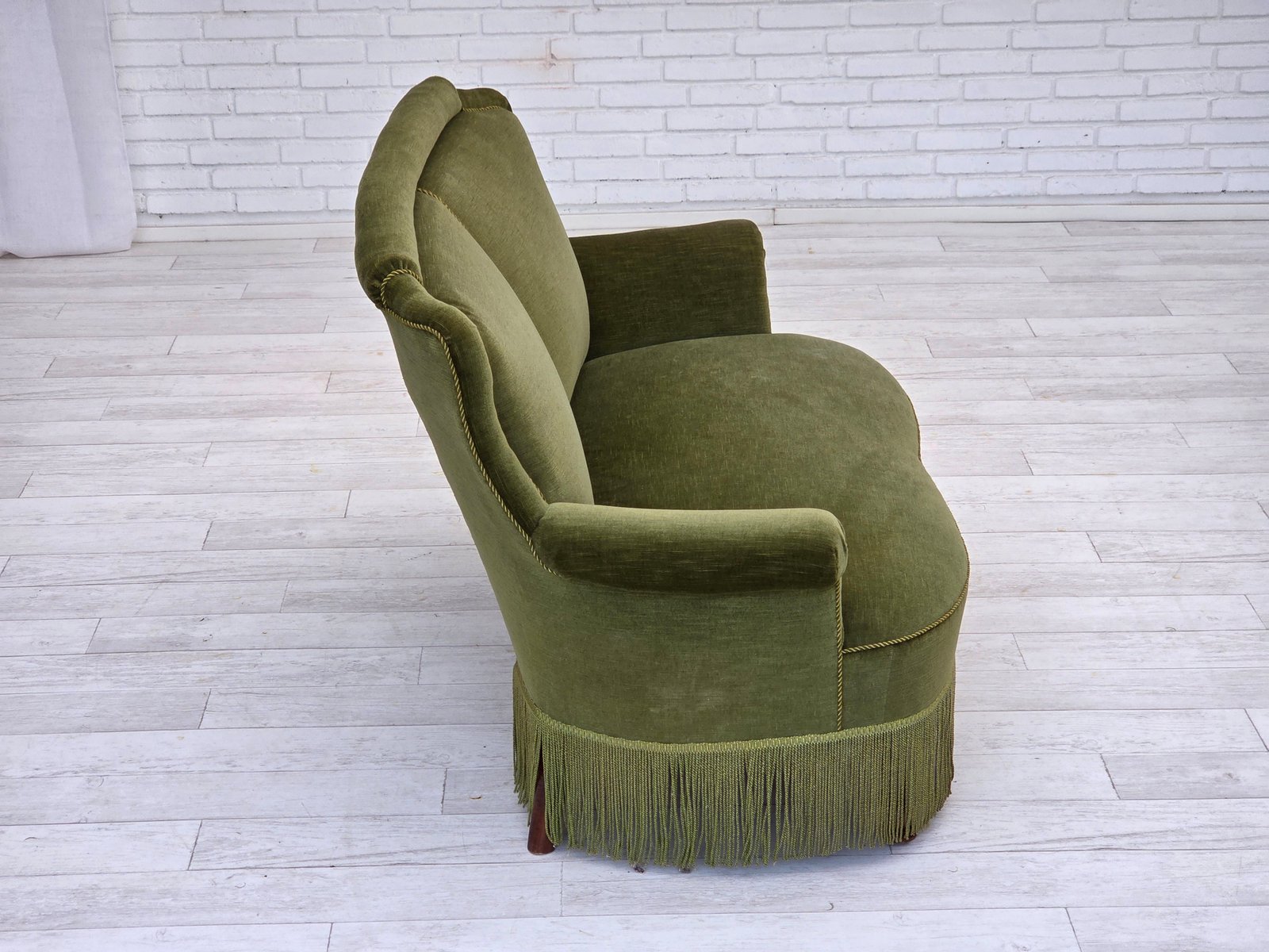 Divano a due posti in velluto verde e gambe in faggio, Danimarca, anni '60