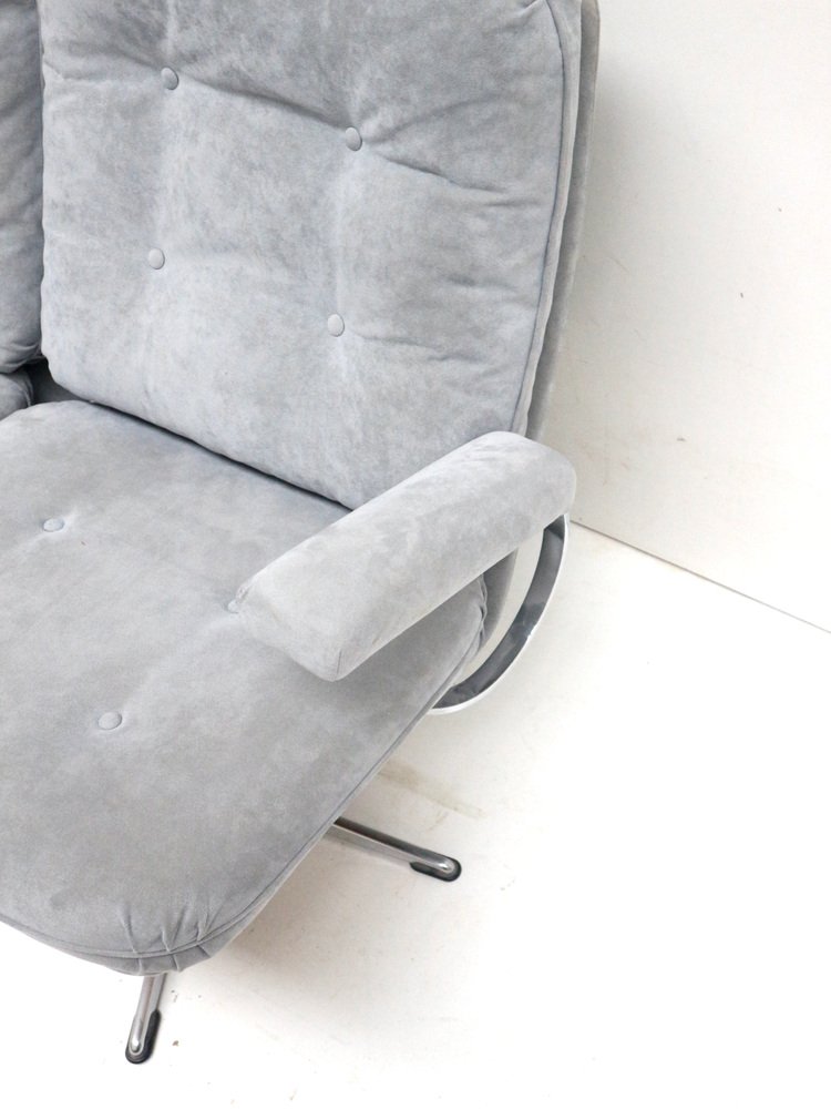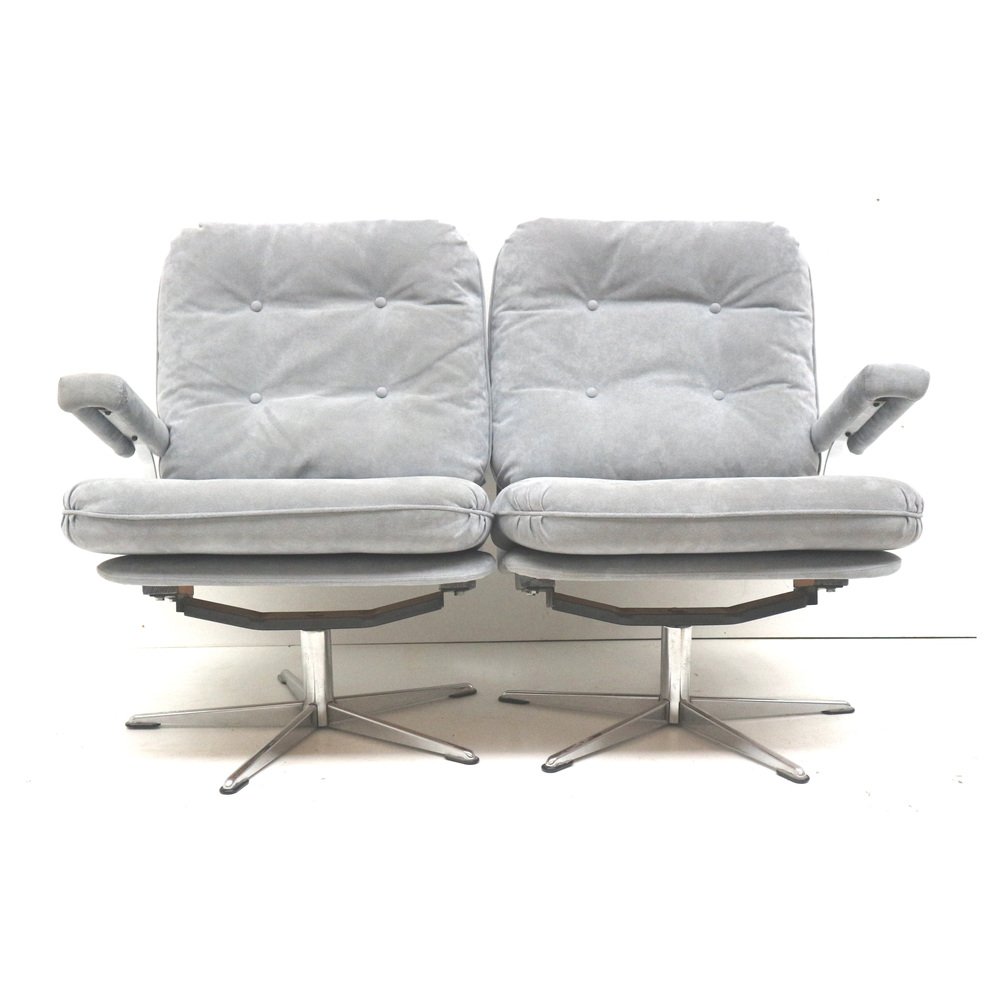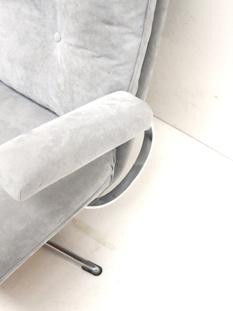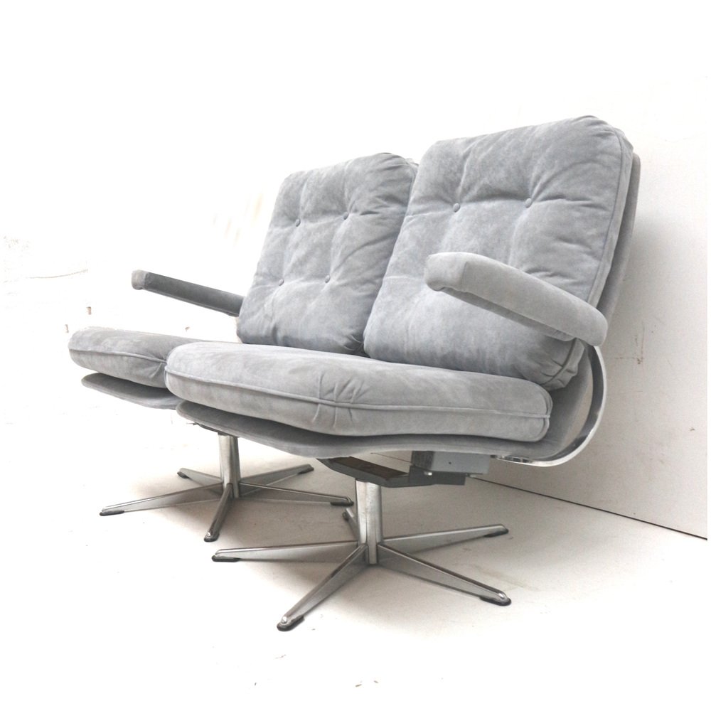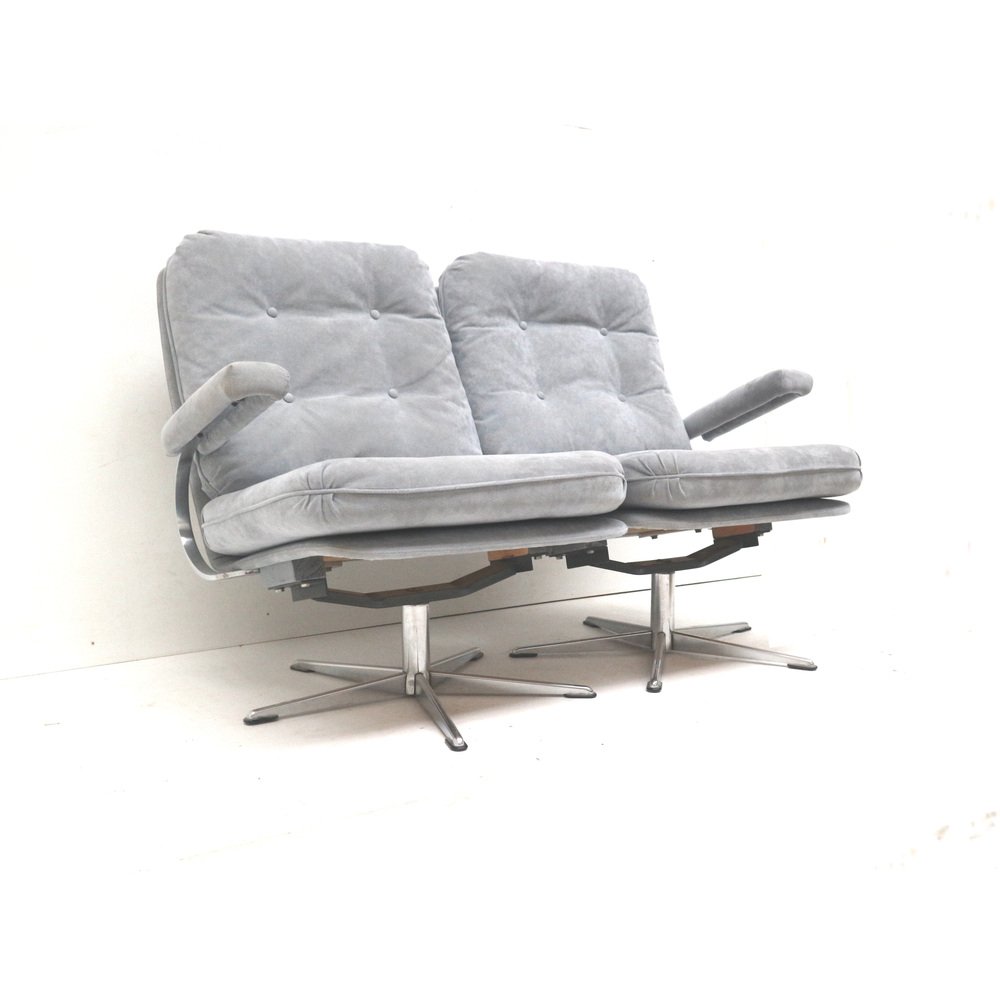Divano a due posti vintage con rivestimento in pelle scamosciata grigia, anni '70