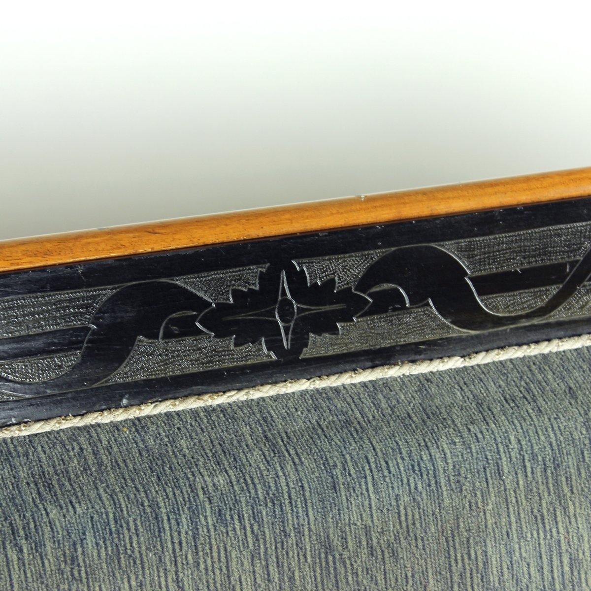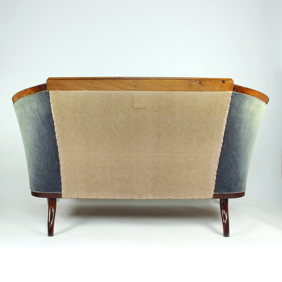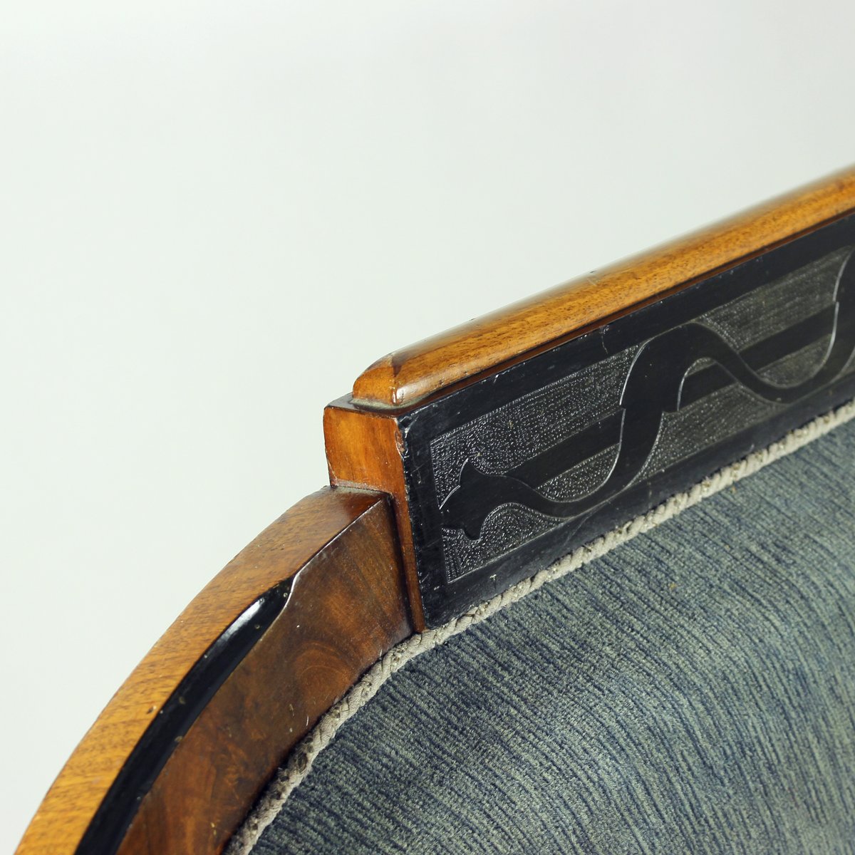 An outstanding example of early 19th-century craftsmanship, this original Biedermeier sofa was produced in Vienna, Austria in 1825. Elegantly proportioned and richly detailed, the piece embodies the refined simplicity and understated luxury of the Biedermeier period. The sofa retains its original grey-blue velvet upholstery, complemented on the back side by the period linen fabric. The seat is constructed with quality spring seat, offering both comfort and durability. The springs are in very good condition. Exquisite hand-carved details on the legs showcase the superior carpentry and timeless artistry characteristic of Viennese Biedermeier furniture.