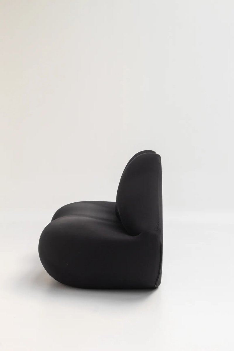 Reimagined in a bold new take, the Dark Lady sofa by Studio65 for Gufram embodies the insolence and freedom of radical Italian design. Inspired by Marilyn Monroe's lips, this classic becomes provocative with its velvety black dress and removable chrome piercing.