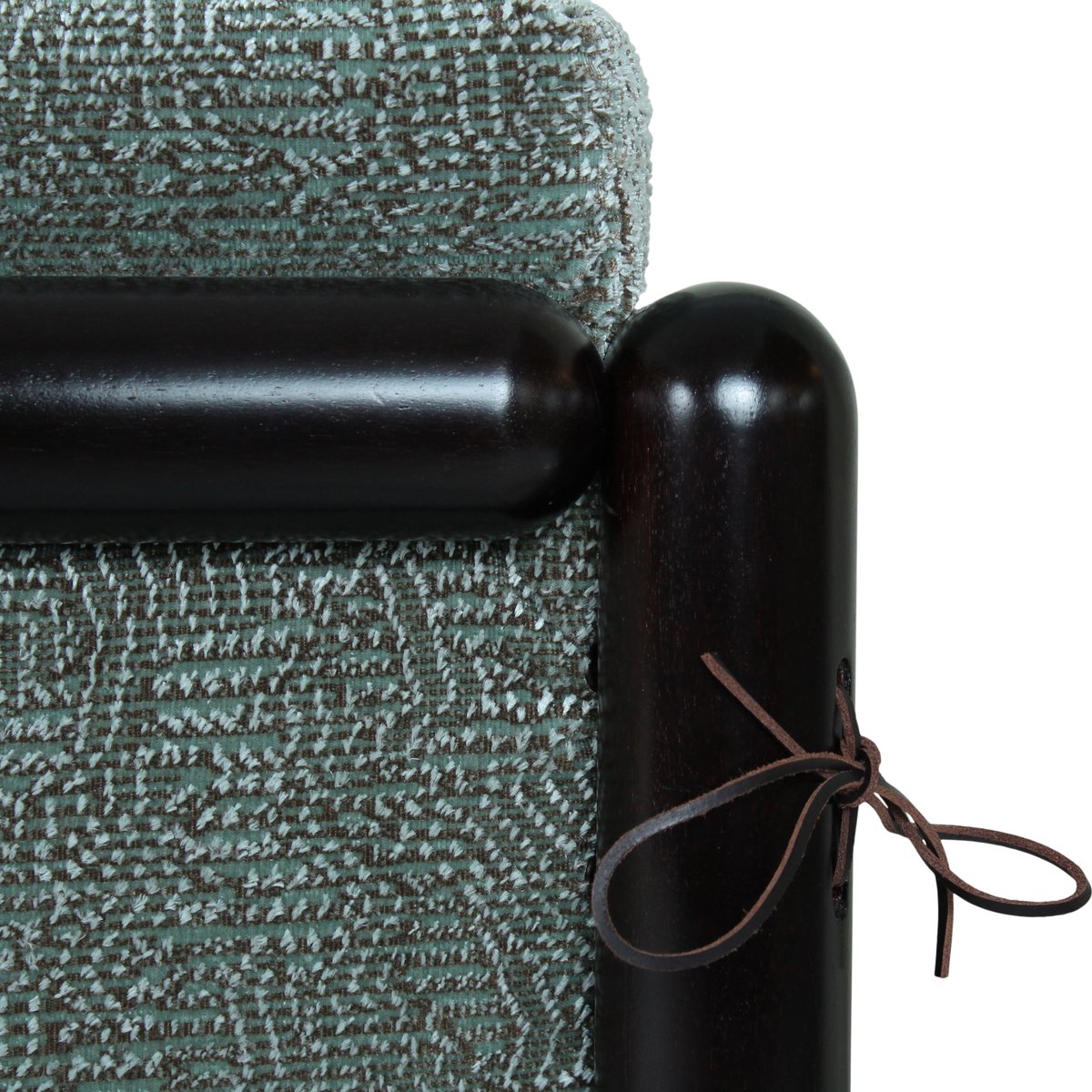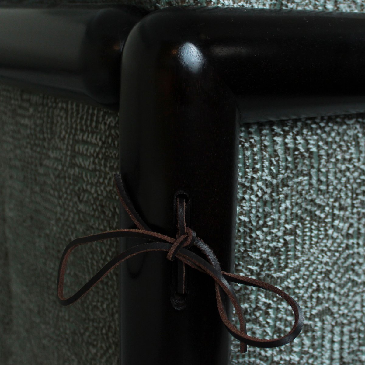 The sculptural structure, crafted in solid Iroko wood, expresses Scarpa’s signature architectural sensibility — a dialogue between geometry, proportion, and material honesty. The restoration preserves its original integrity while enhancing both comfort and visual richness.