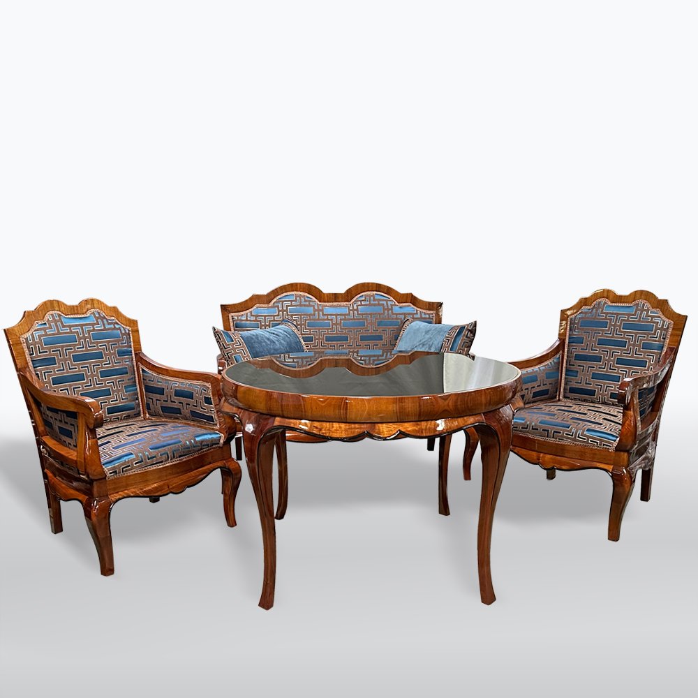 Divano e sedie Art Déco con tavolino, anni '30, set di 4