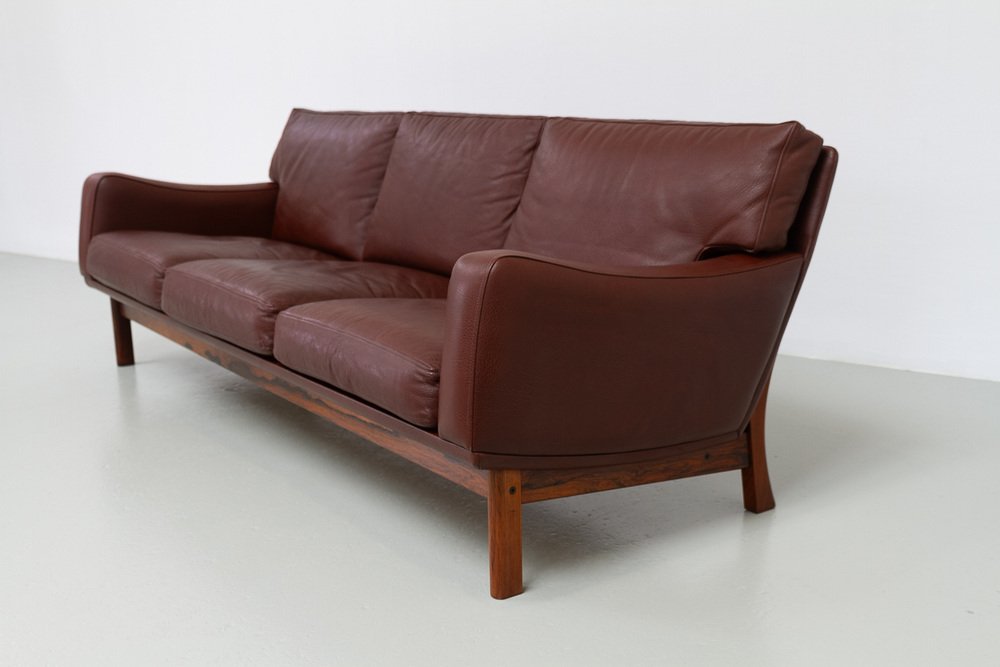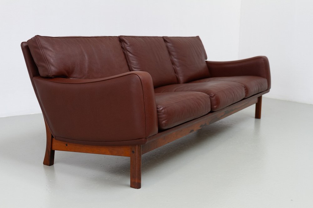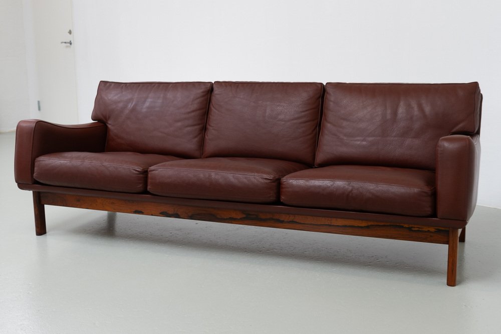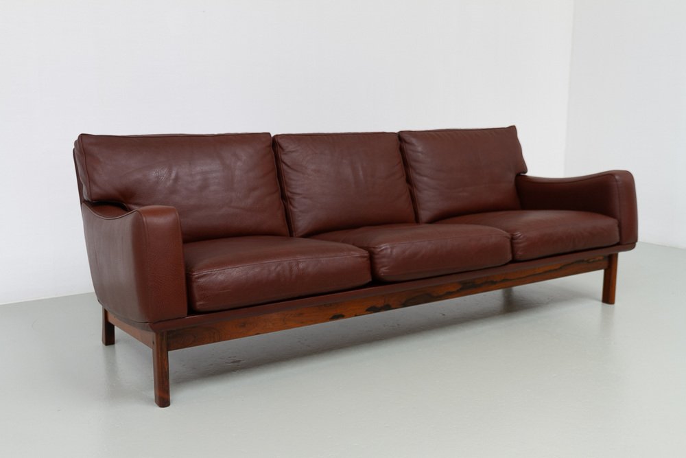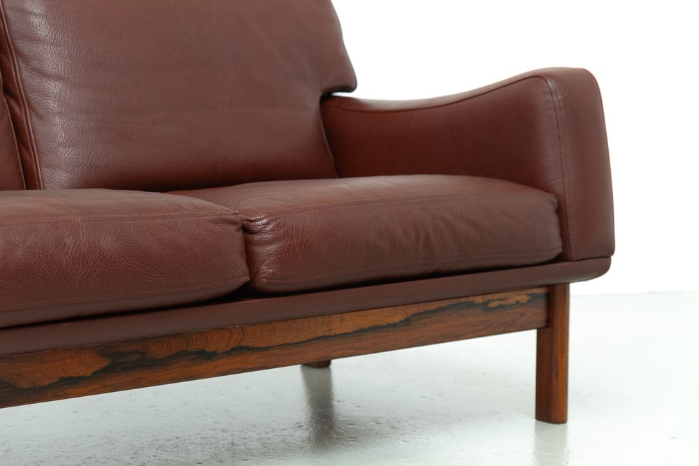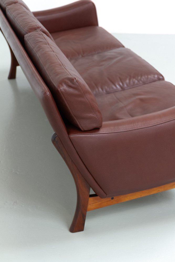 Divano moderno in pelle e palissandro di Eran, Danimarca, anni '60