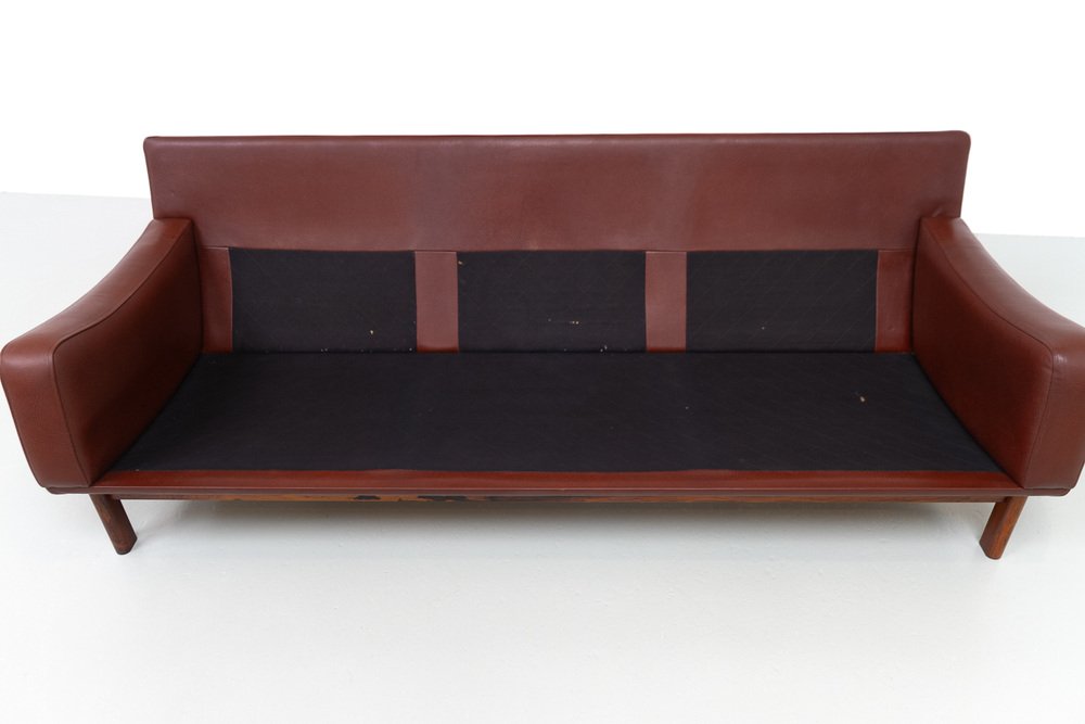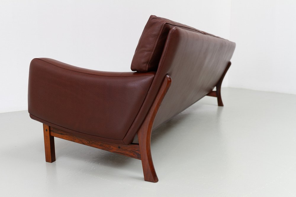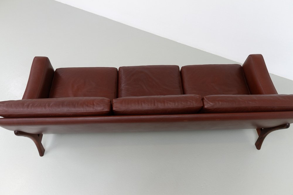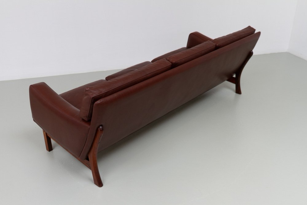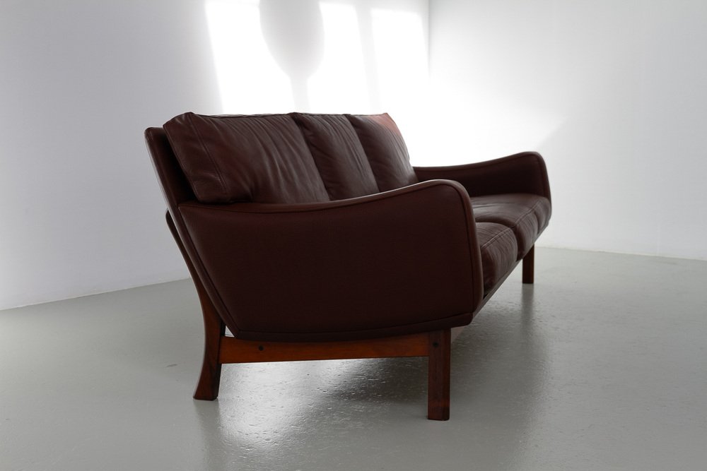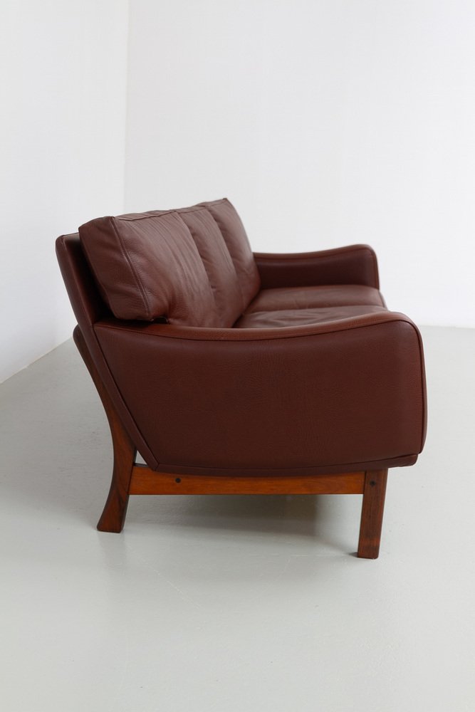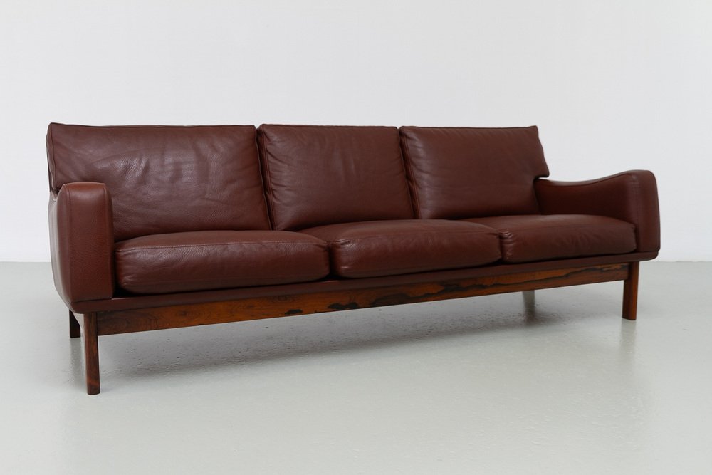 Divano moderno in pelle e palissandro di Eran, Danimarca, anni '60