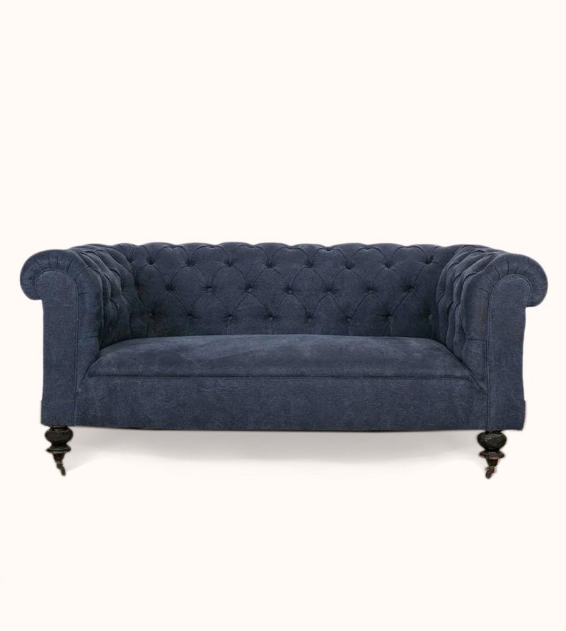 L'aggiunta di rotelle su tutte e quattro le gambe assicura una mobilità senza sforzo, consentendo di riorganizzare senza problemi lo spazio. La caratteristica davvero eccezionale di questo divano è l'estremità a ribalta, che ne aumenta il comfort per un piacevole relax.Con un aggiornamento fresco e robusto, il divano abbraccia un nuovo capitolo con un resistente rivestimento in lino blu stonewashed. Il divano è rivestito in modo tradizionale, ma rinuncia alla moderna schiuma in favore del crine di cavallo, che ne accresce l'autenticità e il fascino.Un'aggiunta senza tempo a qualsiasi casa, questo divano combina perfettamente comfort e stile classico.