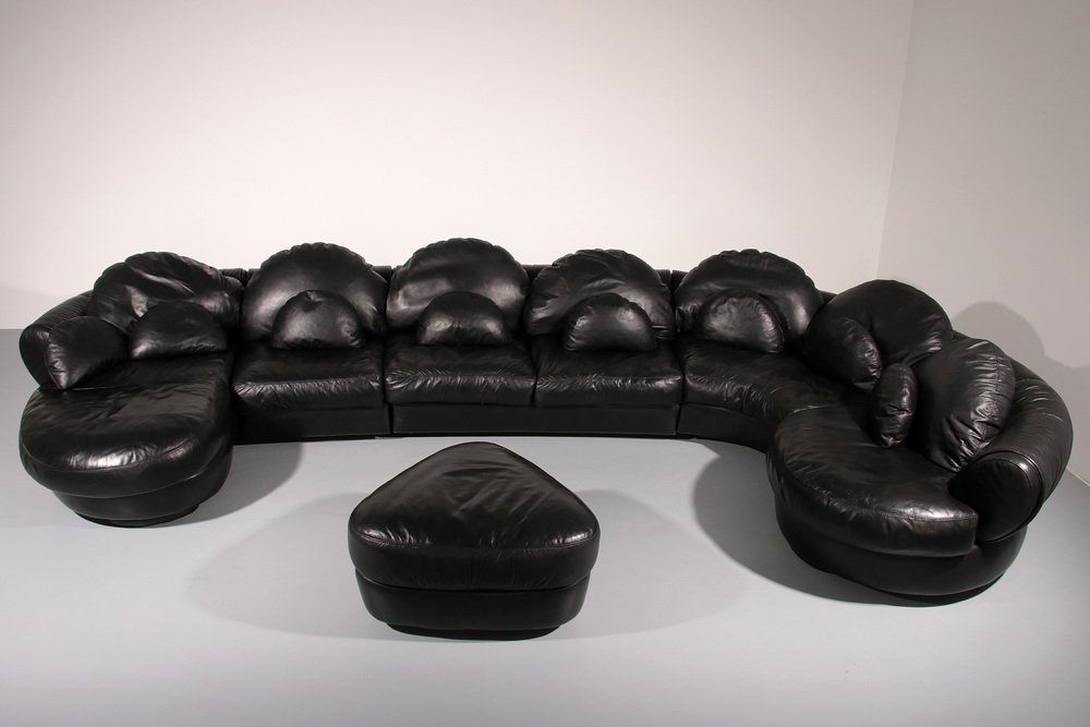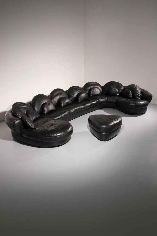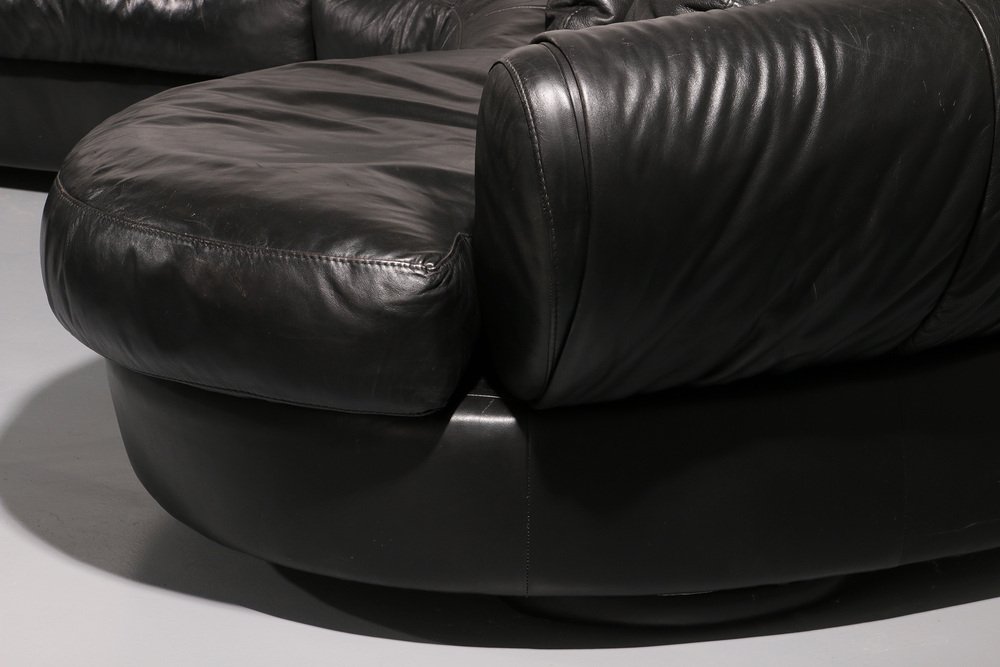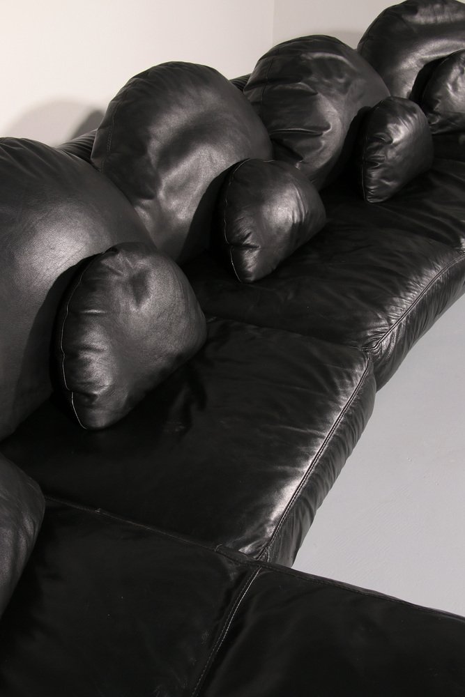 Entrate in un mondo in cui il comfort incontra l'arte con questo straordinario divano componibile degli anni Ottanta. Realizzato in Europa durante l'apice del design postmoderno, questo divano è più di una semplice seduta: è una dichiarazione. Le sue curve fluide e sinuose e i sedili ampi e generosamente imbottiti invitano al relax, all'ozio o all'intrattenimento nel massimo comfort. Ogni elemento emana personalità, ma l'elegante pelle nera garantisce un'eleganza senza tempo che si adatta a qualsiasi interno. Sia che stiate curando uno spazio abitativo moderno o aggiungendo un tocco eccentrico a una casa contemporanea, questo capolavoro modulare attira l'attenzione.