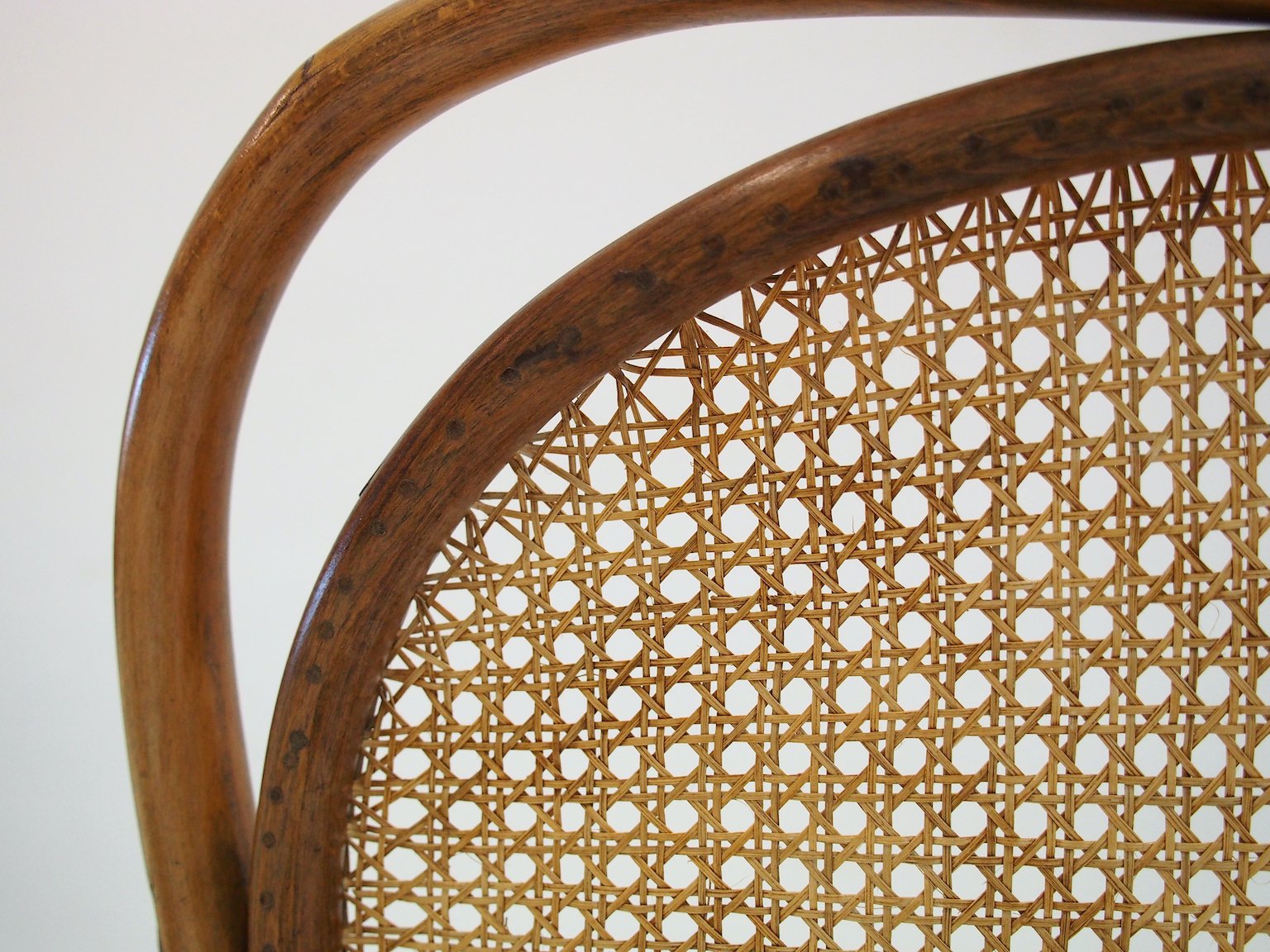 Iconic pieces from the traditional Gebrüder Thonet collection include Rocking Chair No. 1 (1860), No. 14 Café Chair (ca. 1859), Adolf Loos’s Café Museum Chair (1899), No. 209 Armchair (ca. 1900), Otto Wagner’s No. 247 Postal Savings Bank Chair (1904), and Josef Hoffmann’s No. 811 (1925).
