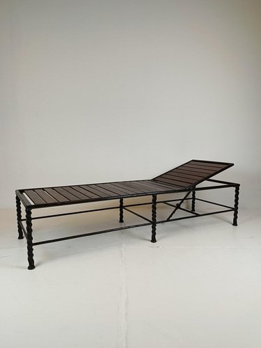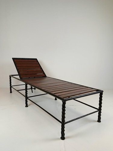 A classic Italian daybed embodies timeless elegance and craftsmanship. Typically designed with a blend of sleek lines and ornate details, these daybeds often feature materials such as rich wood, plush and intricate work. The design reflects Italy's renowned artistic heritage, merging functionality with aesthetic appeal. Perfect for adding a touch of refinement to any space, a vintage Italian daybed serves as both a stylish seating option and a comfortable place for lounging, capturing the essence of classic Italian luxury and design. with adjustable backrest. Made around 20th century Measurements Height 42cm Width 64cm Depth 200cm.