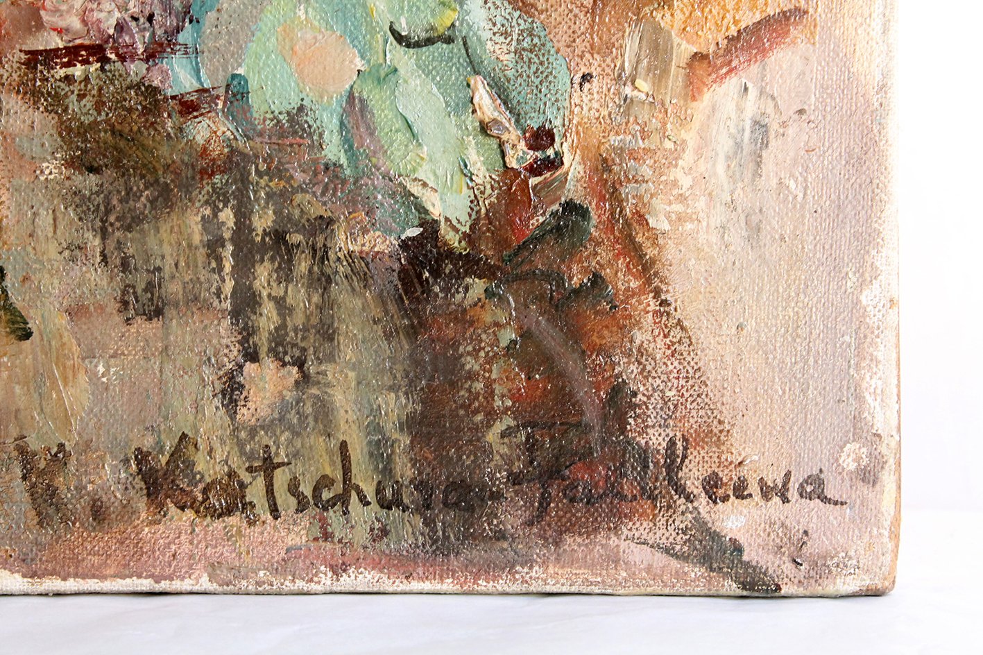 Ekaterina Nikolaevna Kachura (also Katschura)-Falileeva was born in 1886 in Warsaw (at that time - Russian Empire) as the daughter of Major-General serving in Volynski Guards Regiment, N. S. Rogal-Kachura. She studied at a secondary all-girls school in Kamenets-Podolsk (now West Ukraine). In 1907 she graduated from the painting class of Odessa Art College and, in the same year, entered the Imperial Academy of Fine Arts, where she studied until 1914 and where her teachers were D. N. Kardovski and N. N. Dubovskoy. Parallel to her studies at the Academy she attended the academic studio of engraver Professor V. V. Mate.