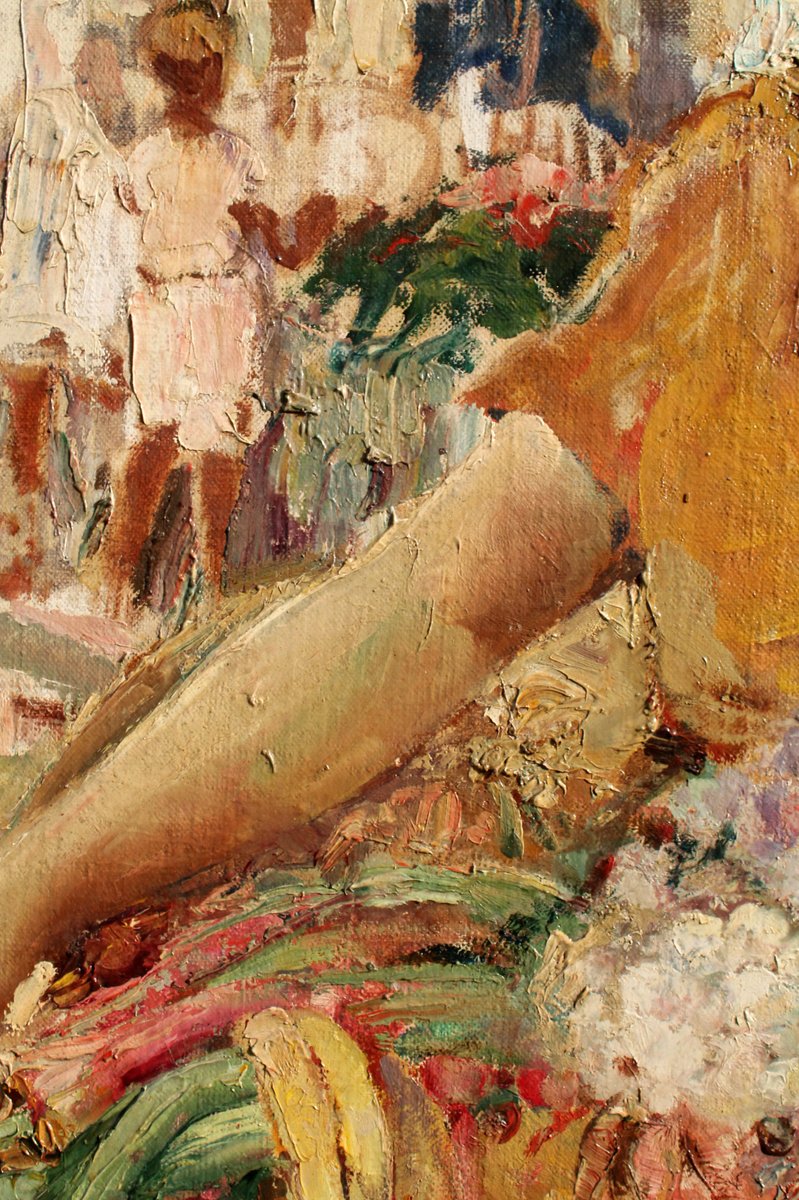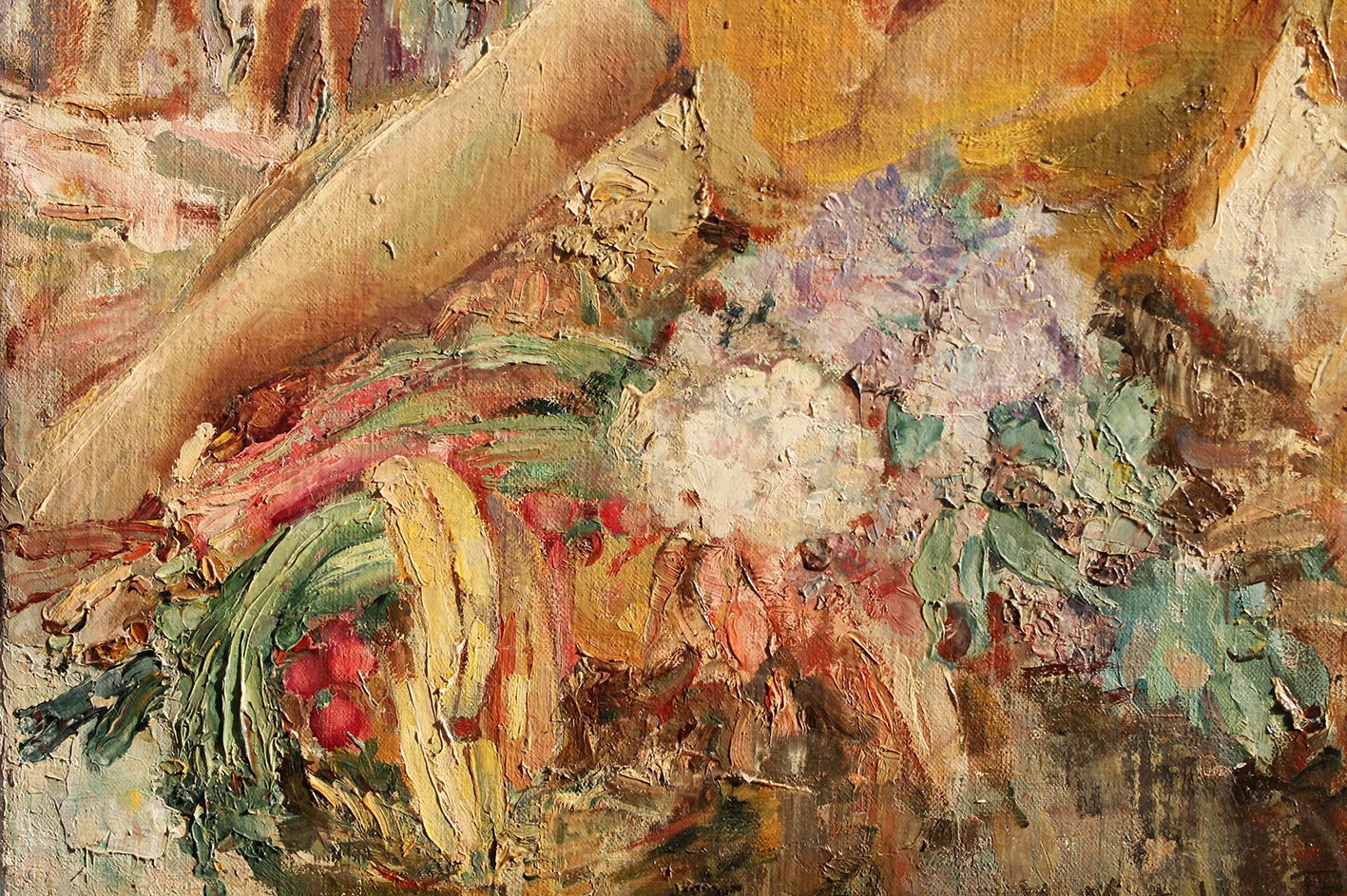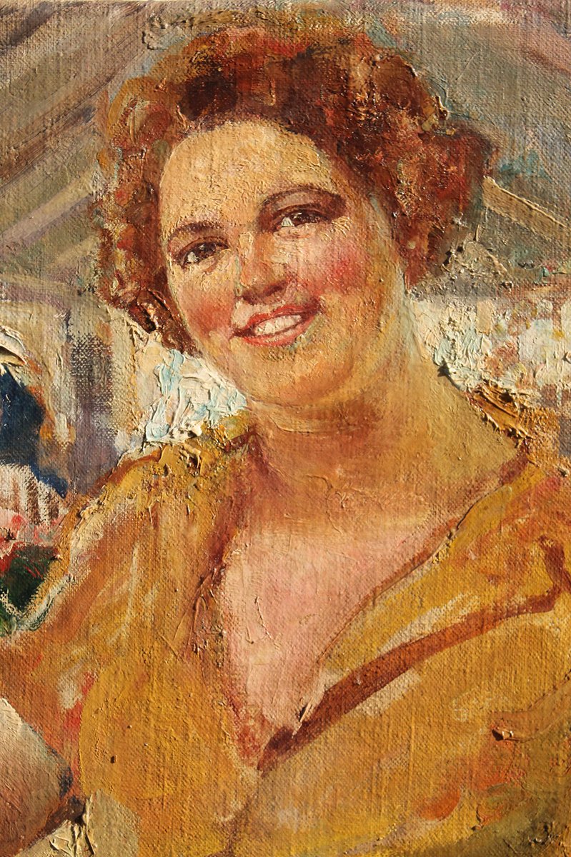 In her emigration period, Ekaterina Kachura-Falileeva was mainly active as a painter producing portraits and paintings with "Russian" subjects. She participated in various group exhibitions (among others, in the Exhibition of Russian Art in Berlin (1930)). Together with her husband, she held several exhibitions in Stockholm, Berlin, and Rome (1940, 1946). Her works were also shown in USSR: for example, shortly after her departure some of them were shown at the Jubilee Exhibition "Engraving Art in USSR of the last 10 years" (Moscow 1927).