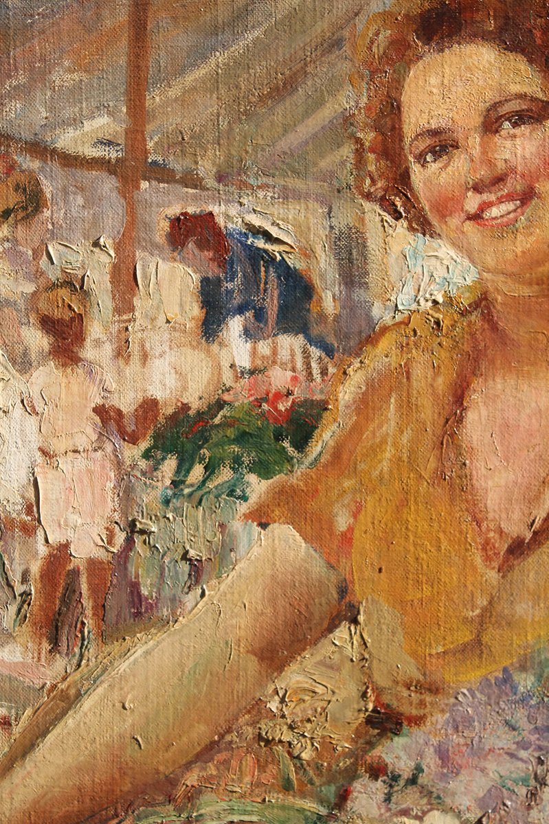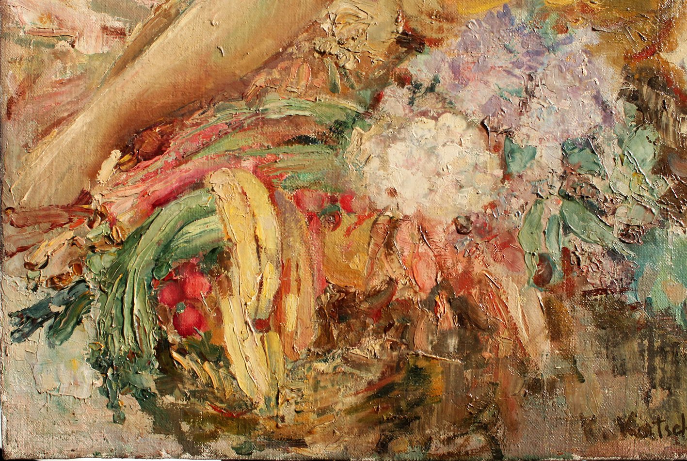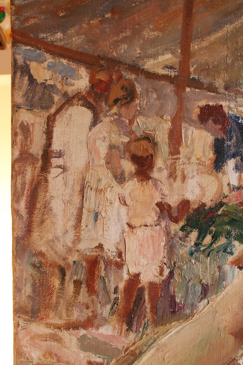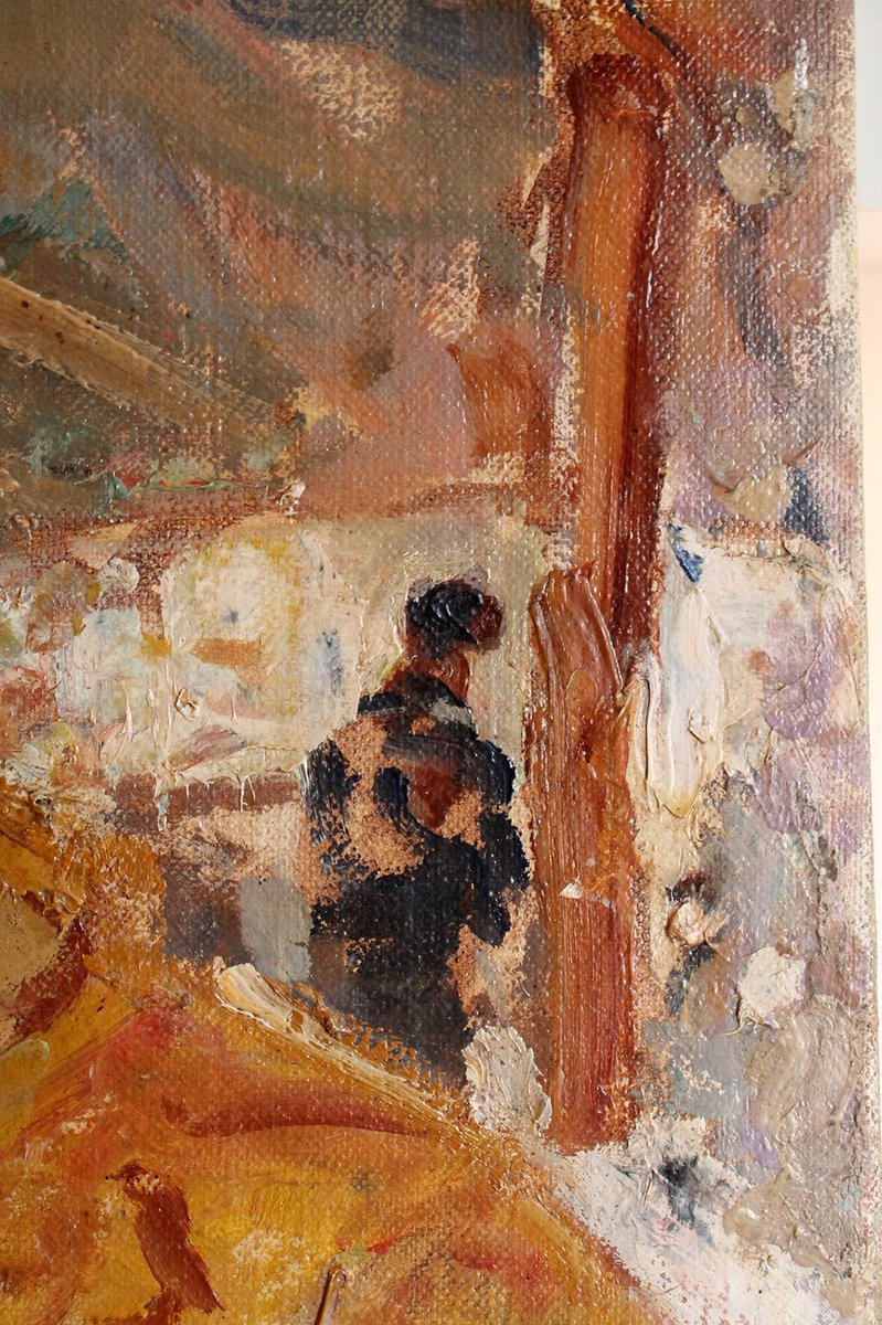 In her emigration period, Ekaterina Kachura-Falileeva was mainly active as a painter producing portraits and paintings with "Russian" subjects. She participated in various group exhibitions (among others, in the Exhibition of Russian Art in Berlin (1930)). Together with her husband, she held several exhibitions in Stockholm, Berlin, and Rome (1940, 1946). Her works were also shown in USSR: for example, shortly after her departure some of them were shown at the Jubilee Exhibition "Engraving Art in USSR of the last 10 years" (Moscow 1927).