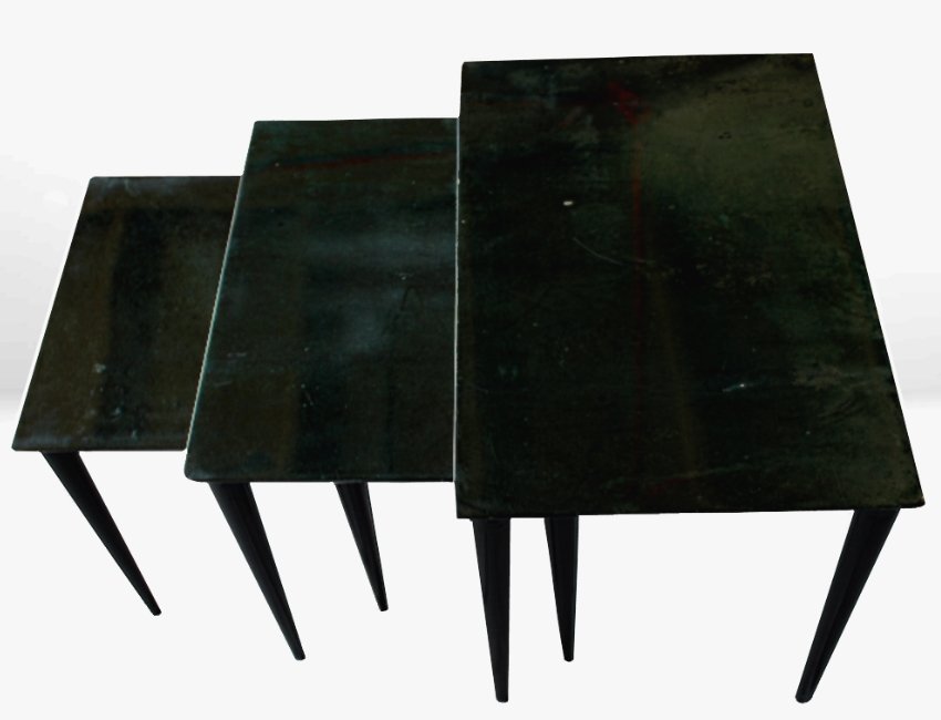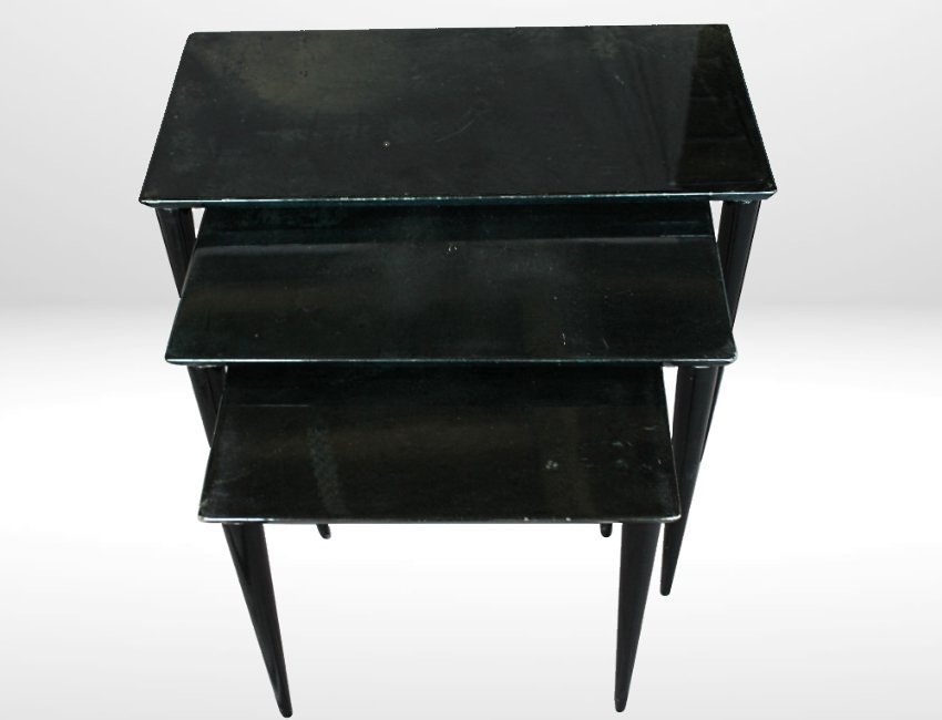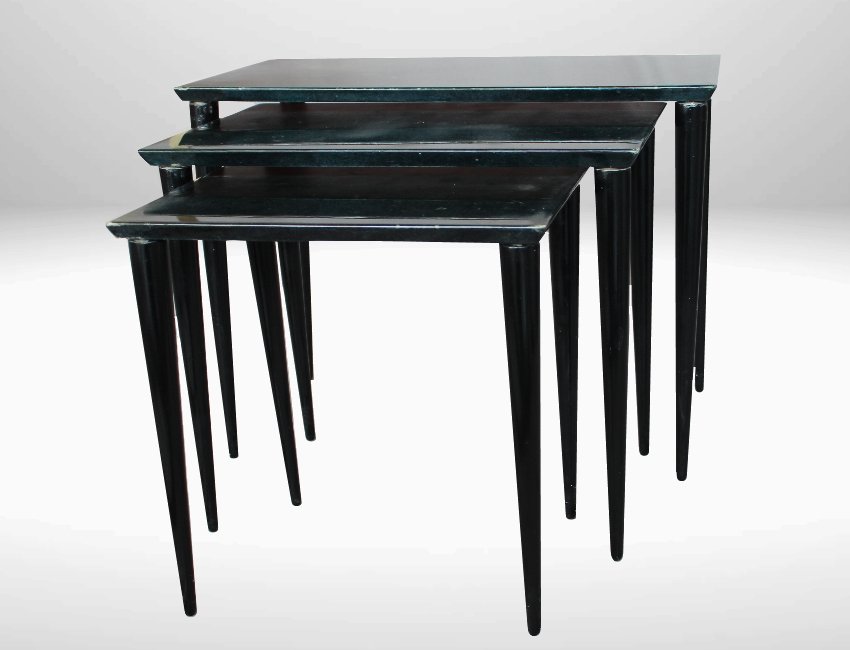 Tavolini da caffè ad incastro in pergamena verde smeraldo di Aldo Tura, 1955