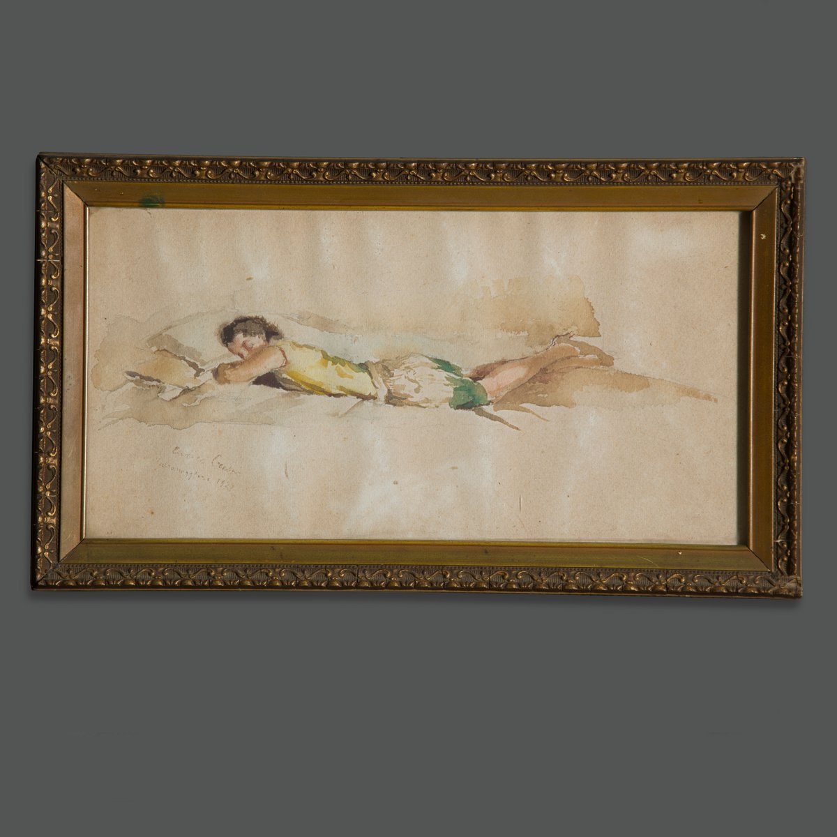 Beautiful and evocative watercolor technique painting by the great Milanese school artist Enrico Crespi