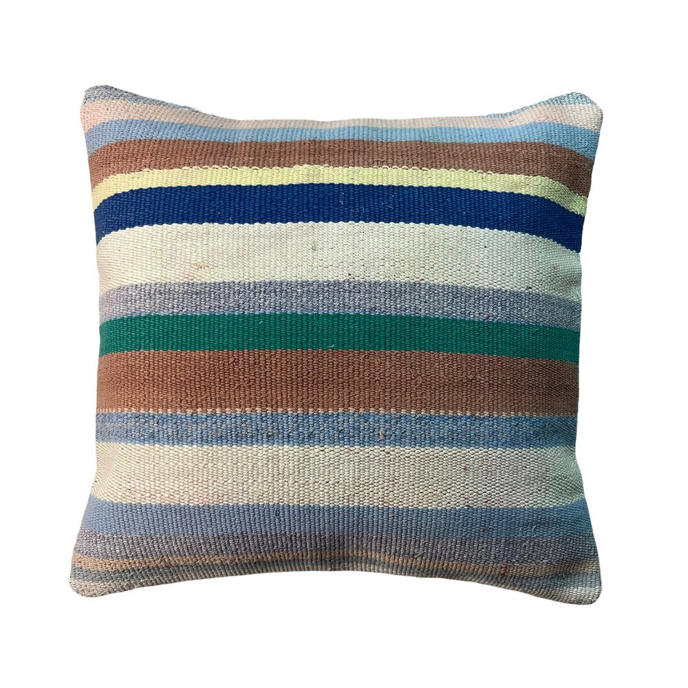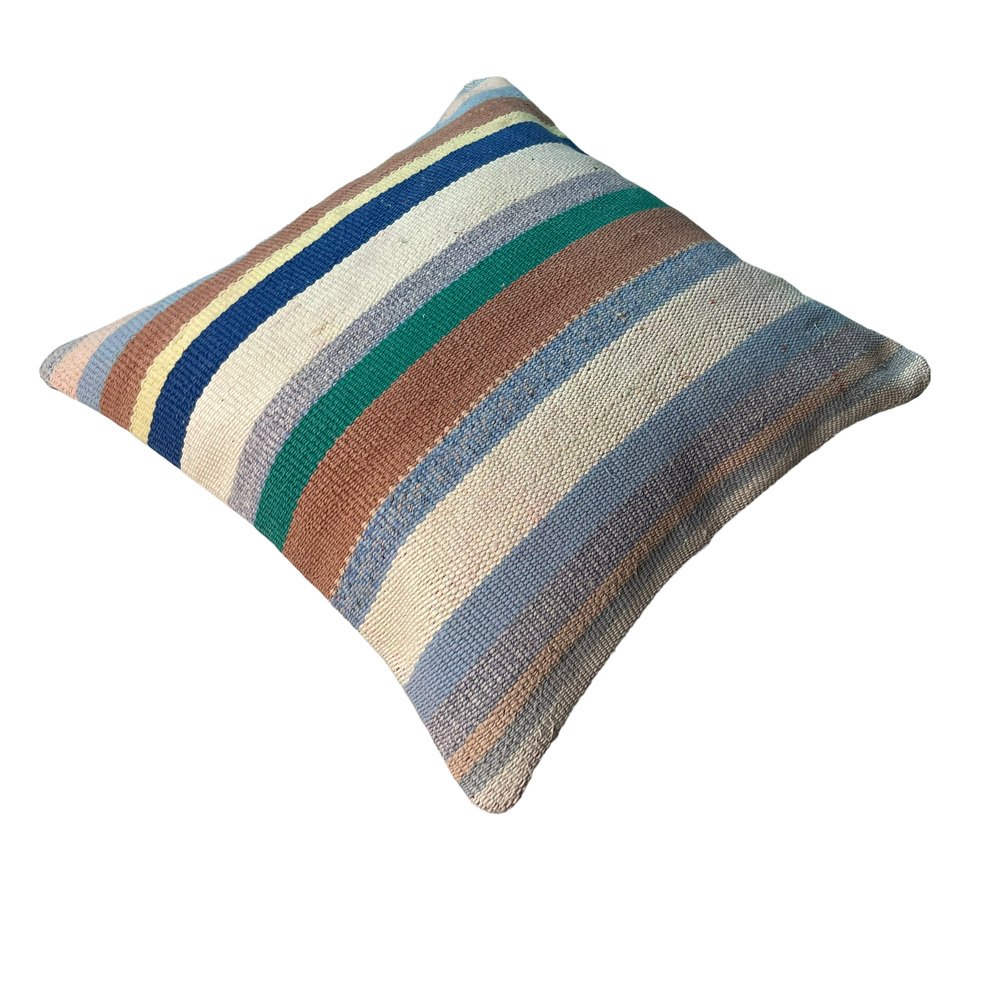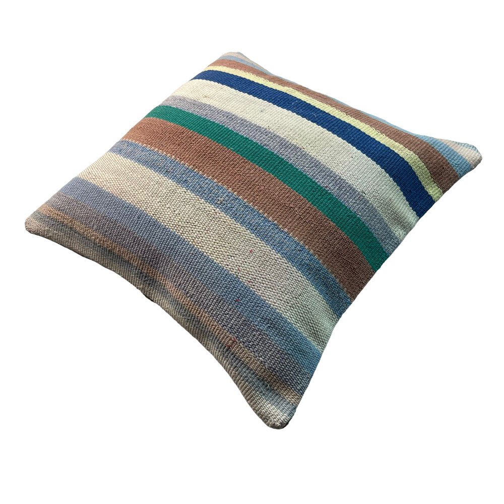Unique Kilim Cushions, these are made from old handmade kilims, often Turkish ones, My cushions have the best quality fabric backing with a heavy duty zip. Have a look at all cushions and brighten up your home. These cushions are made from old and antique kilims, some may have fading, colour variations and sometimes signs of old repairs. please check photos carefully. Hand knotted Turkish kilim cushion cover ,Size is 45 x 45 cm Fashioned (cutted and stitched), from 40-80 years old hand knotted old & antique Turkish kilims. Kilim is a handwoven rug. Colored with vegetable dyes. Material is wool.Back side is cotton fabric and with hidden zipper. Pictures at this listing are exact photos of the pillow.Photos are taken in daylight, but on the screens of different computers the colors of pillow photos can be a little different than the original. Each pillow cover is unique.But above link you can find similar covers in my shop cutted from same kilim. Maybe is some minor deformation in some motives but they are fixed and the product is ready to use Cushion cover sold without insert.