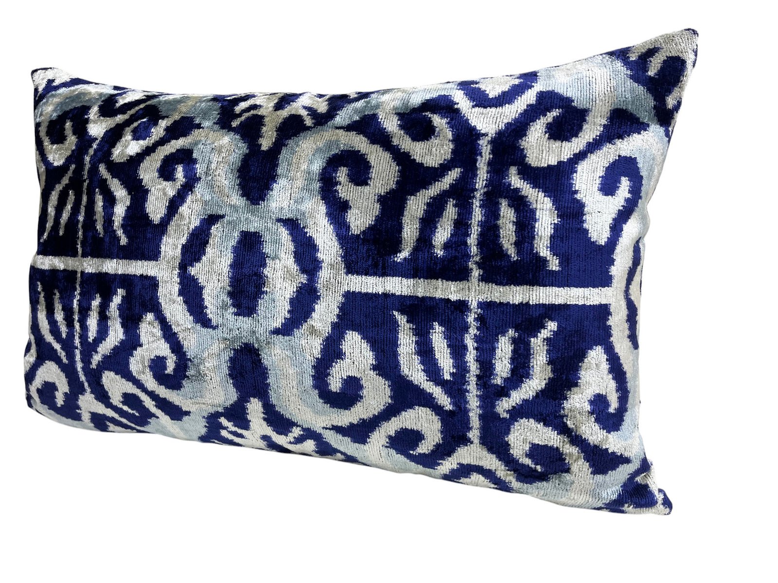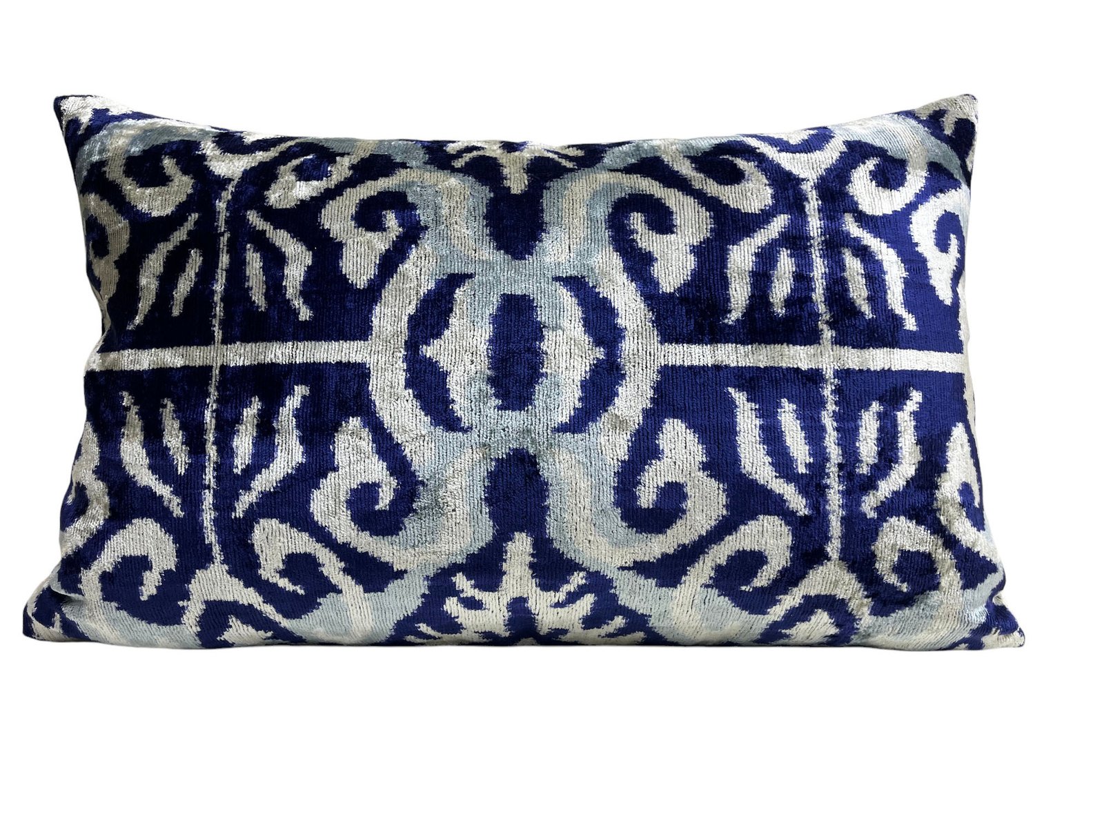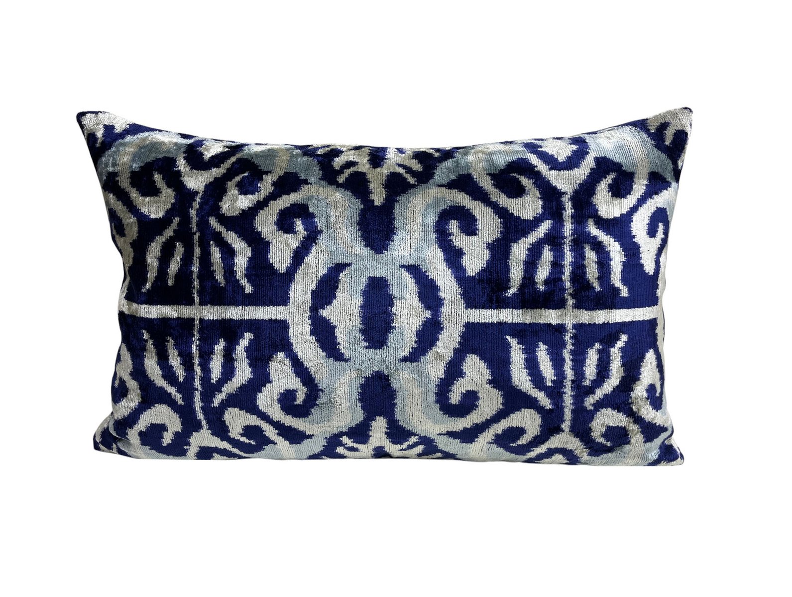 This pillow case features a luxurious silk velvet fabric with an ikat pattern, adding a touch of elegance and sophistication to any space. The unique weaving technique of ikat creates a striking, artistic design, while the softness of the silk velvet ensures both comfort and visual appeal. Perfect for accenting your living room, bedroom, or any area in need of a stylish, refined statement piece.