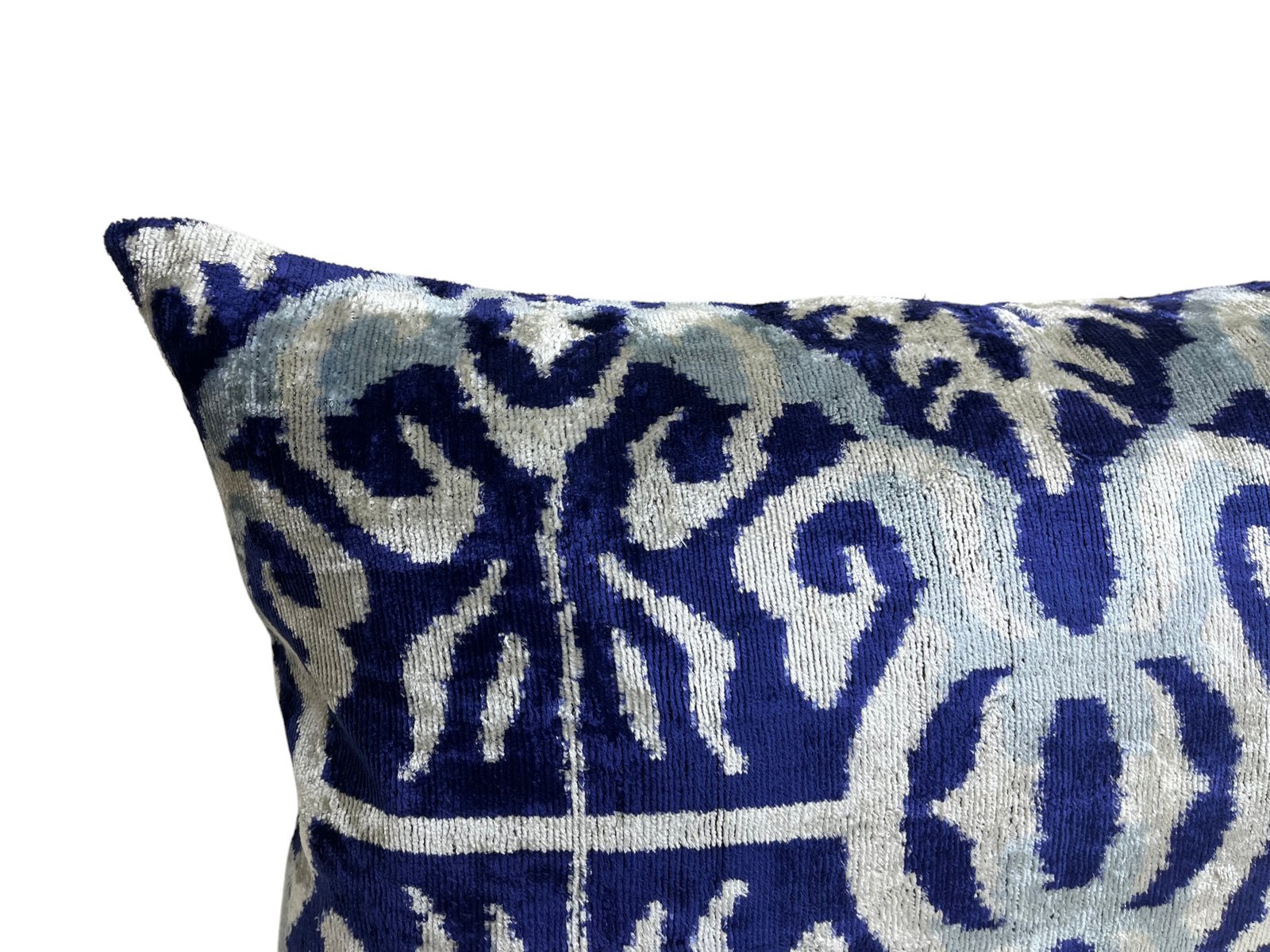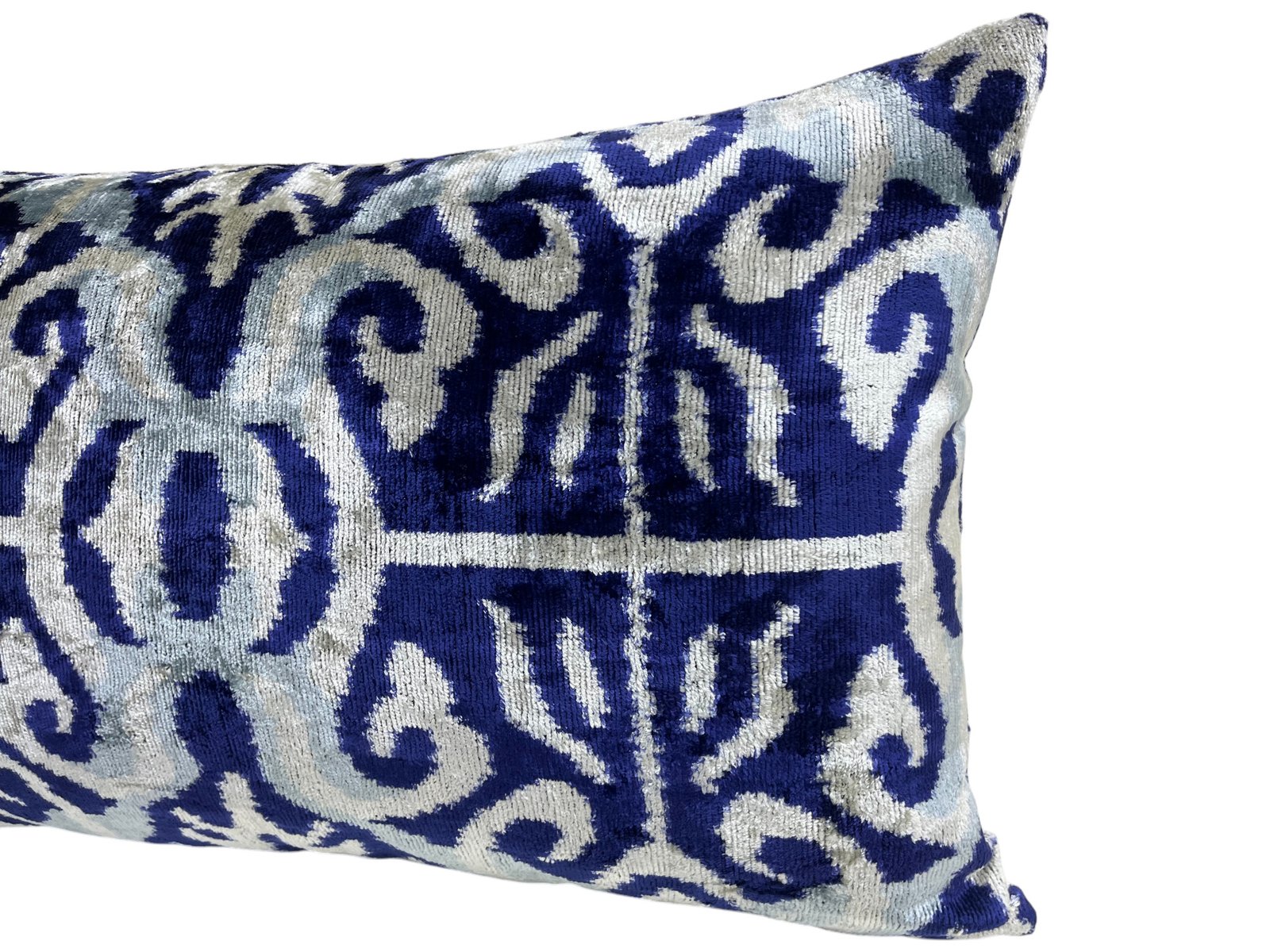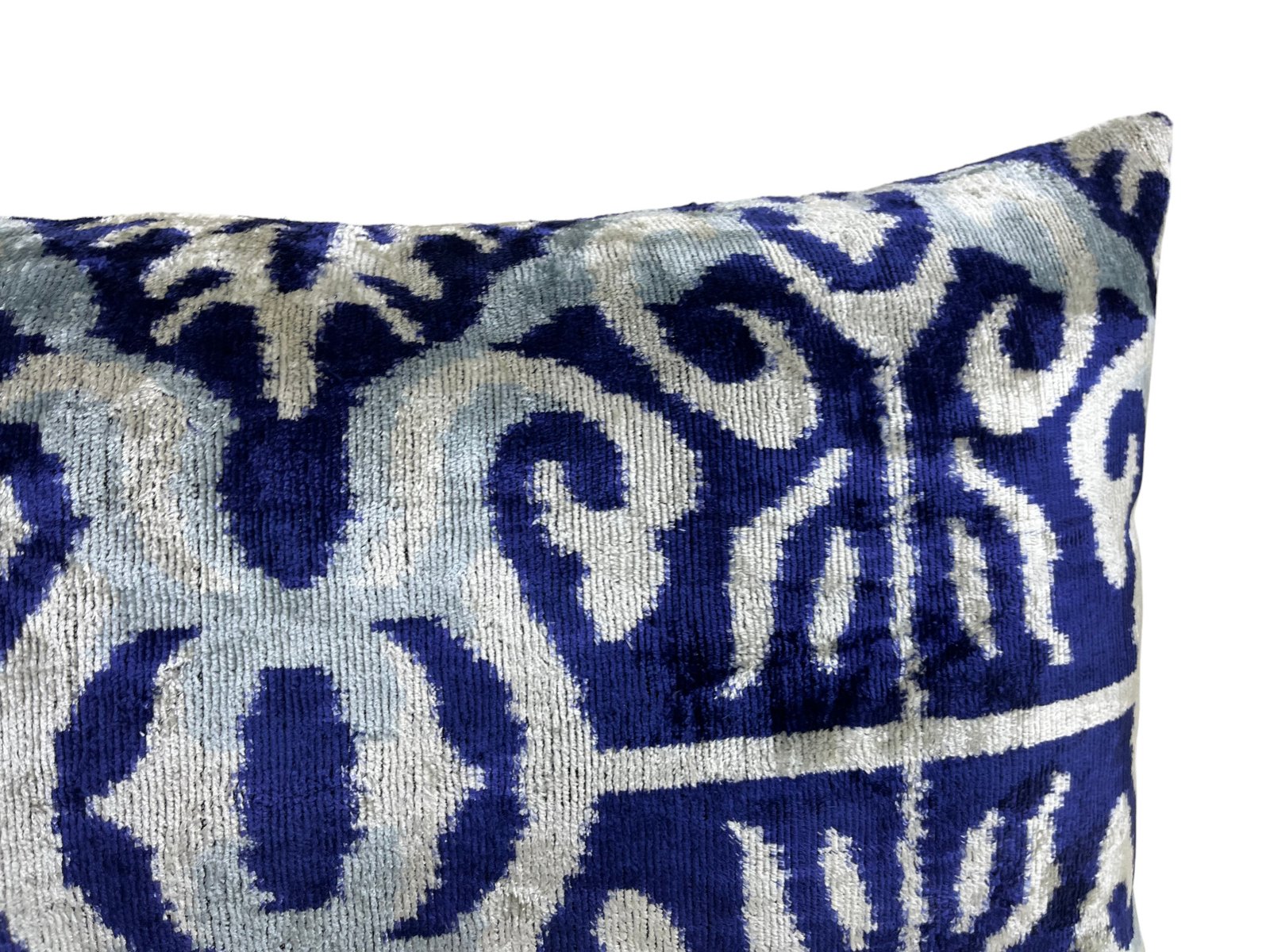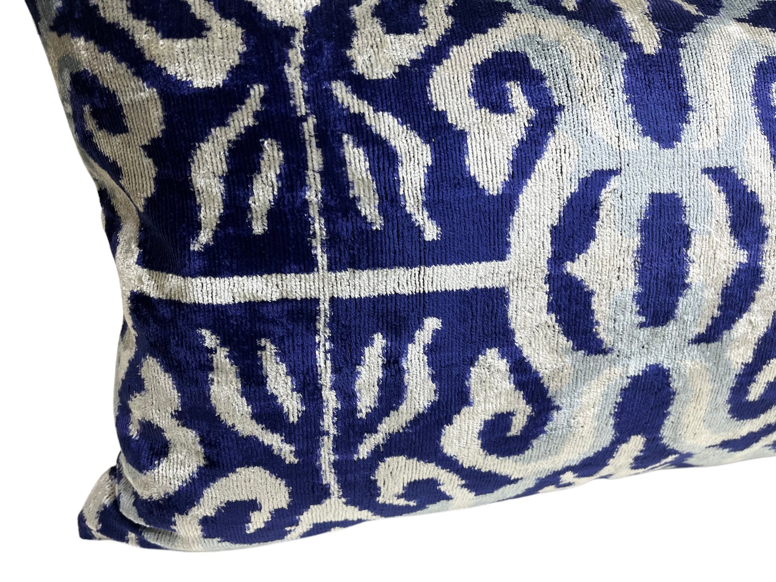 This pillow case features a luxurious silk velvet fabric with an ikat pattern, adding a touch of elegance and sophistication to any space. The unique weaving technique of ikat creates a striking, artistic design, while the softness of the silk velvet ensures both comfort and visual appeal. Perfect for accenting your living room, bedroom, or any area in need of a stylish, refined statement piece.