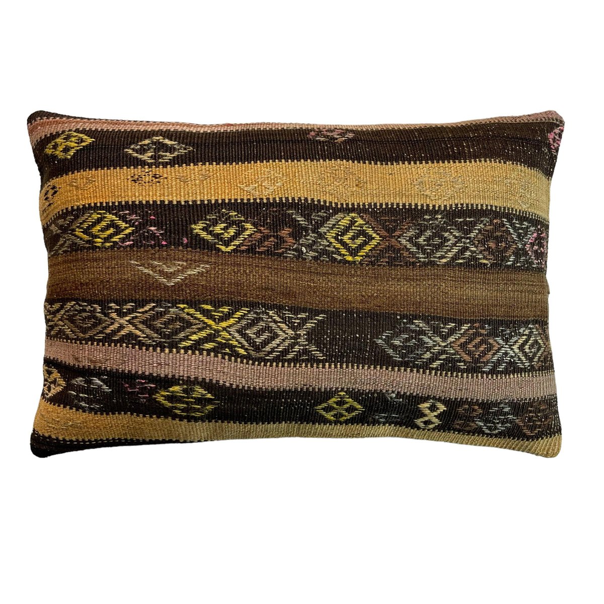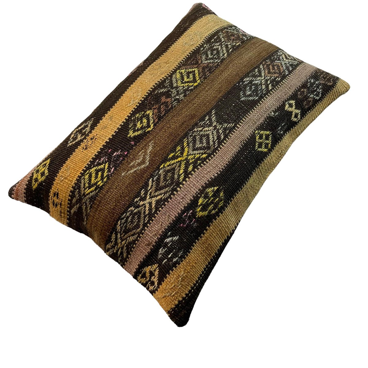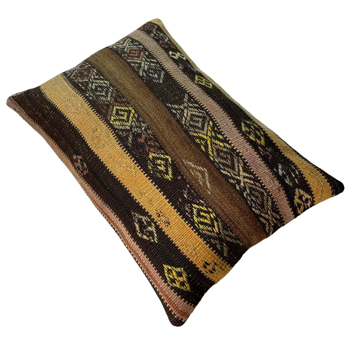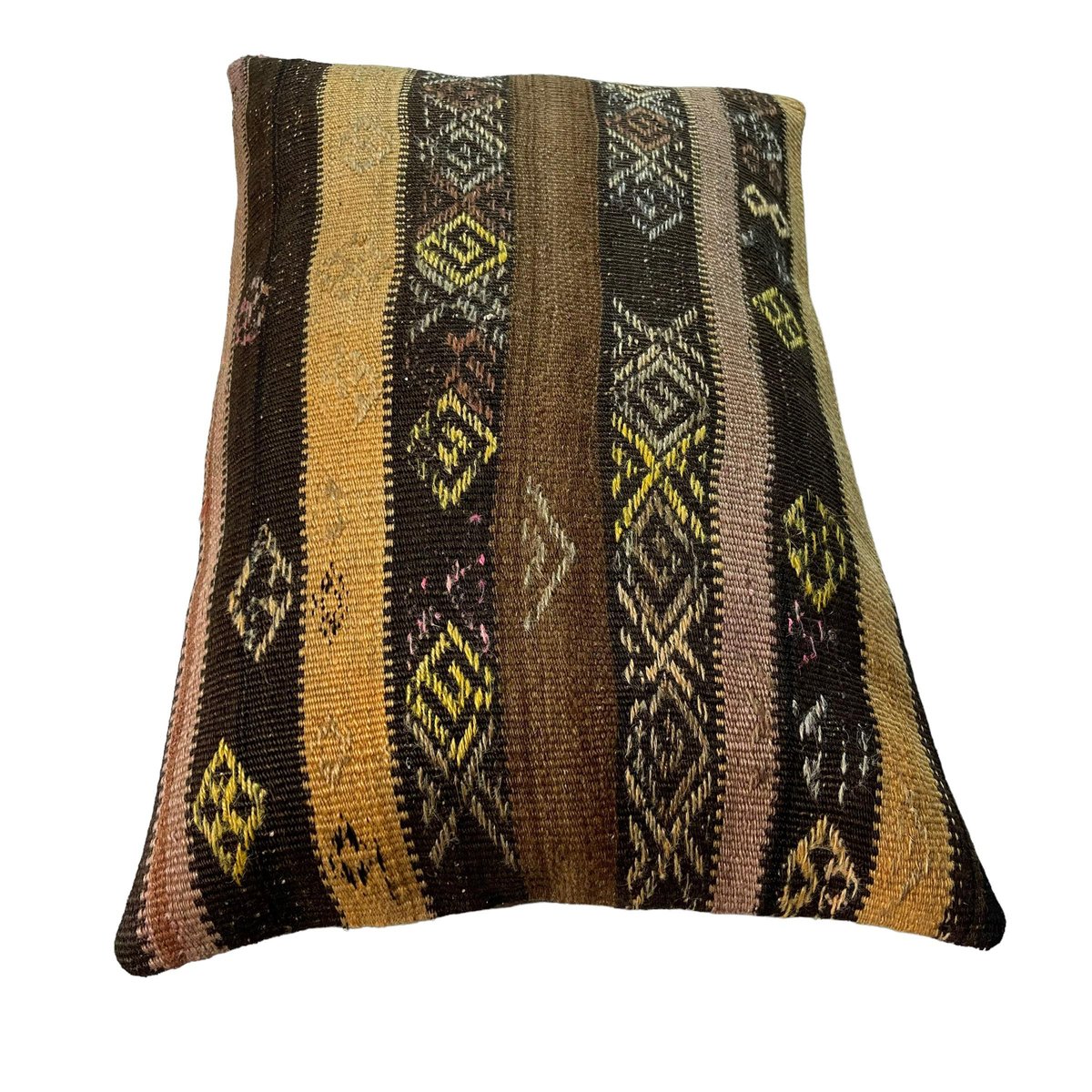 Unique Kilim and Rug Cushions, these are made from old handmade kilims and Rugs, often Turkish ones, My cushions have the best quality fabric backing with a heavy duty zip. Have a look at all cushions and brighten up your home. These cushions are made from old and antique kilims and Rugs, some may have fading, colour variations and sometimes signs of old repairs. please check photos carefully. Handknotted Turkish kilim and rug Pillow cover ,Size is 40 x 60 cm Fashioned (cutted and stitched), from 40-80 years old hand knotted old & antique Turkish kilims. Kilim is a handwoven rug. Colored with vegetable dyes. Material is wool.Back side is cotton fabric and with hidden zipper. Pictures at this listing are exact photos of the pillow.Photos are taken in daylight, but on the screens of different computers the colors of pillow photos can be a little different than the original. Each pillow cover is unique.But above link you can find similar covers in my shop cutted from same kilim. Maybe is some minor deformation in some motives but they are fixed and the product is ready to use Cushion cover sold without insert.