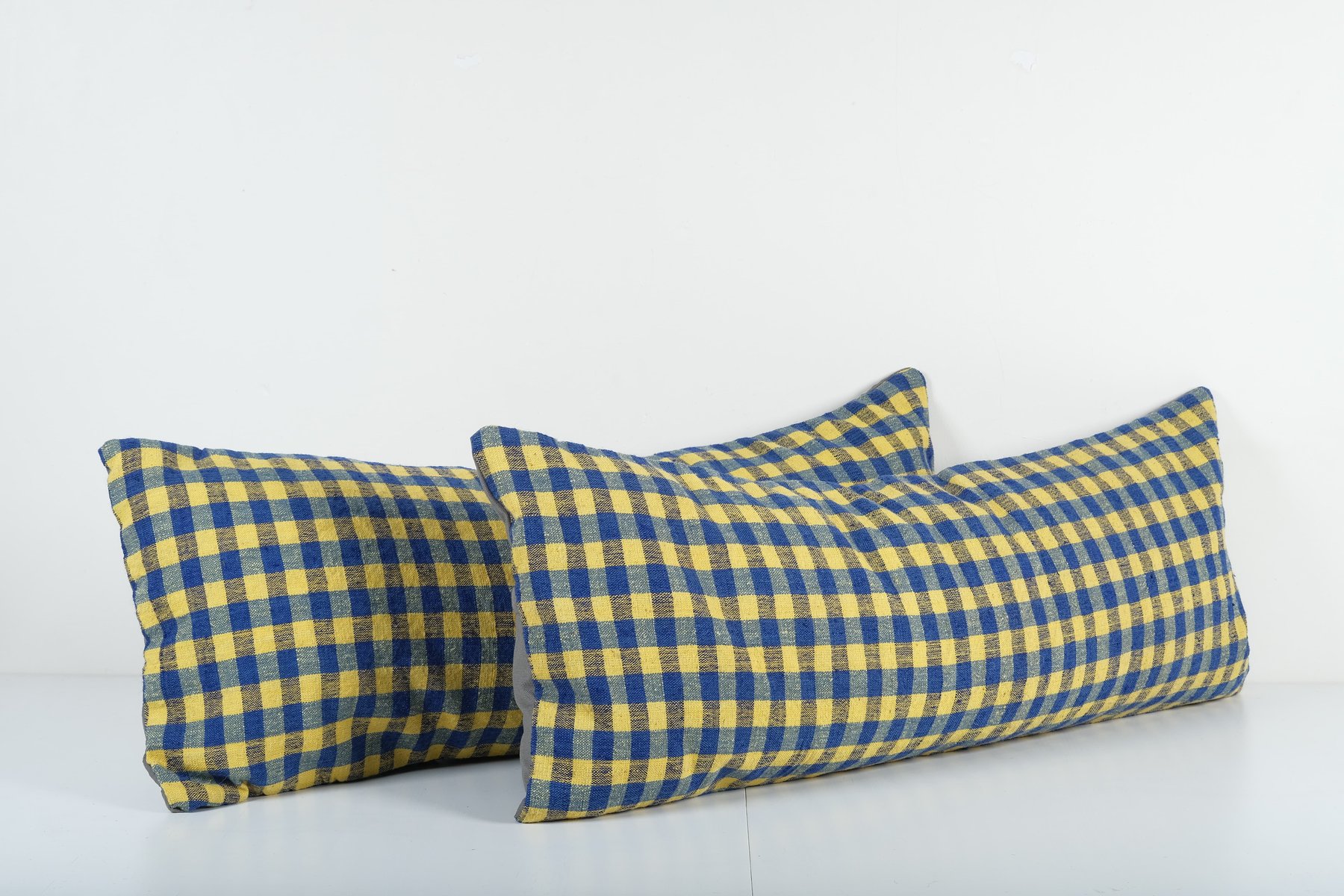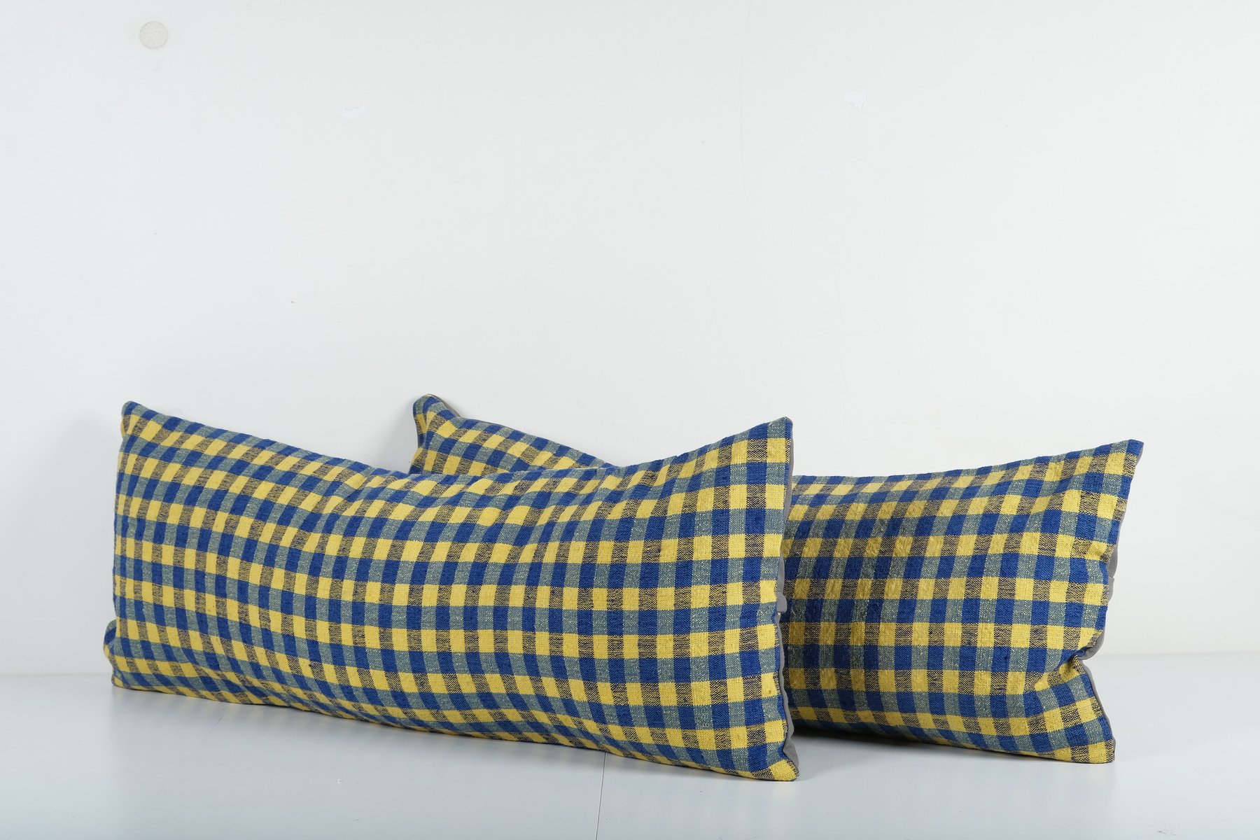 Federe Kilim a righe gialle e blu, set di 2