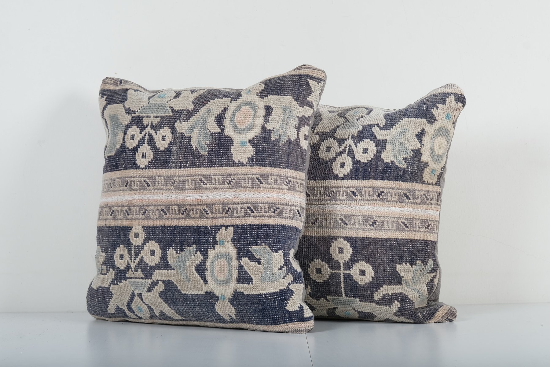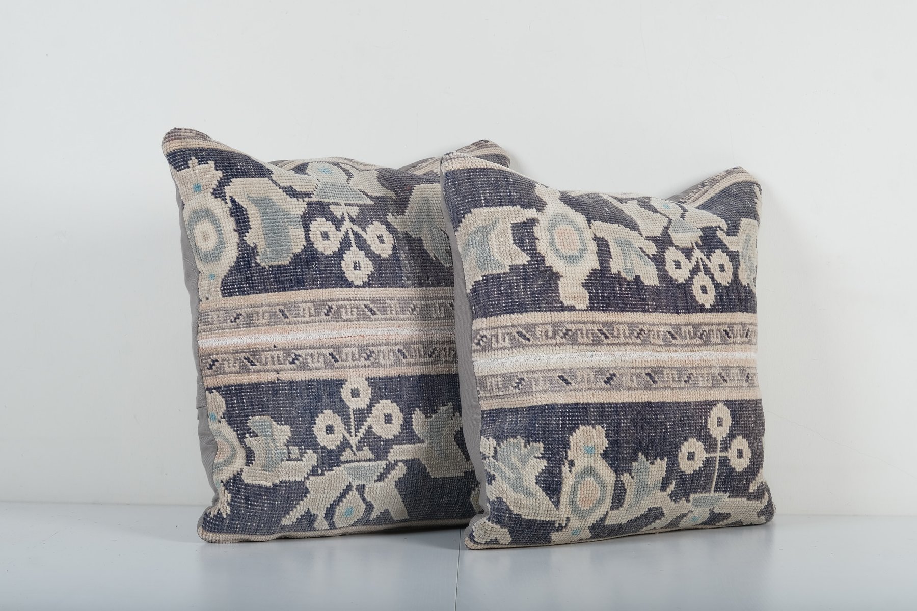 Federe per cuscino Oushak grigio scuro e blu, set di 2