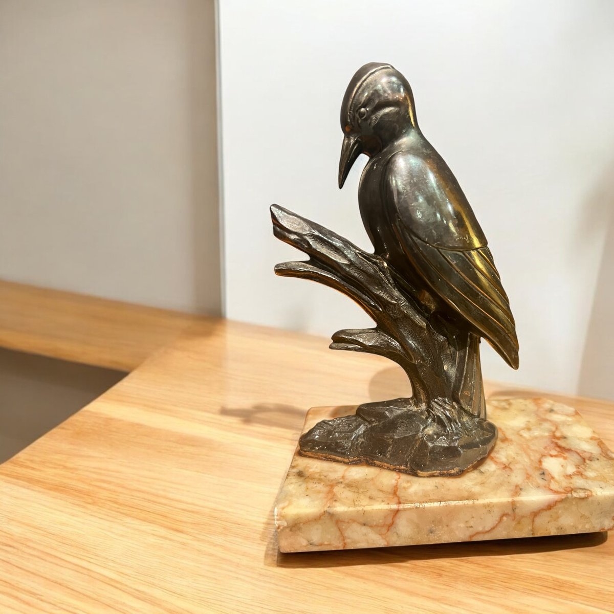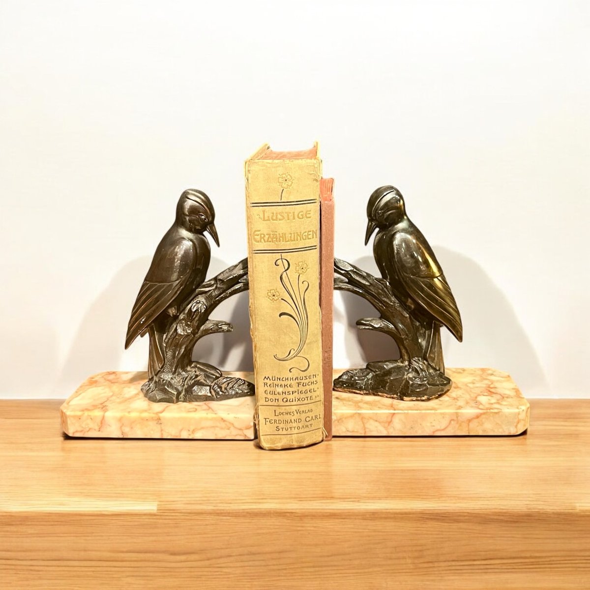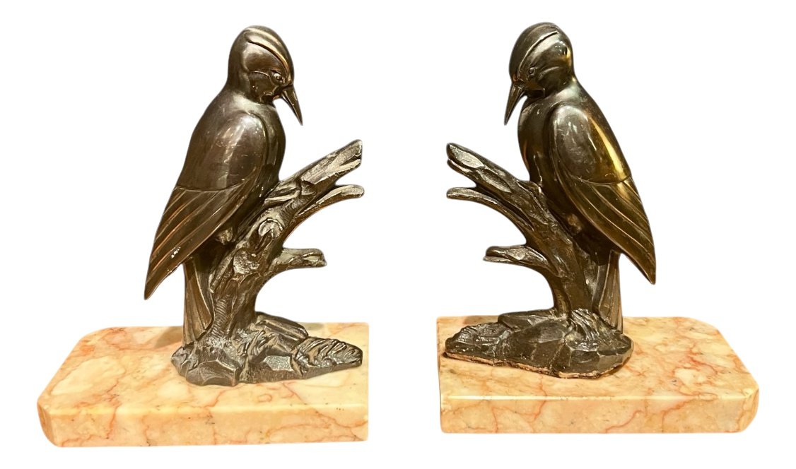 Fermalibri Art Deco in latta e marmo, anni '40, set di 2