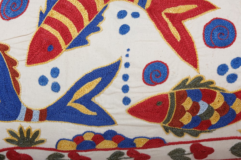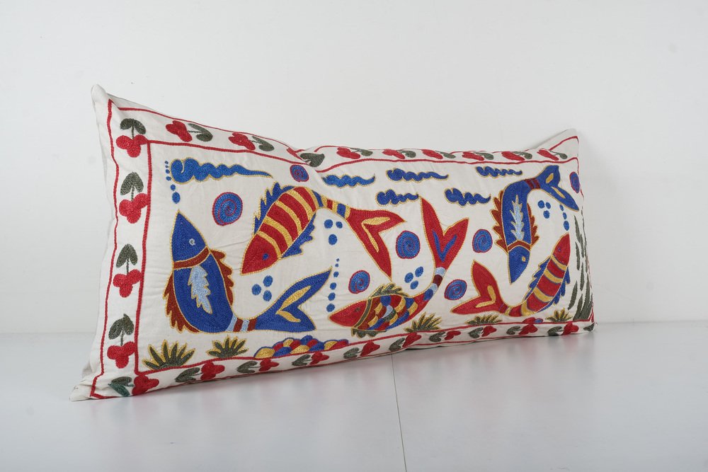 Fodera per cuscino lombare Tashkent Suzani con animali