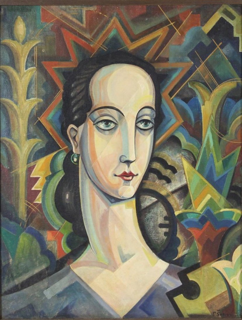 Portrait of a woman, oil on panel, carved original artist frame, signed F. Sedivy.