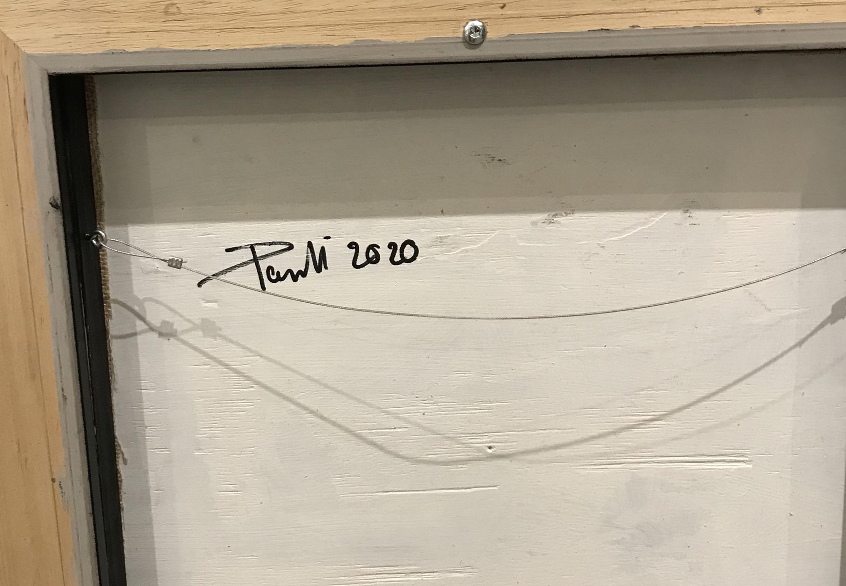 Glued wood slats. Born in the canton of Friborg, Gilbert Pauli (1944 - 2020) lived in Geneva, where he devoted himself to painting and sculpture, a passion he developed since childhood. His favorite theme was the dialogue between the human being and his creator. Gilbert Pauli's messages are universal, without any racial, religious or even cultural reference, with the sole purpose of love for man. From 1986, he worked relentlessly and in a self-taught way to discover the different painting and sculpture techniques: first gouache, followed by dry pastel. These lead him to watercolor, and oil, through charcoal and acrylic.