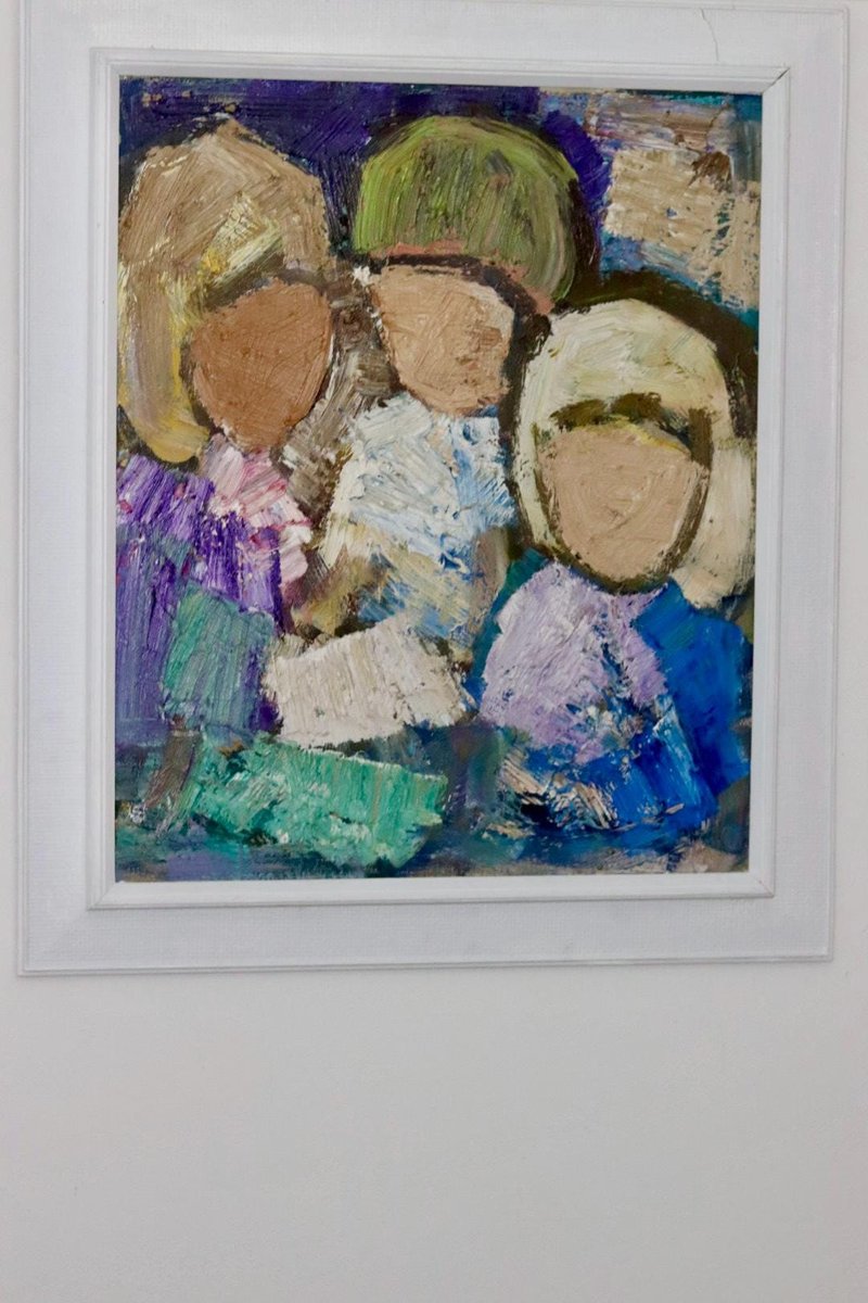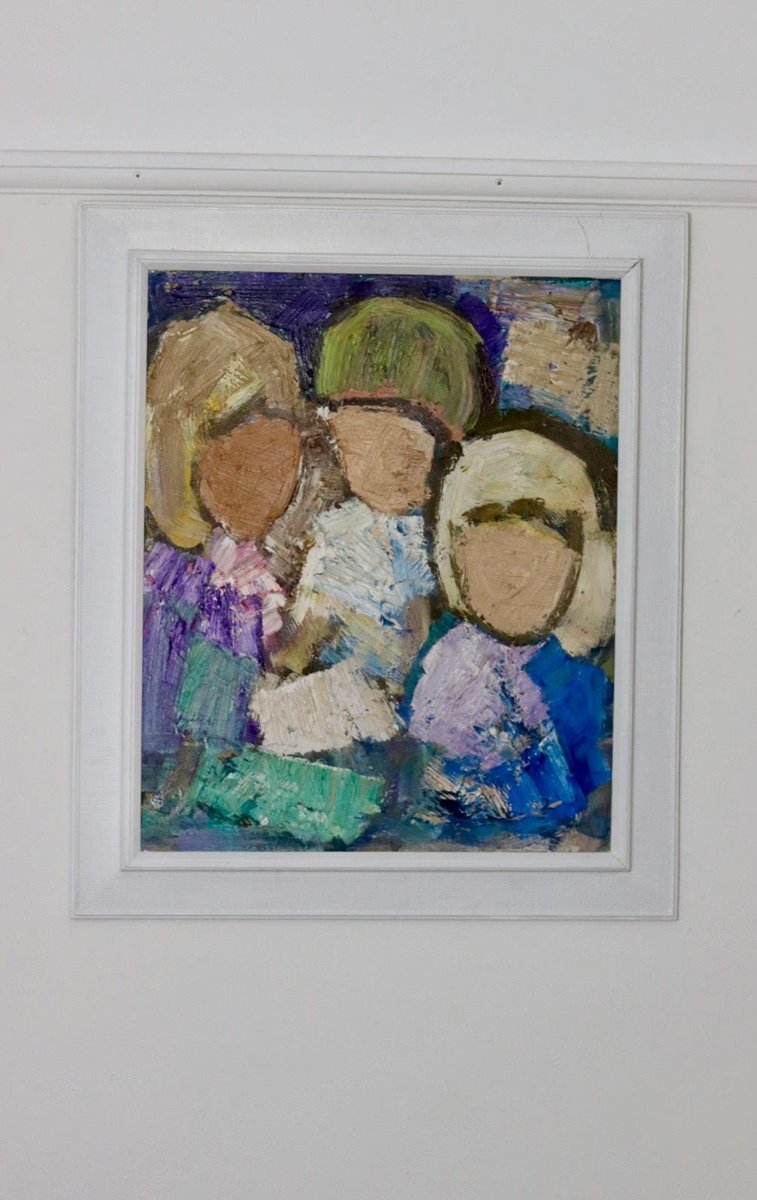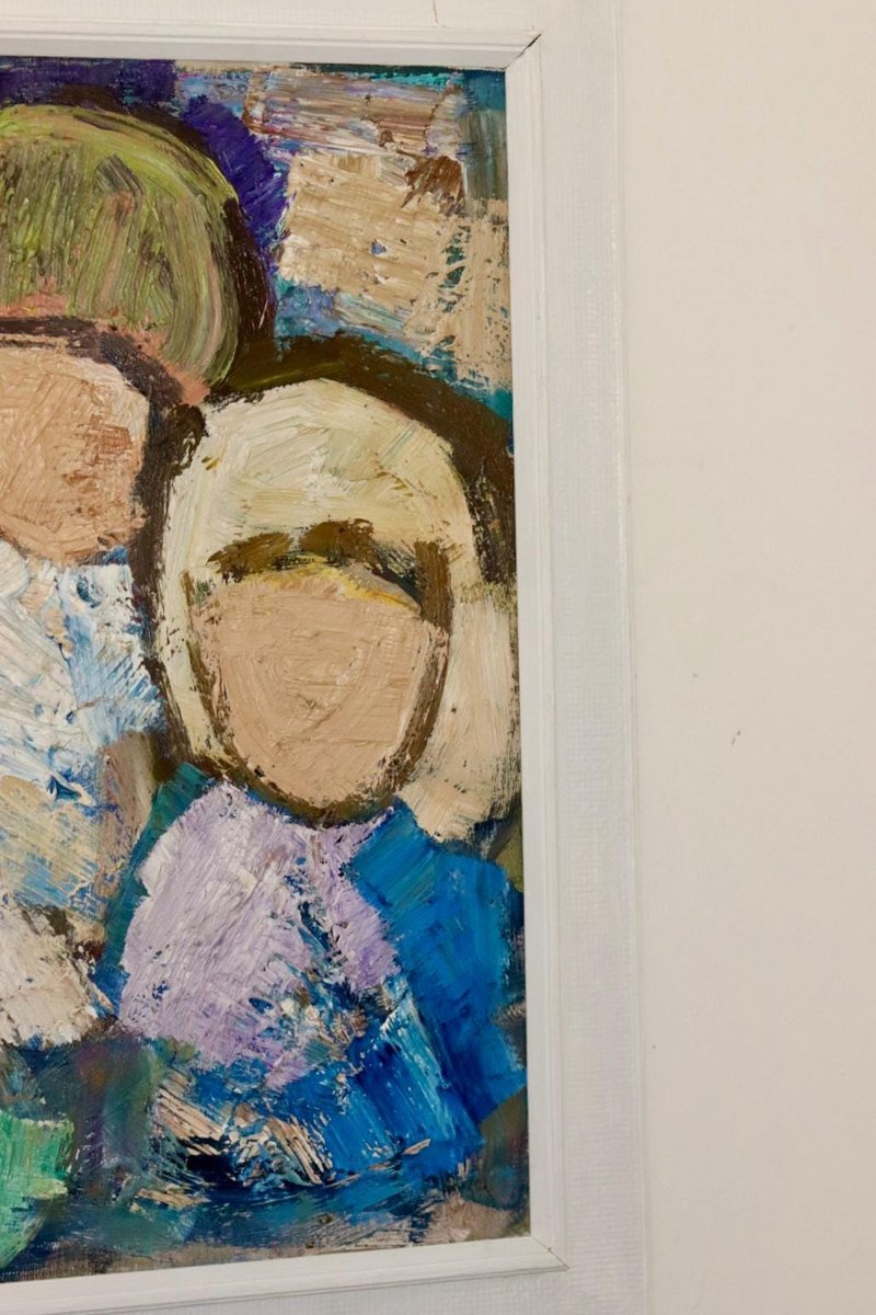Large Swedish Modernist Oil Painting" Family "by Gösta Falck circa 1960-Vintage & Framed.