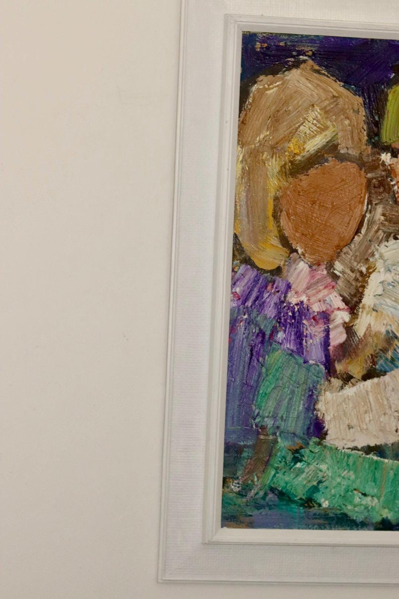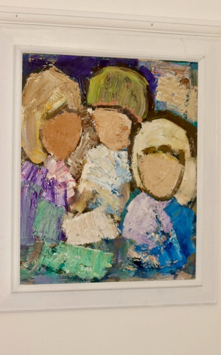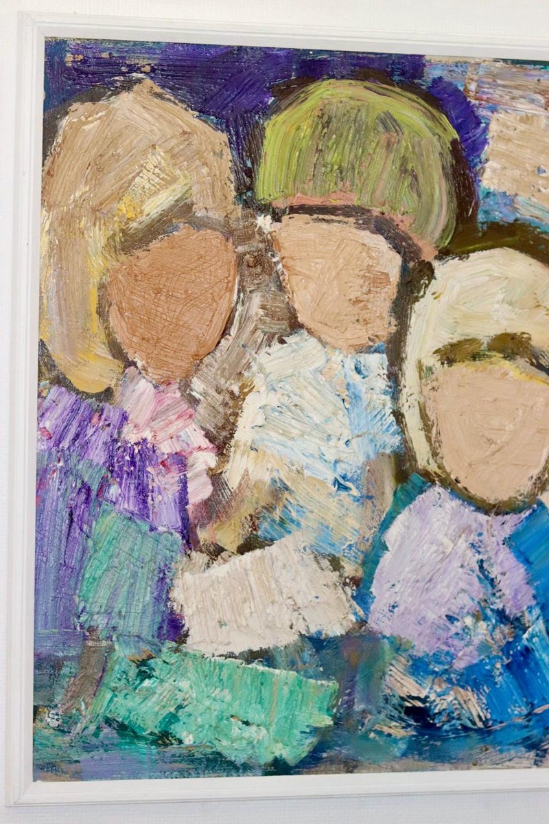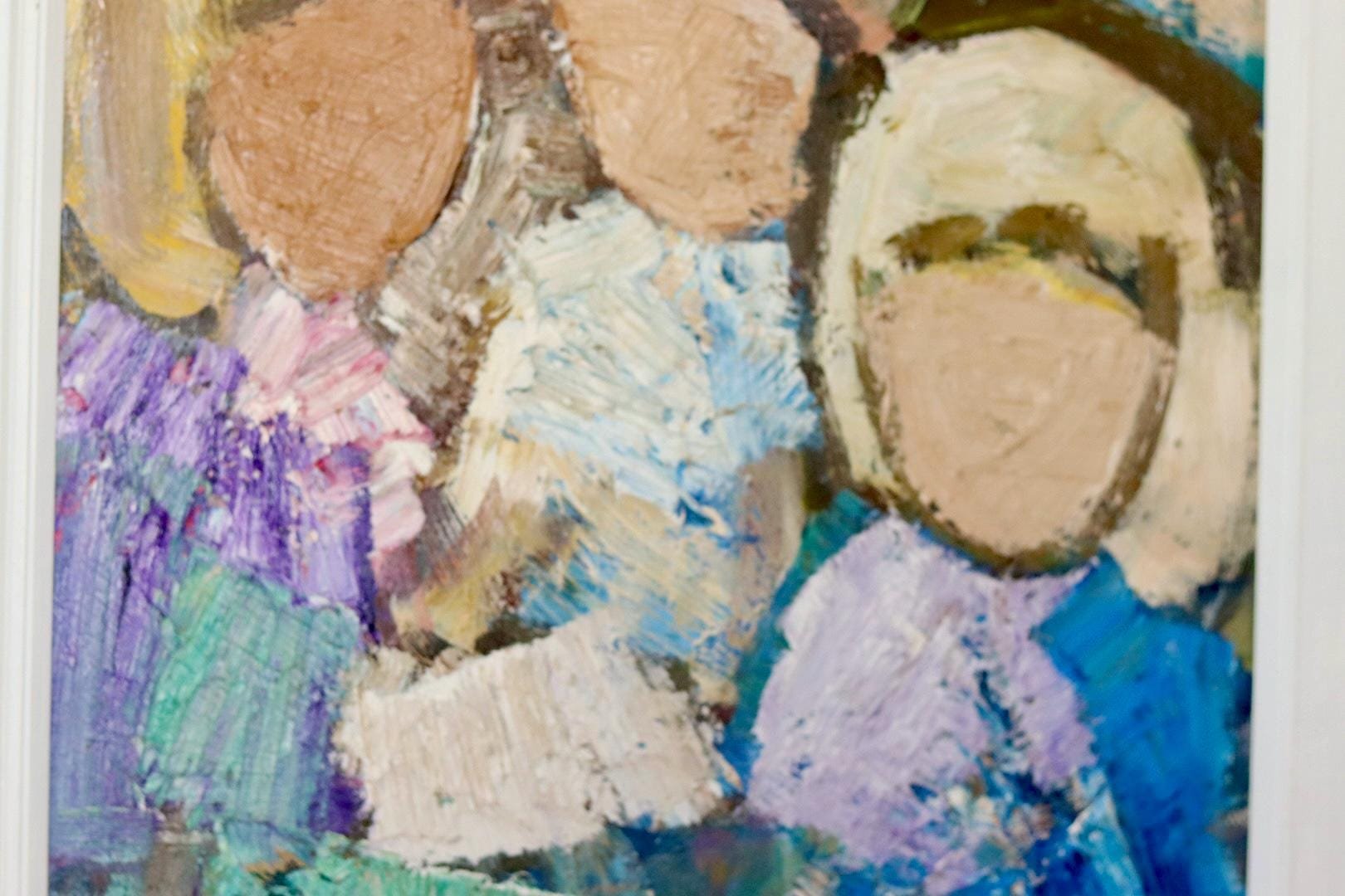 Large Swedish Modernist Oil Painting" Family "by Gösta Falck circa 1960-Vintage & Framed.