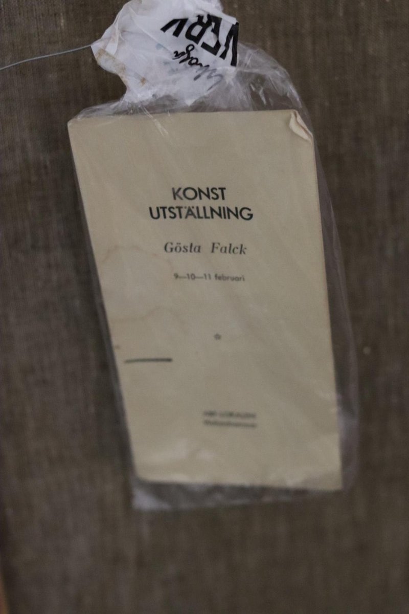 Artista visivo e musicista. (Gösta Alvar Falck). Nato nel 1920 a Svarteborg, Bohuslän, morto nel 2006. Falck era un autodidatta. Da giovane, Falck ha suonato il violino in un'orchestra. Quando iniziò la sua carriera di artista, dipinse per lo più in modo figurativo, con paesaggi del Bohuslän dalle forme morbide e nature morte floreali a olio o ad acquerello; negli anni Sessanta cambiò stile passando a una pittura più astratta. Nato nel 1920 a Svarteborg, nella contea di Göteborg. Ha realizzato, a olio e ad acquerello, paesaggi dai colori tenui e ben equilibrati con motivi rurali, dipingendo anche animali e fiori.