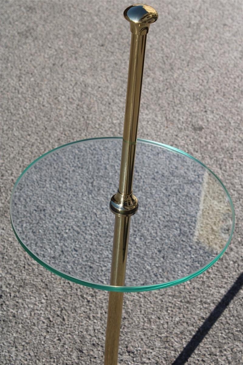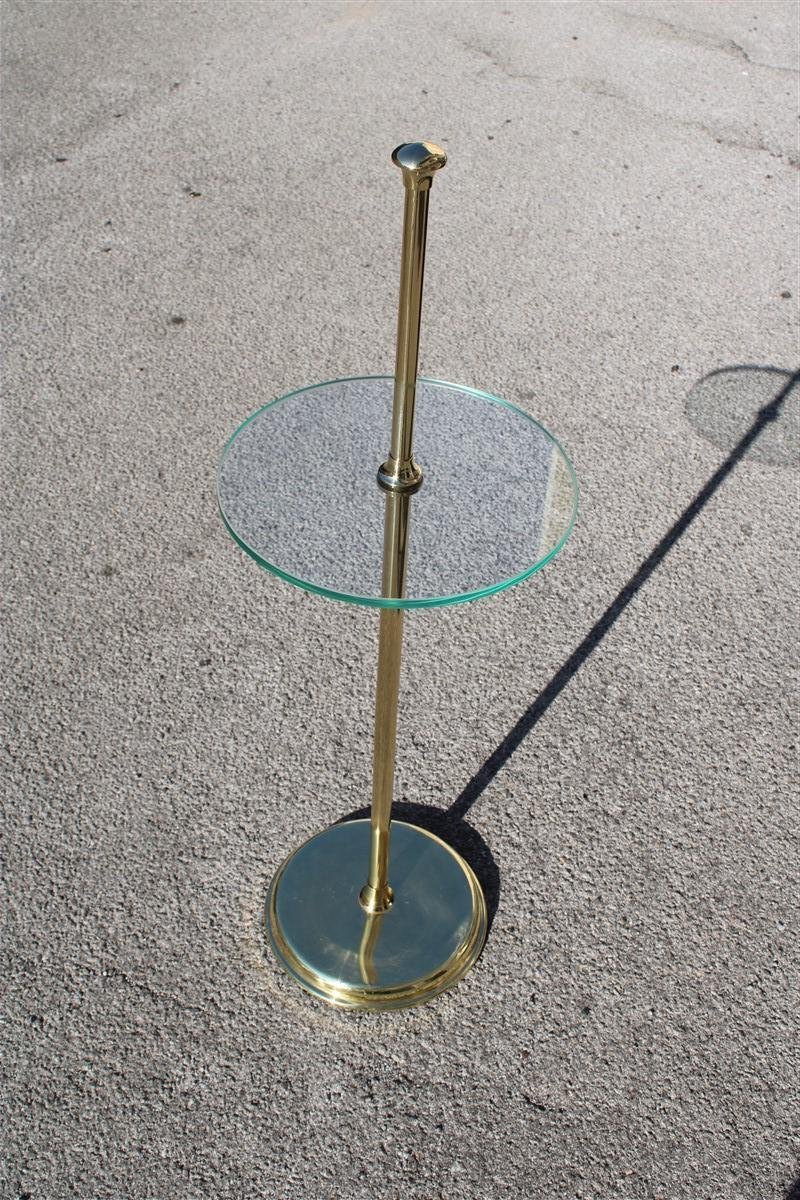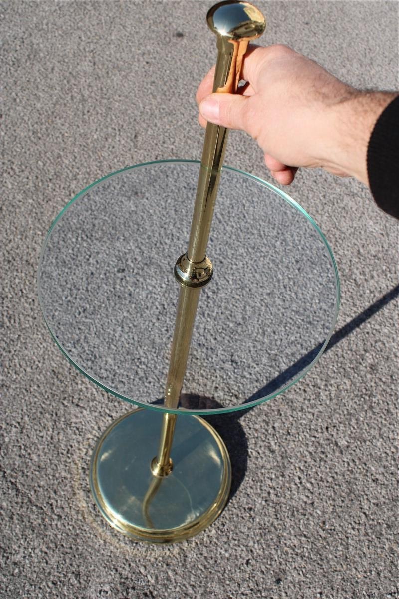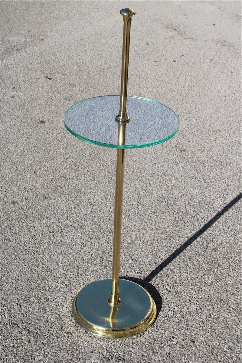 Gueridon rotondo minimal in ottone e vetro, Italia, anni '70