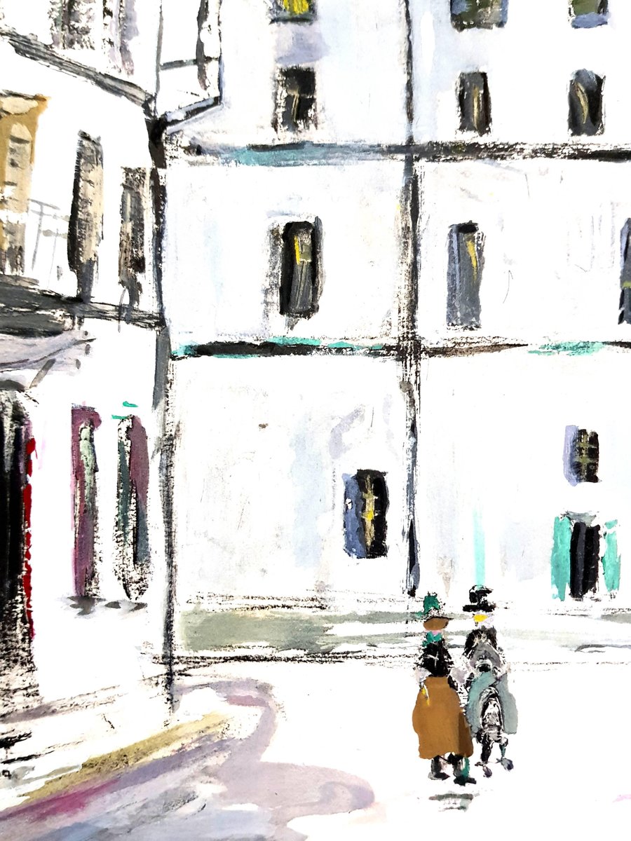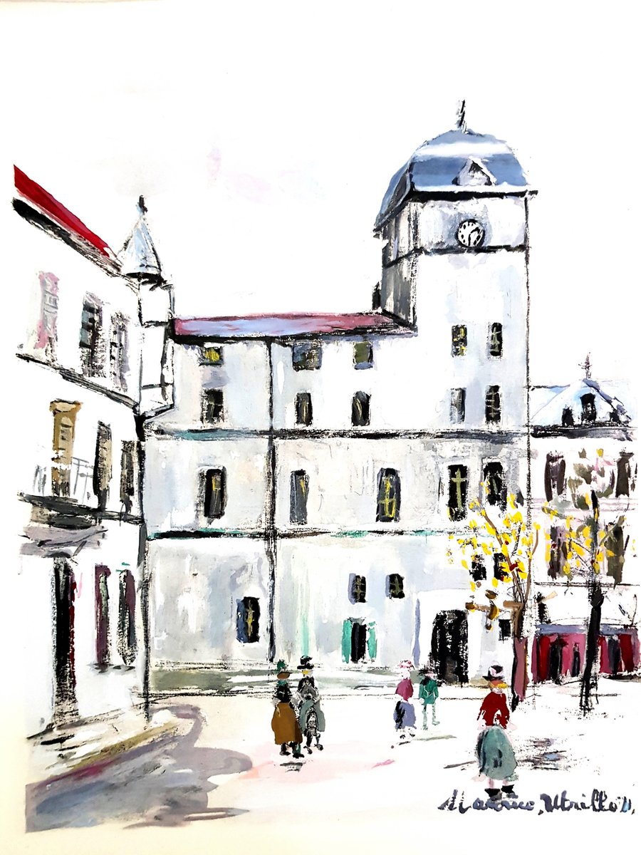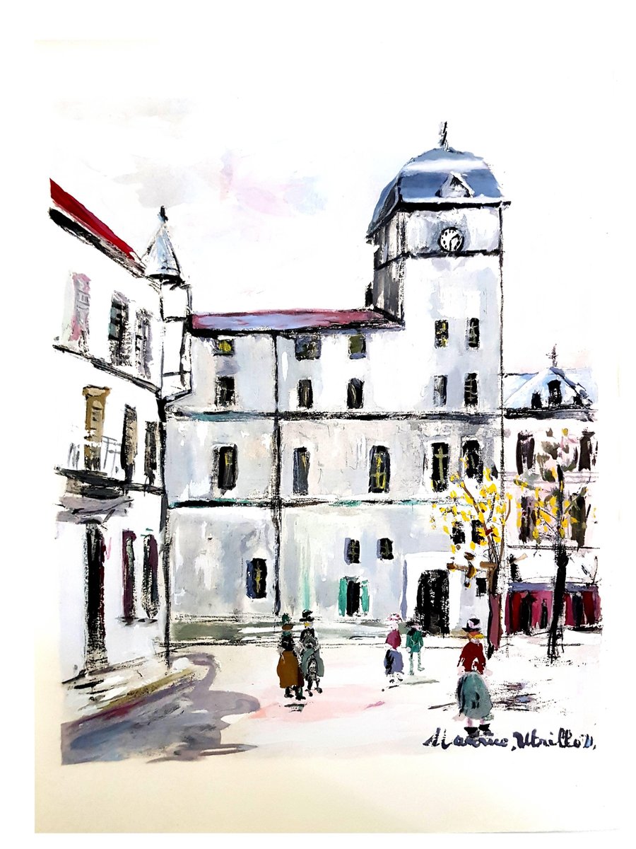 (after) Maurice Utrillo Inspired Village of Montmartre Pochoir with printed signature Edition of 490 Dimensions: 39 x 30 cm Information : This print was created for the portfolio ''Le Village inspiré, Chronique de la bohème de Montmartre (1920-1950) '' published by Vertex in 1950 Condition : Excellent Maurice Utrillo (1883 - 1955) The French painter Maurice Utrillo was born as the illegitimate son of the painter Suzanne Valladon in Paris on December 26, 1883. He was adopted by the Catalan art critic Miguel Utrillo y Molins in 1891. As a painter Maurice Utrillo is an autodidact, he learns the skills from his mother, who wants to keep him away from his addiction to alcohol. His first paintings are made around 1903, mostly views of Paris, street scenes, alleys and houses, views of Montmartre and the suburbs, pictures that have a certain poetic charm. His paintings up until 1907 are dominated by the colors yellow, turquoise, wine red and zinc white. From 1909 to 1914 he confines his palette to white and shades of gray. In order to attain a greater realistic effect with his paintings, Maurice Utrillo mixes sand and gypsum into the paint. This so-called ''Periode blanche'' (White Period) marks the highlight of Utrillo's creation. In 1912 he participates in the Salon d'Automne. As of 1914 his paintings become less and less colorful. He also makes numerous still lifes, mostly of flowers that he accentuates with dabs of shiny colors. People in his paintings appear as beings that are lonely and isolated from society. The Galérie Bernheim-Jeune sets up an exhibition with works by Utrillo and his mother Suzanne Valladon in 1923. A year later he tries to commit suicide, but fortunately fails. In 1935 he marries Lucie Pauwels, widow of a Belgian collector. She begins to paint under the pseudonym Lucie Valore, mostly making portraits, landscapes and still lifes. The artist is honored with a large retrospective in the Salon d'Automne in 1943. Maurice Utrillo dies in the Southern French town of Dax on November 11, 1955.