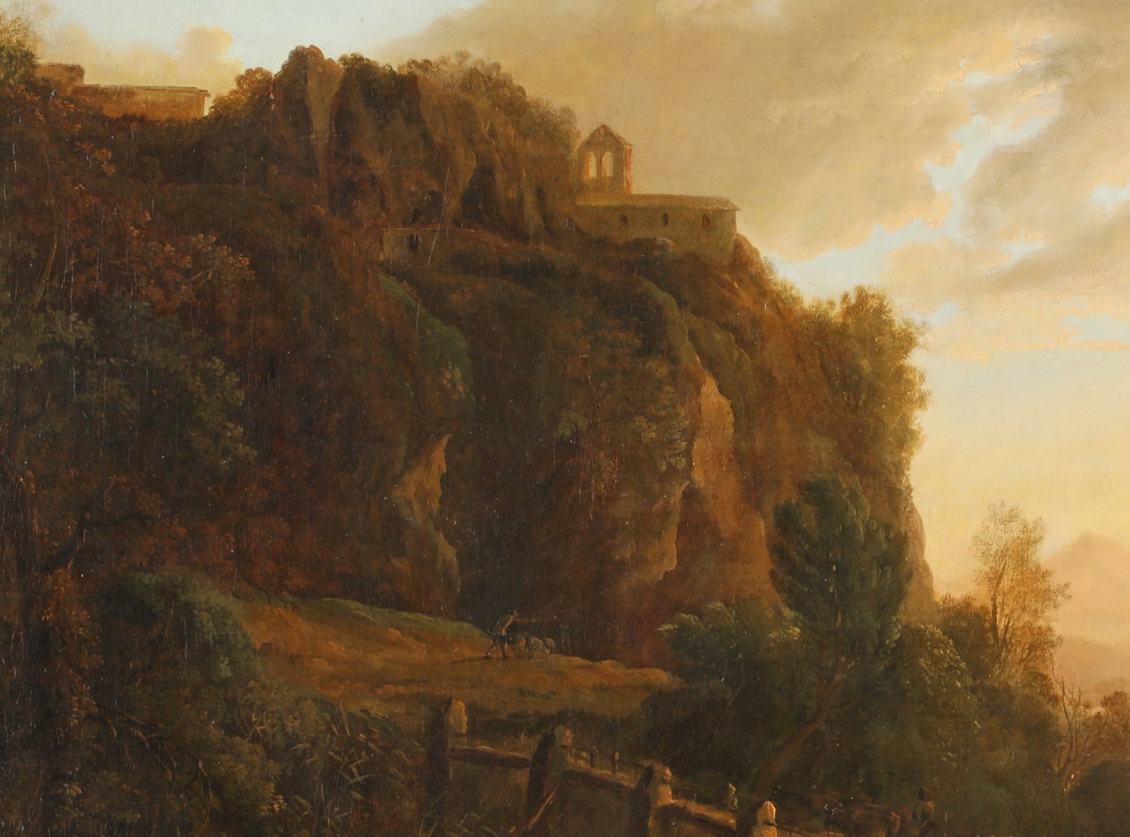 In 1641 Jan and Andries left Rome to return to Utrecht. However, Andries died due to an accident during a stopover in Venice. Back in Utrecht, Jan Both focused entirely on the realistic depiction of “Italianized” landscapes, which were largely based on his Roman studies and drawings. Jan did not populate his scenes with mythological figures, as is usually the case, but with real figures such as hikers, shepherds or riders.