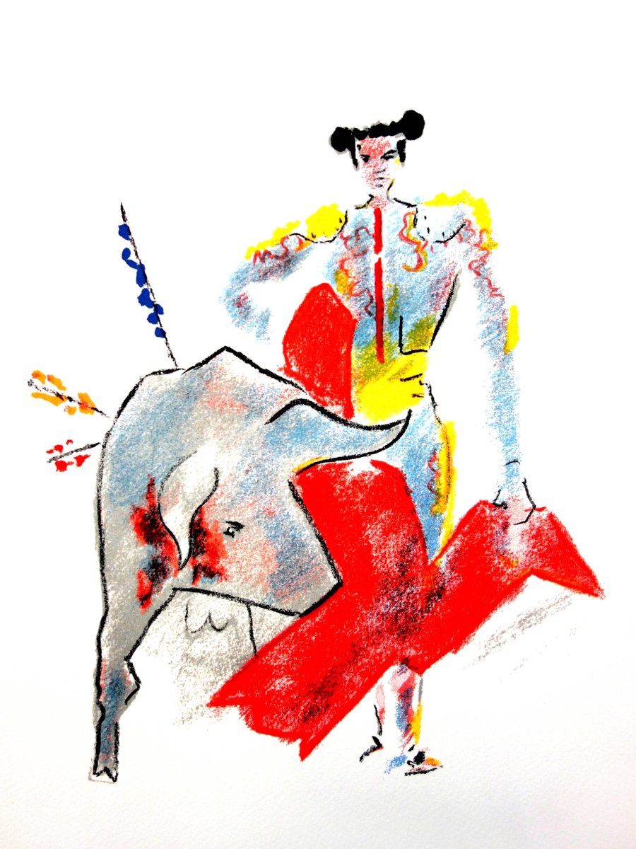 Original Lithograph by Jean Cocteau Title: Taureaux Signed in the plate Dimensions: 40 x 30 cm Edition: 200 Luxury print edition from the portfolio of Trinckvel 1965 Jean Cocteau Writer, artist and film director Jean Cocteau was one of the most influential creative figures in the Parisian avant-garde between the two World Wars. “The poet never asks for admiration; he wants to be believed.” —Jean Cocteau Synopsis Jean Cocteau was born on July 5, 1889, in Maisons-Laffitte, France. He spent most of his life in Paris, where he became part of the artistic avant-garde and was known for his variety of accomplishments. Over a 50-year career, he wrote poetry, novels and plays; created illustrations, paintings and other art objects; and directed influential films, including The Beauty and the Beast and Orpheus. He died on October 11, 1963. Early Life and Literary Debut Jean Cocteau was born on July 5, 1889, in Maisons-Laffitte, France, a village 12 miles outside Paris, to Georges and Eugénie (née) Lecomte Cocteau. He and his two older siblings were brought up in comfortable household in Paris, where they were introduced to the arts by their parents. Their father, a lawyer and amateur artist, committed suicide in 1898. After his father's death, Cocteau was raised by his mother and his maternal grandfather. He attended school at the Lycée de Condorcet in Paris and he showed an early talent for writing. When he was just 18, his poetry was read aloud in performance arranged by the well-known actor Edouard de Max, and he became the toast of literary Paris. His first book of poems, La Lampe d'Aladin (Aladdin's Lamp), was published a year later, in 1909. Cocteau and the Parisian Avant-Garde In the 1910s, Cocteau formed friendships with many prominent members of the Parisian avant-garde, including writer Guillaume Apollinaire and artists Amedeo Modigliani and Pablo Picasso. He was so impressed by seeing the dancer Vaslav Nijinsky perform with the Ballets Russes that he met the company's founder, Sergei Diaghilev, and asked to work with him. Cocteau designed posters for the Ballets Russe, and in 1917 he was one of the collaborators on the ballet Parade: Cocteau wrote the story, Erik Satie composed the music, Léonide Massine choreographed the dance and Picasso designed the set and costumes. Cocteau's activities of the 1920s were remarkably varied. He composed opera libretti for several composers. He published collections of poetry and illustrations as well as a novel inspired by his experiences during World War I. He staged a ballet called Le Boeuf Sur le Toit (The Ox on the Roof) and directed modern adaptations of several classic dramas. He promoted the work of young writer Raymond Radiguet, with whom he fell in love. When Radiguet died of typhoid fever, Cocteau was despondent and tried to console himself by taking opium. Filmmaking In 1930, Cocteau wrote and directed his first motion picture, the silent, surrealistic film Le Sang d'un Poète (The Blood of a Poet). Like many of his signature works, it portrayed a creative artist's encounters with love and death. After a 16-year interval, Cocteau made his most famous film, La Belle et la Bête (The Beauty and the Beast), a retelling of a classic fairy tale. This motion picture, starring Josette Day and Jean Marais, would inspire many other filmmakers with its dreamlike atmosphere and surrealistic special effects. Cocteau went on to write and direct several other films in the 1940s. Later Years Cocteau returned to the subject of the solitary artist-poet in his film Orphée, a surreal adaptation of the ancient Greek myth of Orpheus starring Jean Marais. He completed his ''Orpheus trilogy'' in 1960 with Le Testament d'Orphée (The Testament of Orpheus), in which he played a poet much like himself. In his late years, Cocteau was also famous just for being Cocteau: He had rightfully gained a reputation as one of the most versatile and influential creative minds of his era. In 1955, he was inducted into the Academie Française. Cocteau died of a heart attack at the age of 74, on October 11, 1963, at his chateau in Milly-la-Forêt, France.