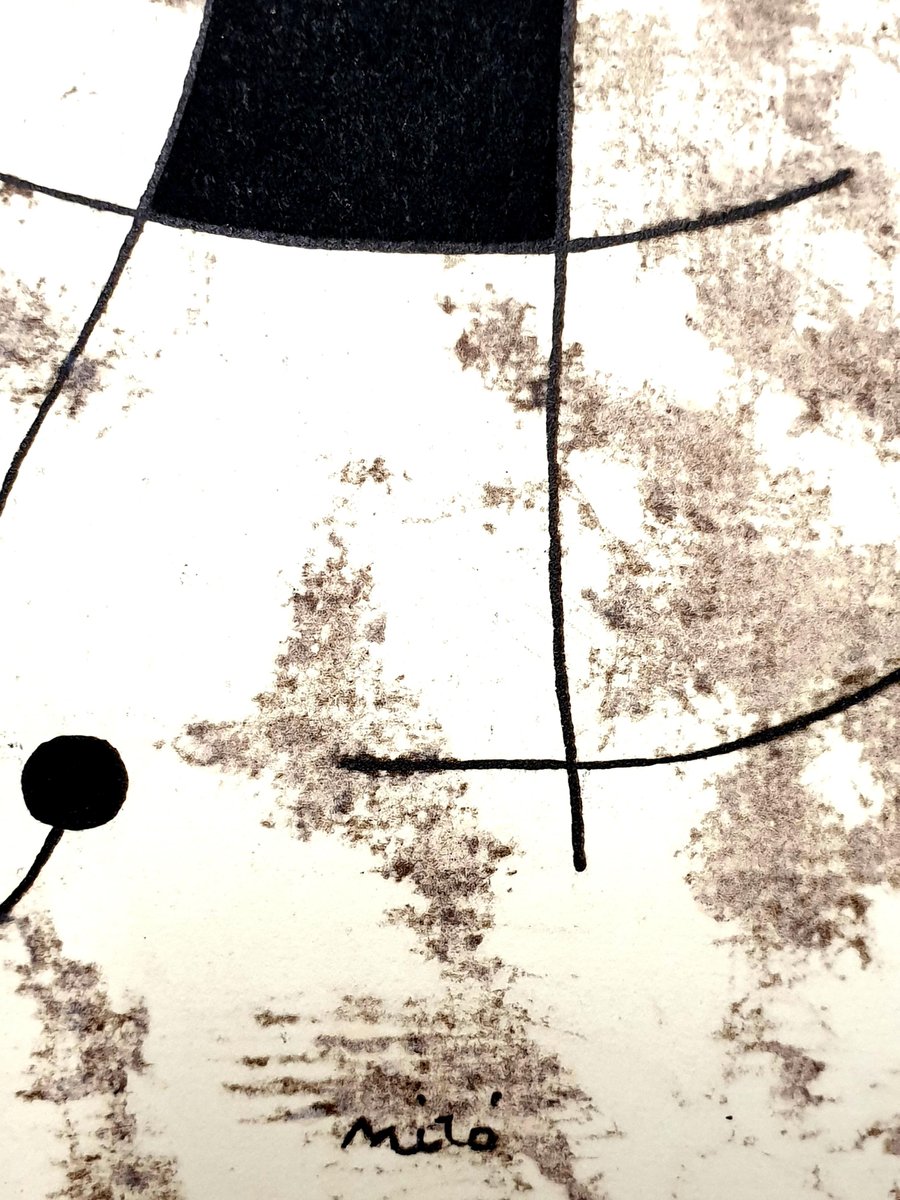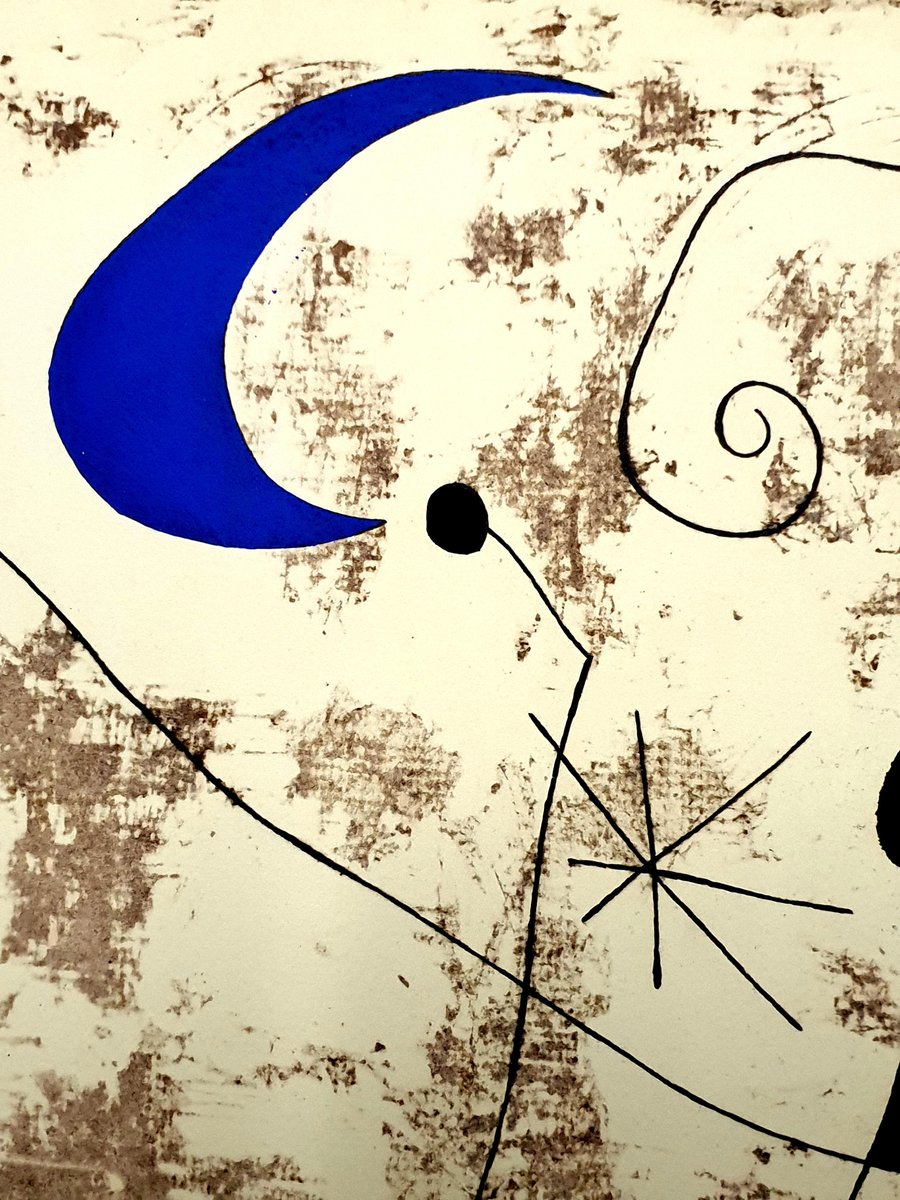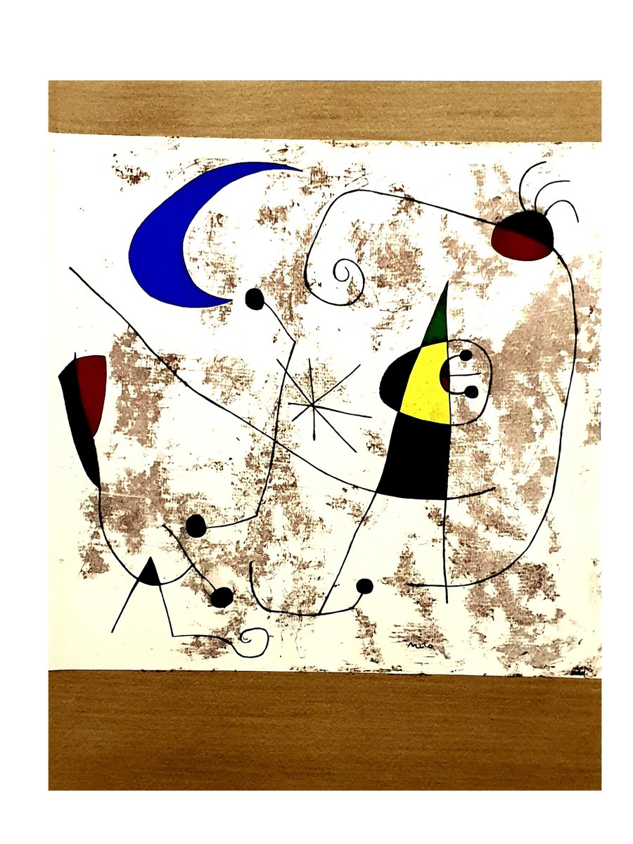 Joan Miro - Moon and Sun - Pochoir From the literary review ''XXe Siècle'' 1957 Dimensions: 32 x 24 cm Publisher: G. di San Lazzaro. Biography Joan Miró i Ferrà (April 20,1893 – December 25,1983) was a world renowned Spanish Catalan painter, sculptor, and ceramist who was born in the sea port city of Barcelona. Miro was the son of a watchmaking father and a goldsmith mother, he was exposed to the arts from a very young age. There have been some drwaings recovered by Miro dating to 1901, when he was only 8 years old. Miro enrolled at the School of Industrial and Fine Arts in Barcelona until 1910; during his attendance he was taught by Modest Urgell and Josep Pascó. After overcoming a serious bout of typhoid fever in 1911, Miro decided to devote his life entirely to painting by attending the school of art taught by Francesc Galí. He studied at La Lonja School of Fine Arts in Barcelona, and in 1918 set up his first individual exhibition in the Dalmau Galleries, in the same city. His works before 1920 (the date of his first trip to Paris) reflect the influence of different trends, like the pure and brilliant colors used in Fauvism, shapes taken from cubism, influences from folkloric Catalan art and Roman frescos from the churches. His trip to Paris introduced him to and developed his trend of surrealist painting. In 1921, he showed his first individual exhibition in Paris, at La Licorne Gallery. In 1928, he exhibited with a group of surrealists in the Pierre Gallery, also in Paris, although Miró was always to maintain his independent qualities with respect to groups and ideologies. From 1929-1930, Miró began to take interest in the object as such, in the form of collages. This was a practice which was to lead to his making of surrealist sculptures. His tormented monsters appeared during this decade, which gave way to the consolidation of his plastic vocabulary. He also experimented with many other artistic forms, such as engraving, lithography, water colors, pastels, and painting over copper. What is particularly highlighted from this period, are the two ceramic murals which he made for the UNESCO building in Paris (The Wall of the Moon and the Wall of the Sun, 1957-59). Joan Miro UNESCO Mural- “The Moon and The Sun” It was at the end of the 60´s when his final period was marked and which lasted until his death. During this time, he concentrated more and more on monumental and public works. He was characterized by the body language and freshness with which he carried out his canvasses, as well as the special attention he paid to material and the stamp he received from informalism. He concentrated his interest on the symbol, not giving too much importance to the representing theme, but to the way the symbol emerged as the piece of work. Miro had a very eccentric style that is the embodiment of his unique approach to his artwork. In 1976 the Joan Miró Foundation Centre of Contemporary Art Study was officially opened in the city of Barcelona and in 1979, four years before his death, he was named Doctor Honoris Causa by the University of Barcelona.