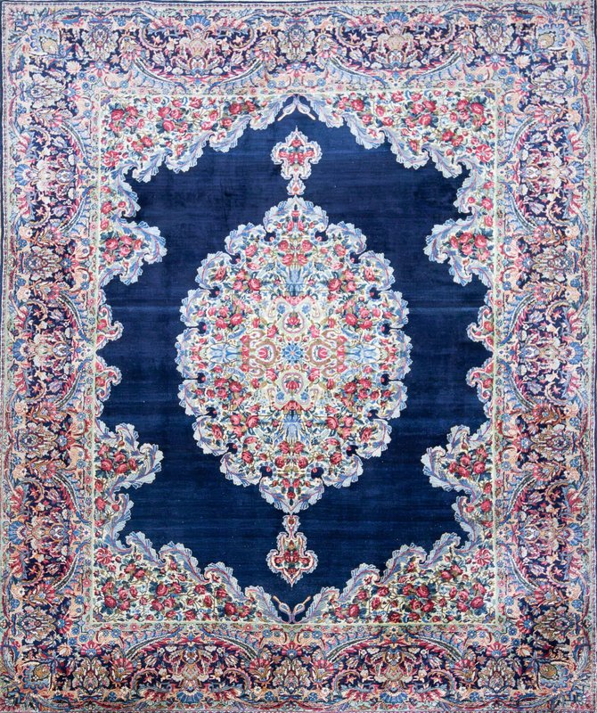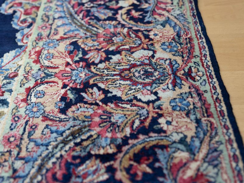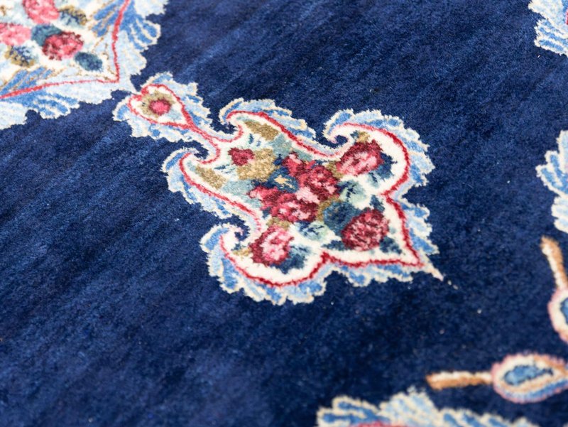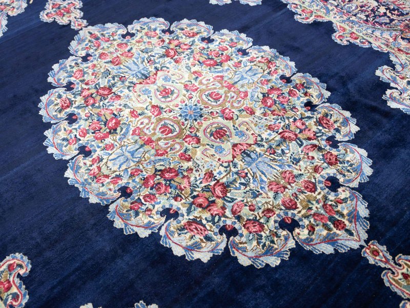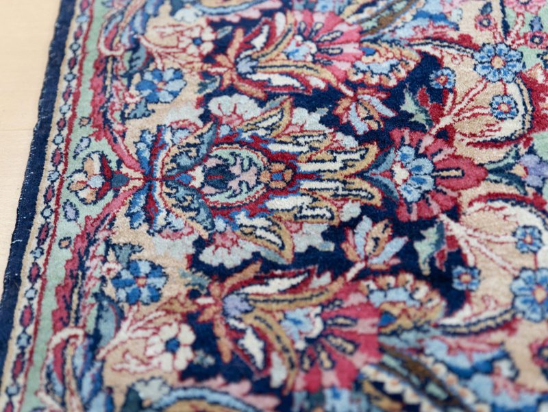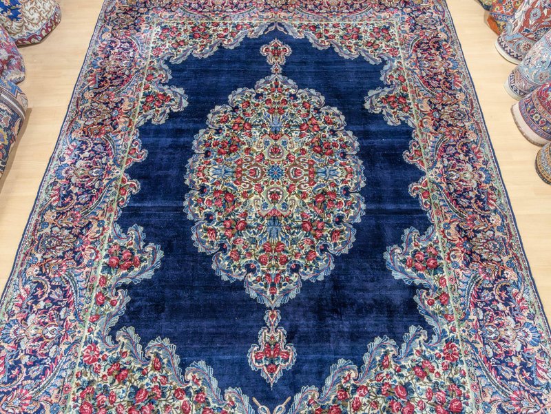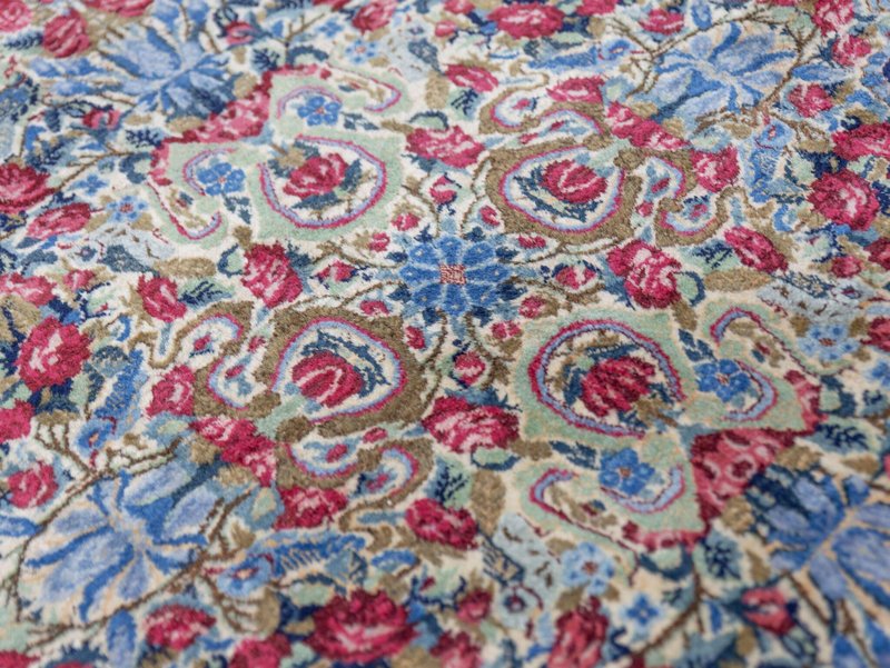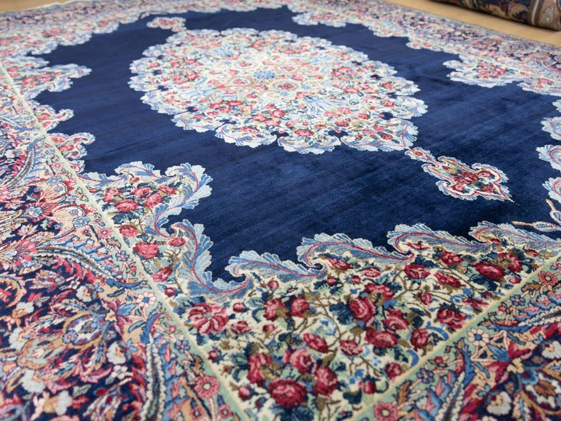 Knotendichte: 300000-360000 pro Quadratmeter | 342 × 212 cm | ORIGINAL Kirman Kusheh Anguri Motiv | Handgeknüpfter Perserteppich aus ORIGINAL Iran (kein Replika – historische Kirman-Muster wurden häufig kopiert) | Minimal Patina, auf Wunsch Renovierung möglich | Flor: Hochwertige Wolle | Zustand: Top | Herkunft: Kirman, Iran The YouTube link with the complete video tour can be found in the gallery as well as a product link on our website. Important note: Antique and original Kirman carpets like this one are rare. Mass-produced copies cannot achieve the quality or historical depth of a genuine Kirman original. Description Original Kirman Persian carpet – 342 × 212 cm This extraordinary specimen is a authentic Kirman Persian rug From Iran, hand-knotted in the traditional way. The pattern shows the well-known historical design. Kusheh Anguri Motif (Grape cluster), a particularly popular and original motif from Kirman. The piece dates from 1970–1980 and is located in a Top condition with minimal patina. Hand-knotted – Traditional Kirman craftsmanship Each knot of this rug was individually tied by hand, using centuries-old techniques. The pile is made of high-quality wool and is dense, stable, and durable. This results in a rug that is not only visually impressive but also retains its shape and beauty for decades and generations to come. Minimal patina – historical character The rug displays a light, natural patina that emphasizes its historical character. Professional restoration can be carried out upon request for an additional fee. However, we recommend leaving the piece in its original condition to preserve its historical value and authenticity. Due to its high degree of originality and popular pattern, this rug is particularly attractive to collectors and enthusiasts of antique Kirman rugs. Original vs. Replica – A crucial difference Kirman patterns were widely copied both within and outside of Iran. This example is a genuine original – not a replica – and is certified and verified by us. Copies cannot achieve the quality, density, or historical depth of a genuine Kirman carpet. Condition – Excellent condition The surface is soft, dense, and even. The pattern is clear and vibrant, and the edges and fringes are sturdy. This piece is suitable both as a decorative collector's item and for everyday use in living spaces, galleries, or representative areas. Decorative effect – timeless and popular The Kusheh Anguri pattern is known for its harmonious composition and fine detailing. The color combinations of blue and subtle contrasts create an elegant, classic, and timeless look. It's a striking feature in any room, blending traditional character with vibrant presence. FAQ 1. Is this rug a genuine original from Kirman? Yes. This piece is 100% from Kirman, Iran, and is a historical original with an authentic Kusheh Anguri motif – not a replica. 2. Can the carpet be renovated? Yes, it can be professionally renovated upon request for an additional fee. However, we recommend leaving the carpet in its original condition to preserve its historical patina and value. 3. Why are Kirman patterns so sought after? Kirman carpets are known for their exceptional knot density, craftsmanship, and timeless patterns. Historical originals are rare and possess high cultural and collector value.