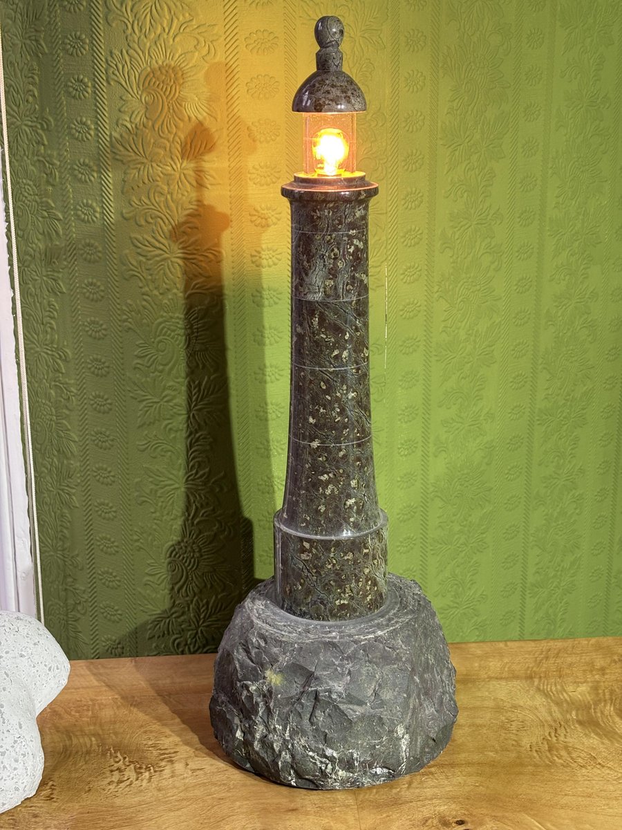 Lampada a forma di faro in pietra a serpentina, anni '30 di Unknown for Unknown, anni '20