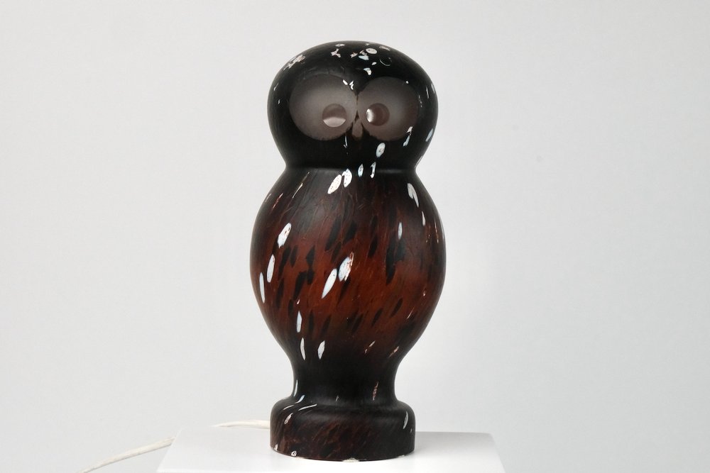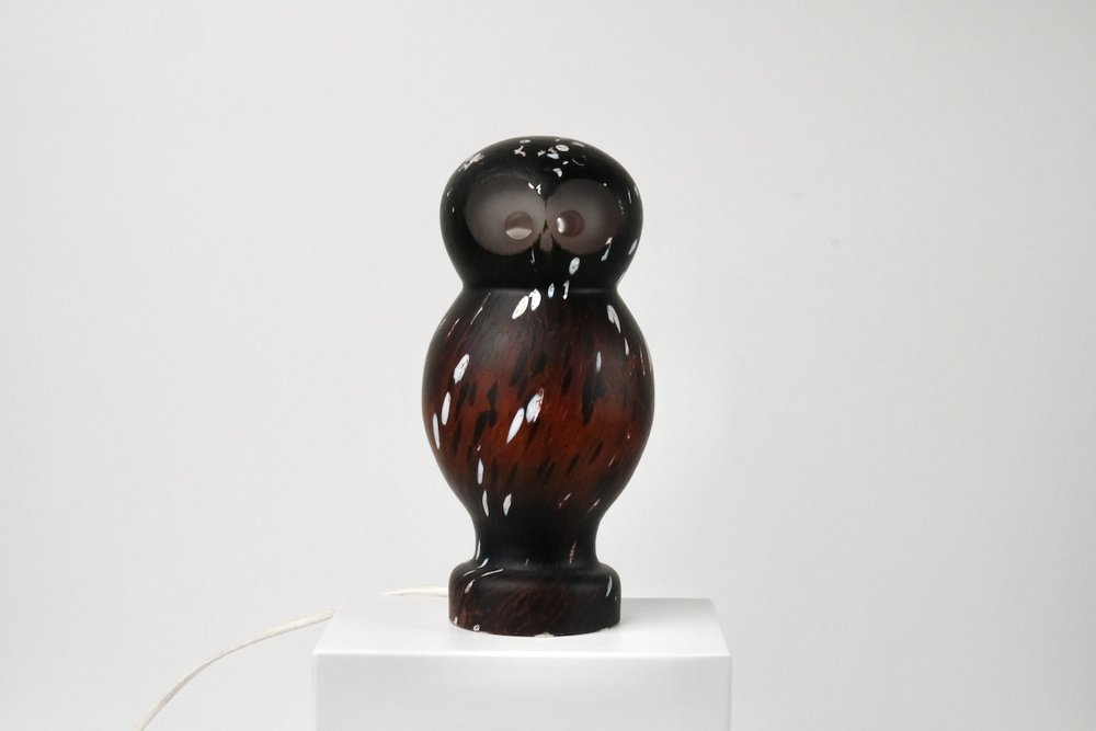 The Glass Owl Lamp from Skruf Sweden in the style of Monica Backström is a stunning piece of glass art that combines elegance and whimsy. This is a lamp in the the style of Monica Backström, who is a renowned Swedish glass artist known for her intricate and detailed designs. The lamp was originally produce by Kosta Boda, that took over Skruf Glassworks in 1978. The design of the lamp belongs to Monica Backström, a renowned Swedish glass artist that had been working for Kosta Boda from 1964 to 1978.