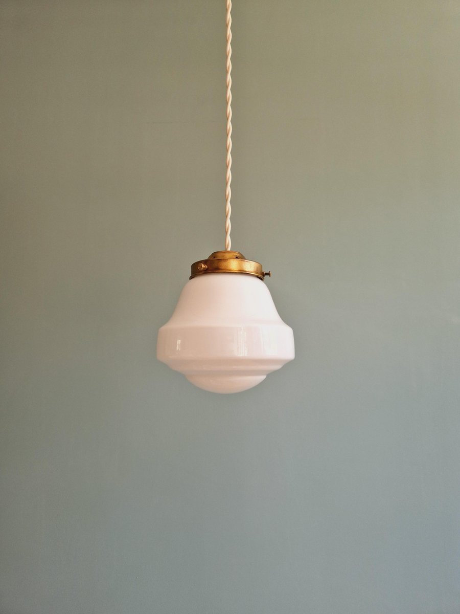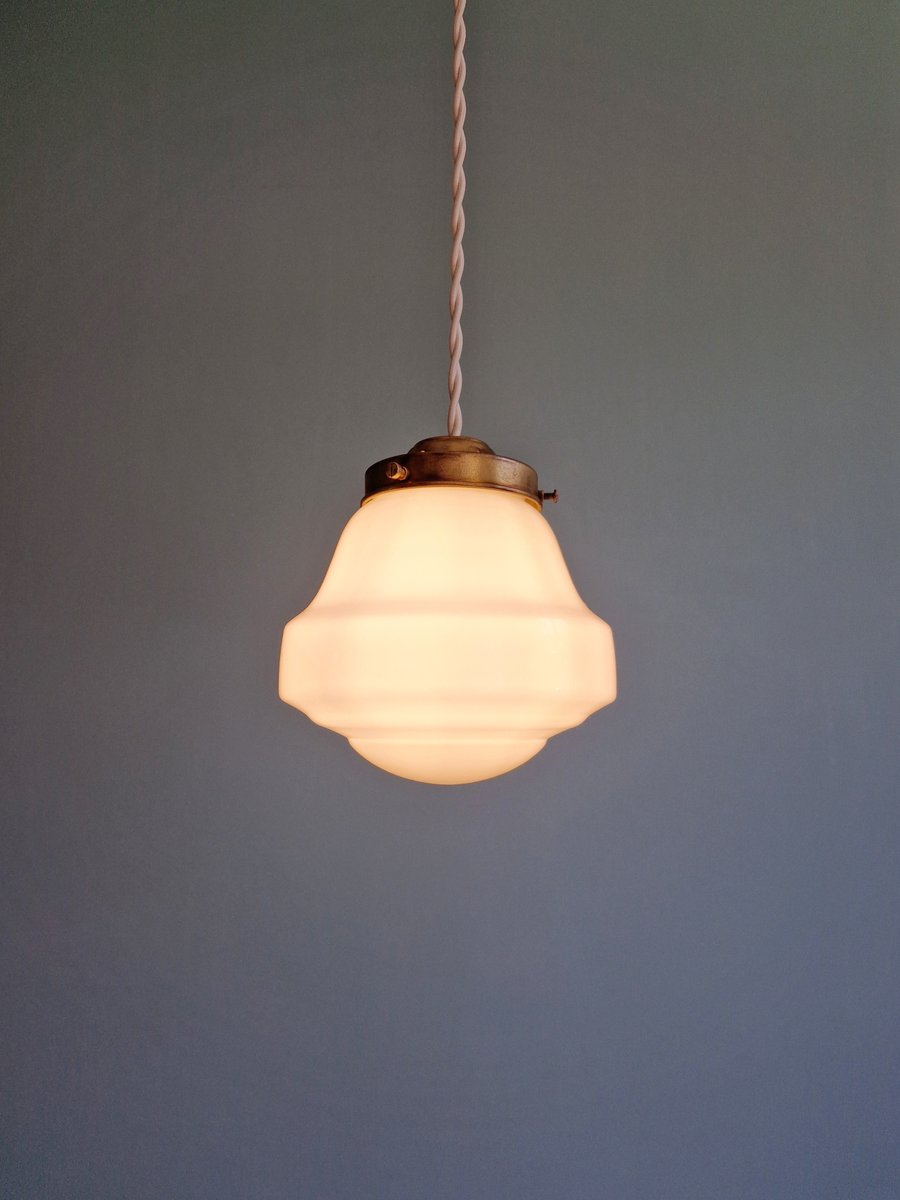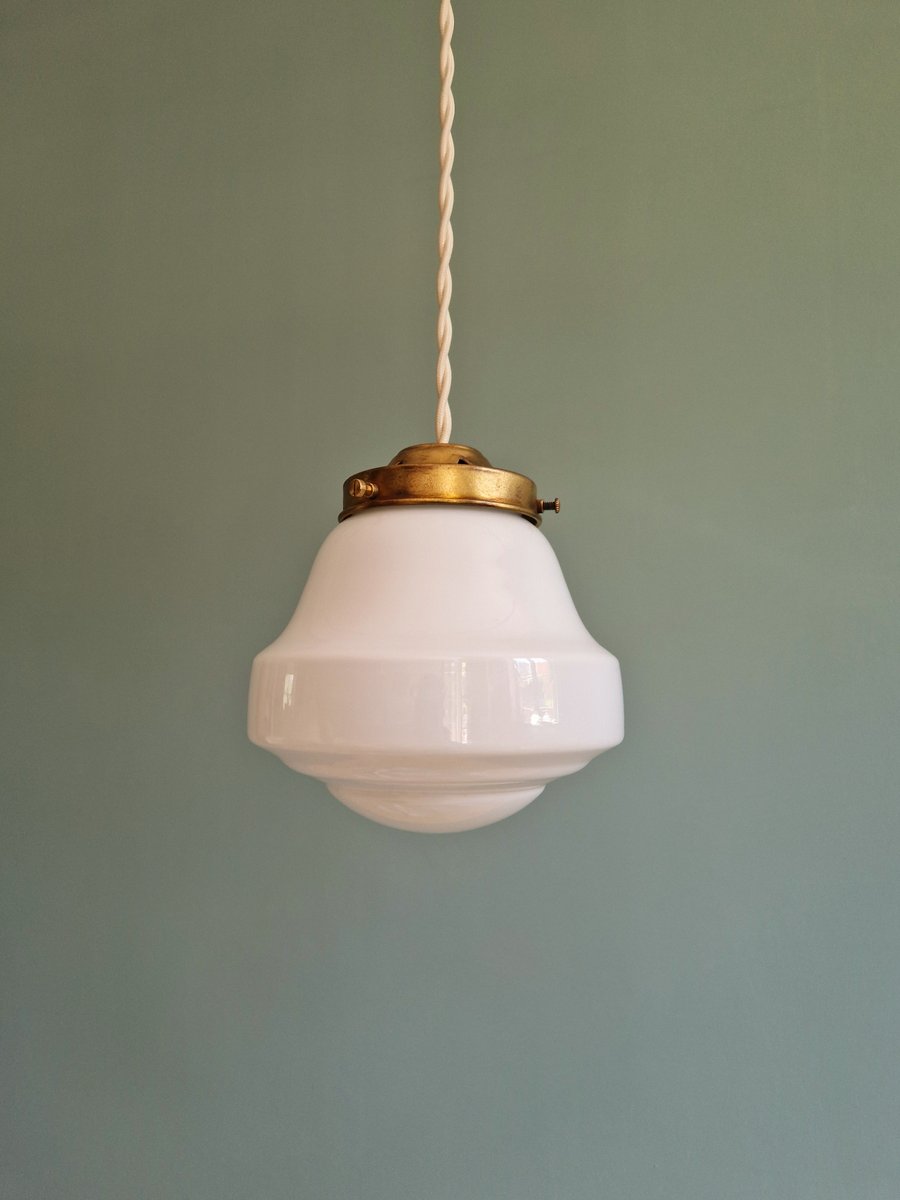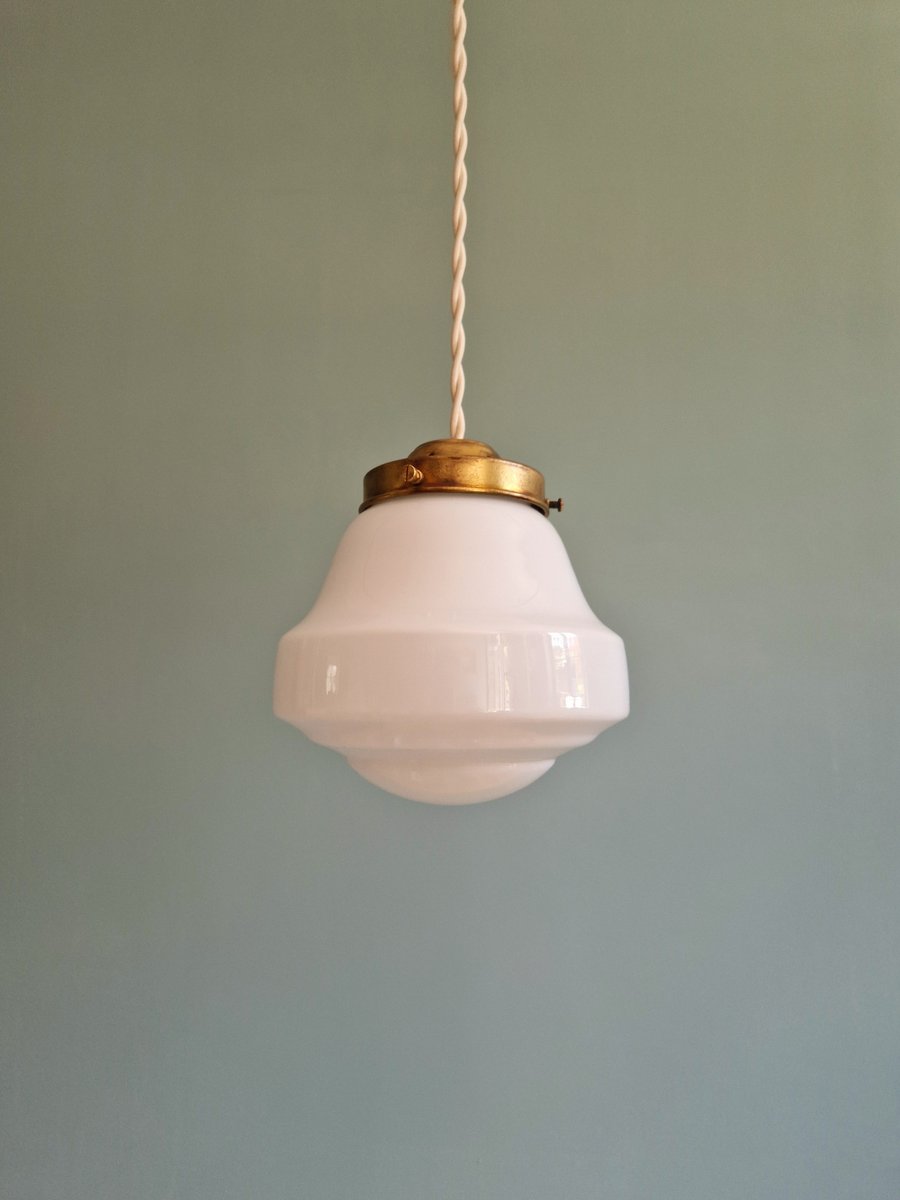 Lampada a sospensione Art Déco in vetro opalino bianco, anni '20