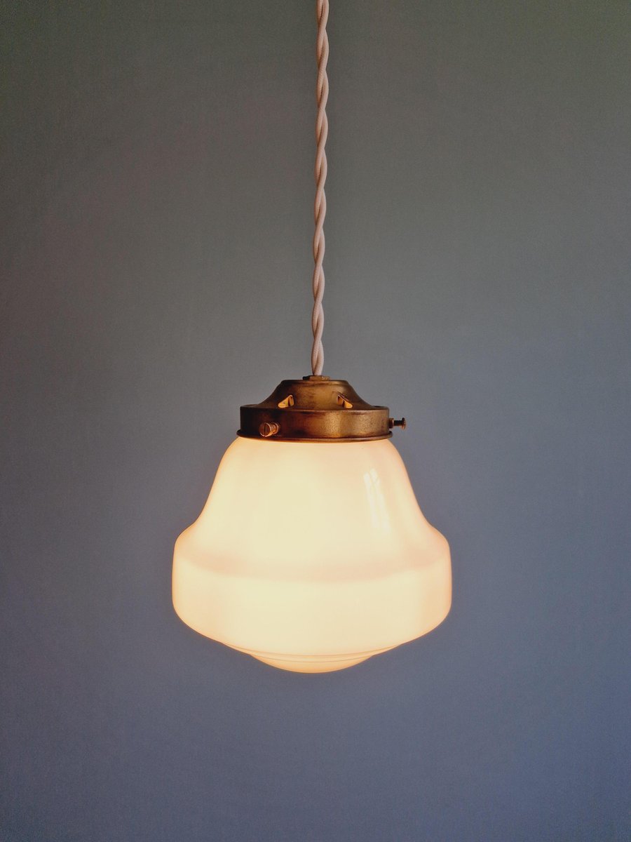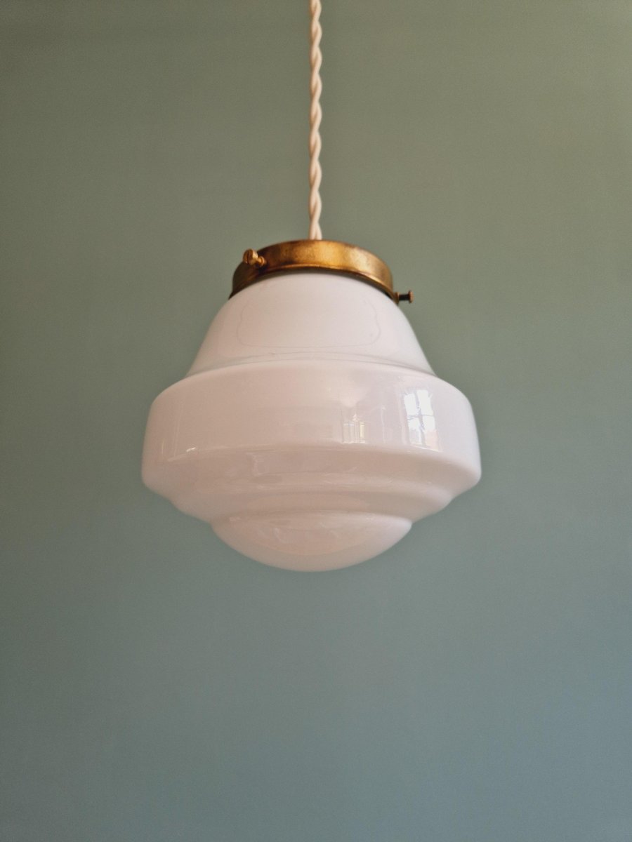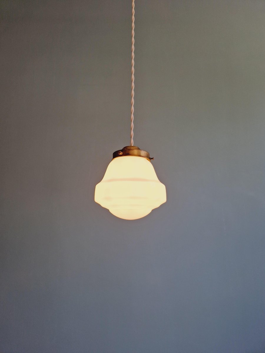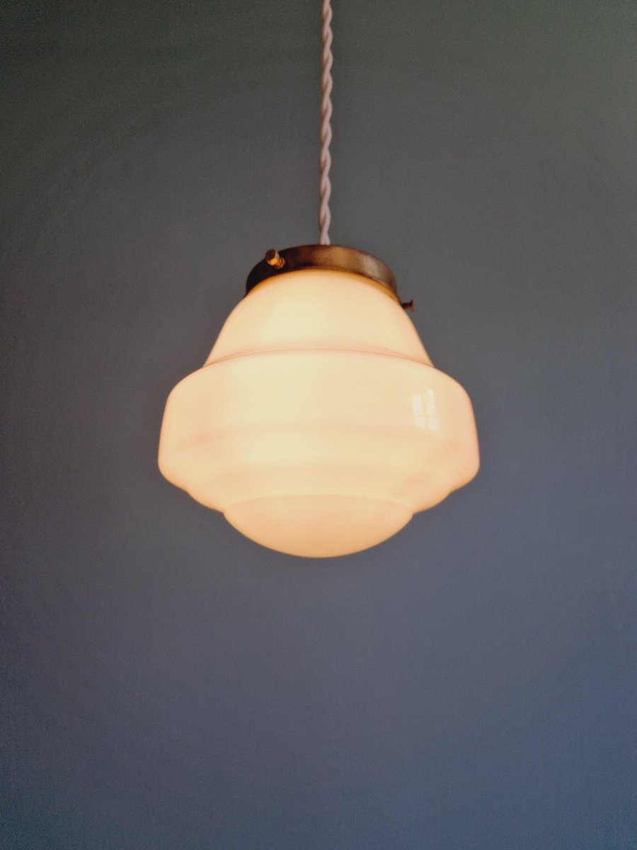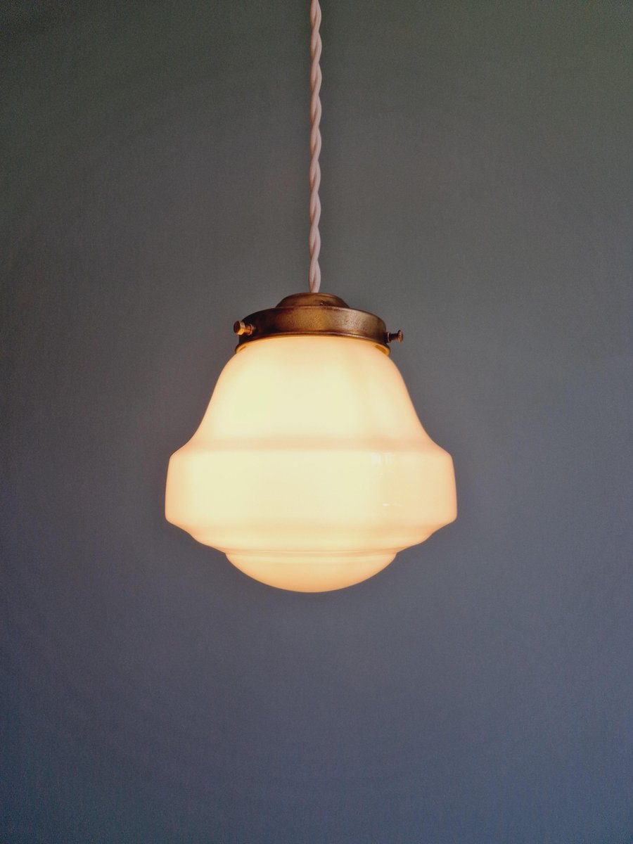 Lampada a sospensione Art Déco in vetro opalino bianco, anni '20