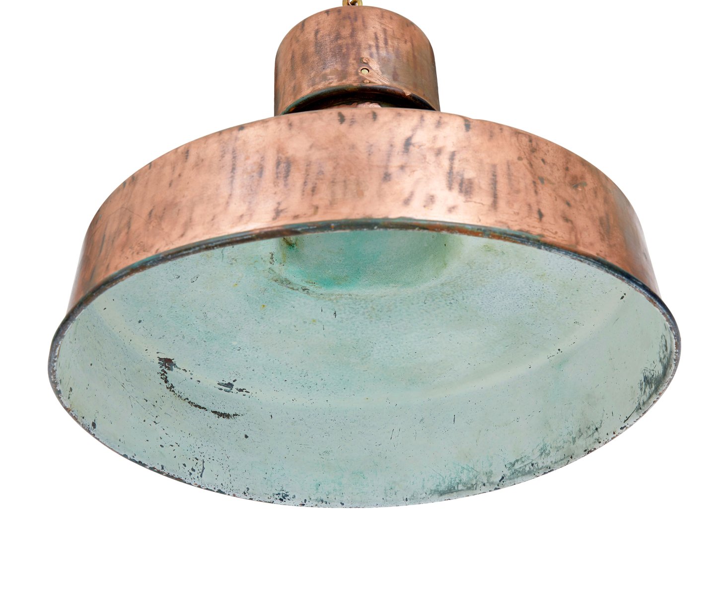 Lampada a sospensione Art Déco industriale in rame, 1920