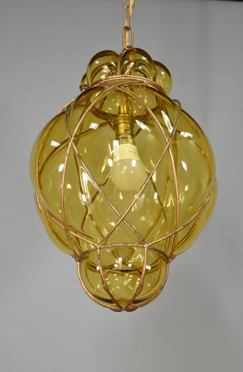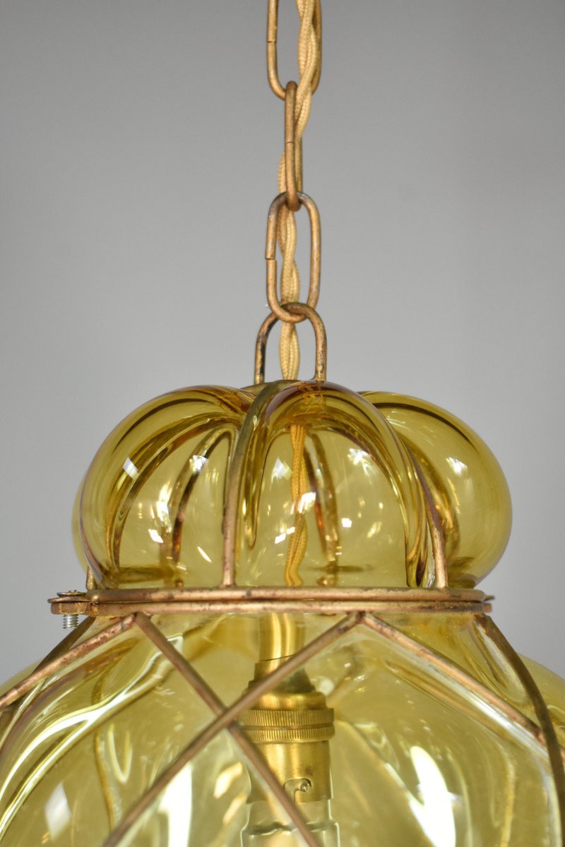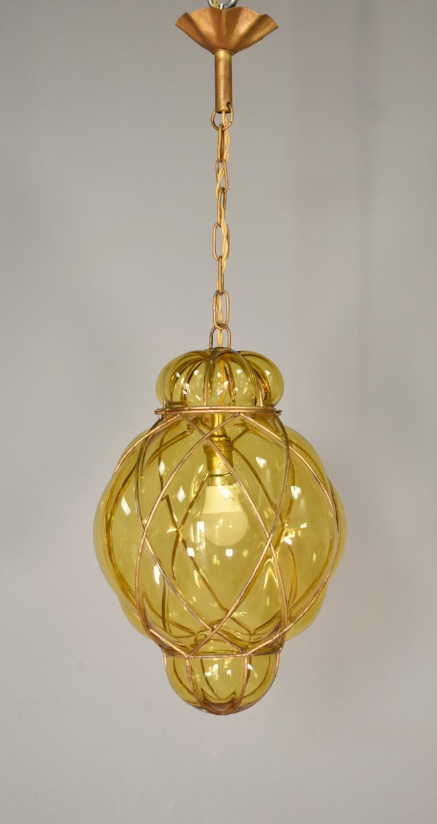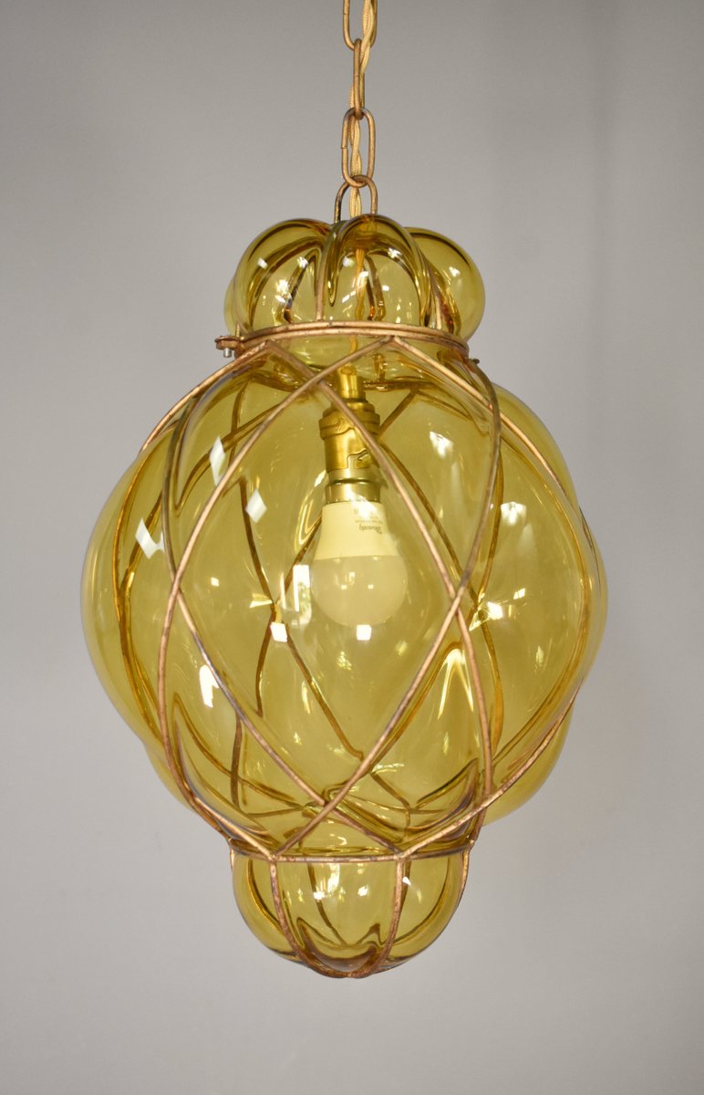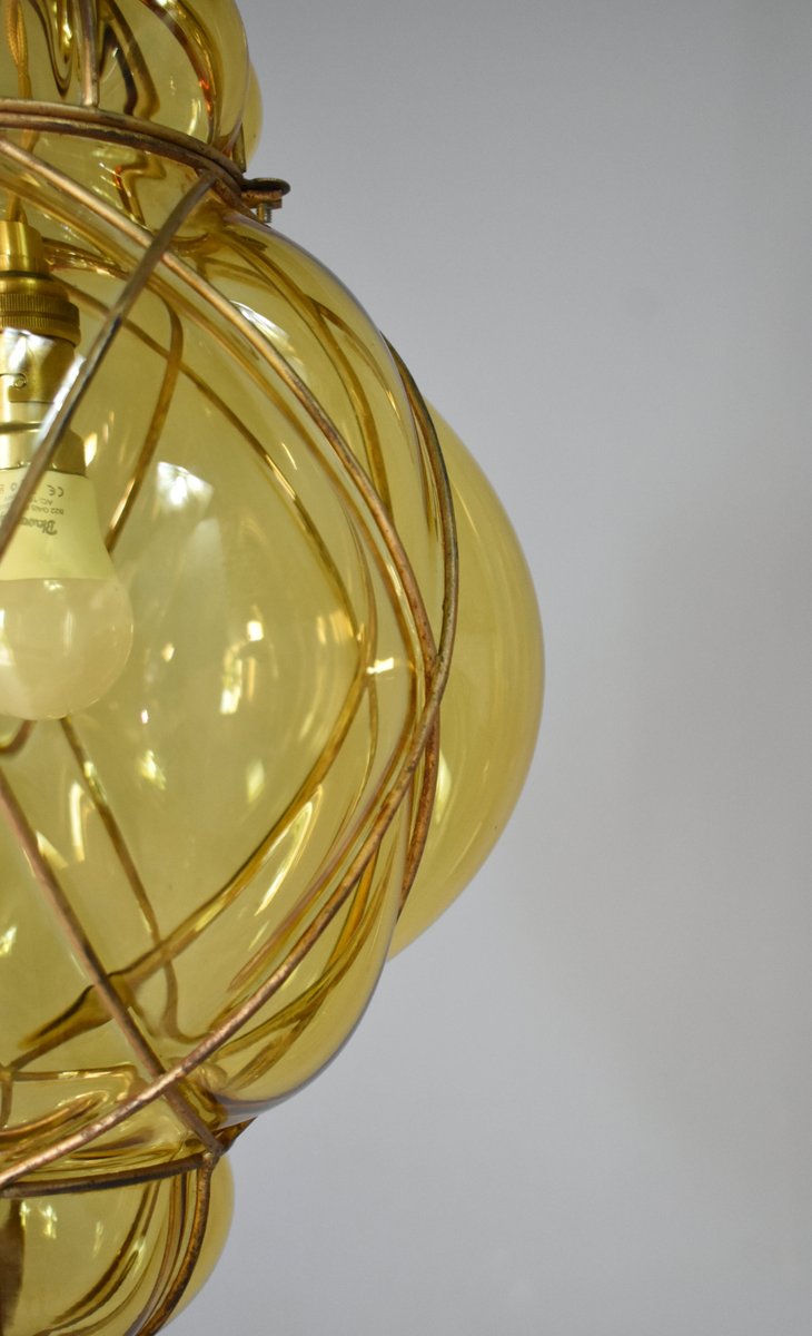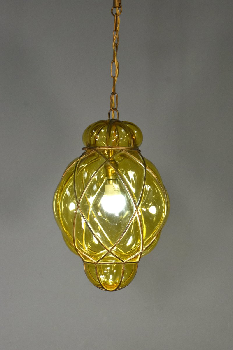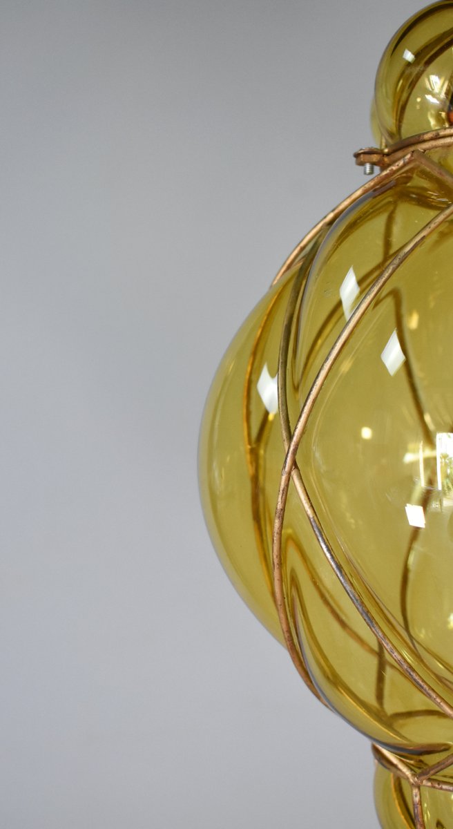 Lampada a sospensione in vetro di Murano soffiato a mano di Murano per Seguso, anni '40