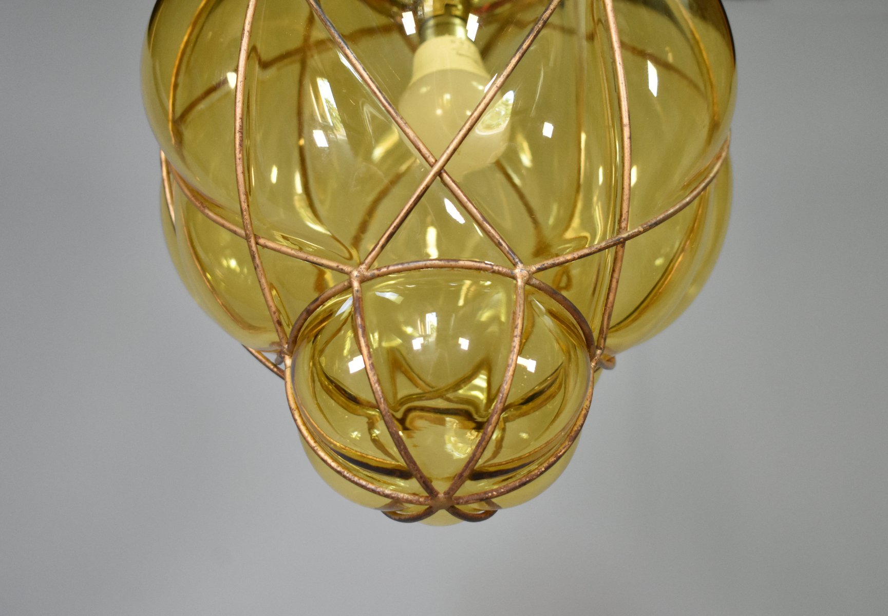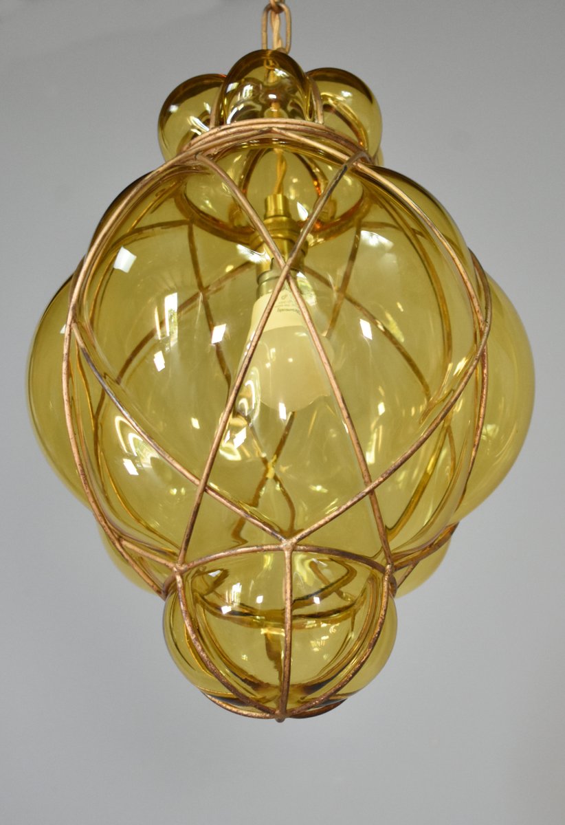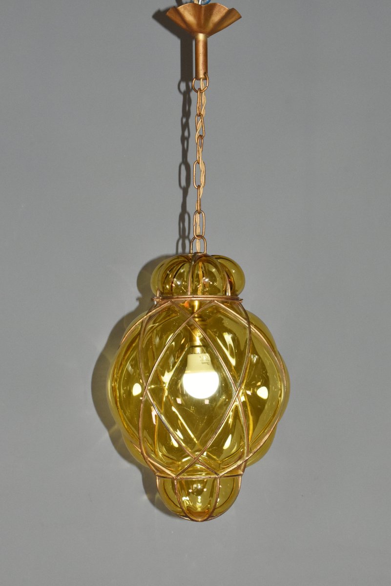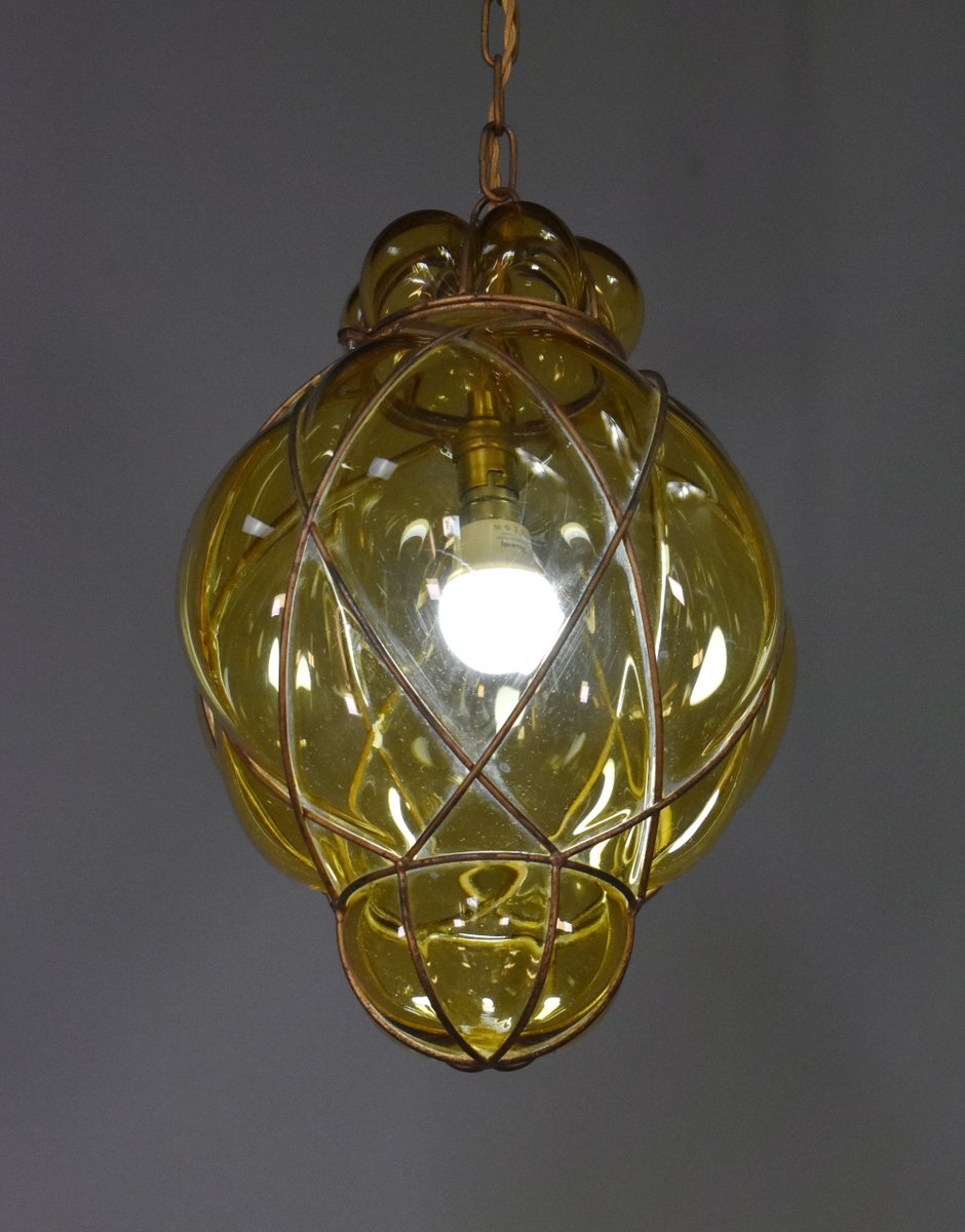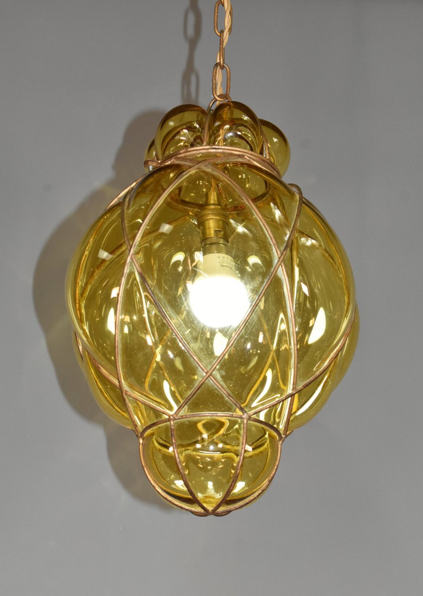 Lampada a sospensione in vetro di Murano soffiato a mano di Murano per Seguso, anni '40
