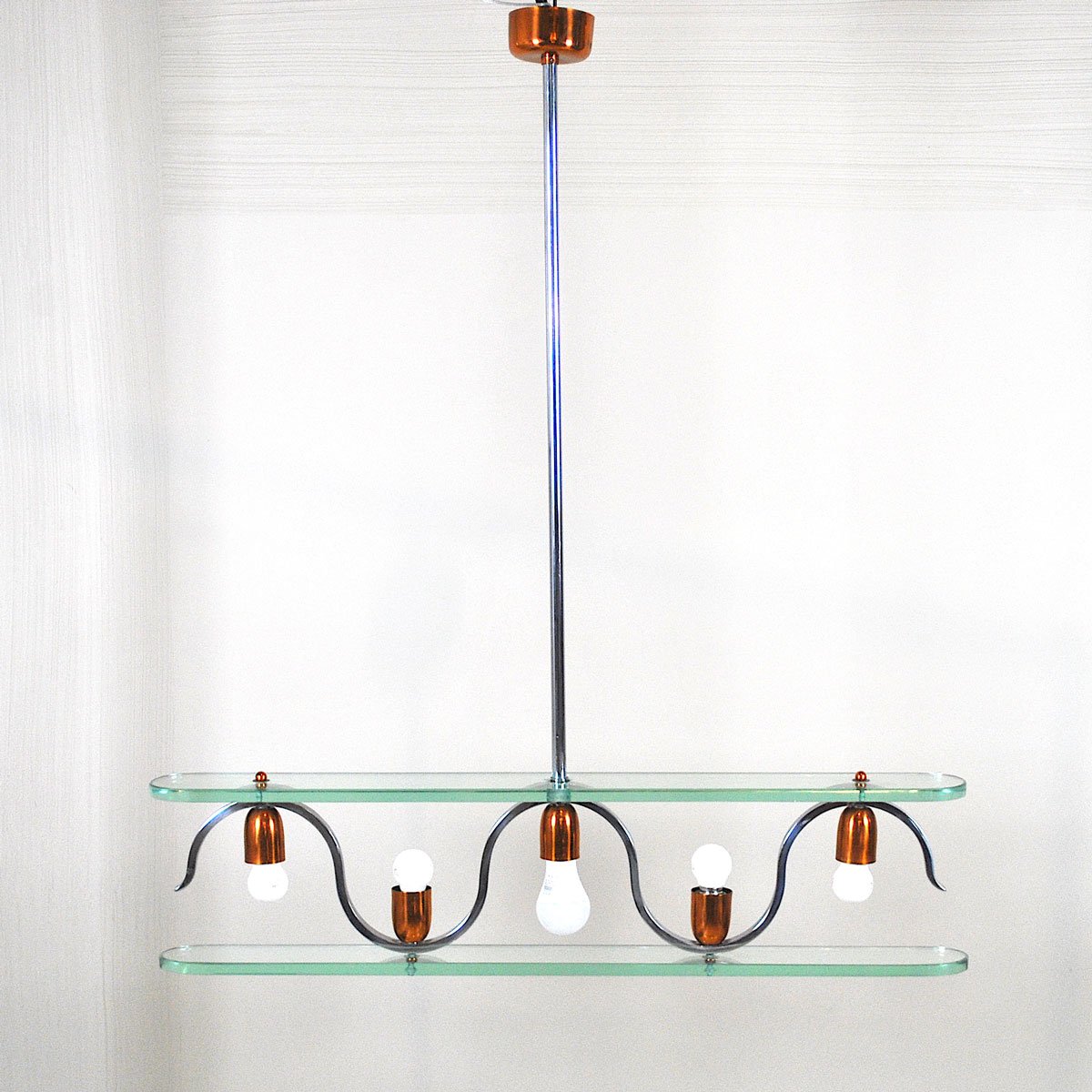 Throughout the 1940s and early 1950s, Fontana Arte developed few new products, relying instead on iterations of Chiesa’s designs from the 1930s. This creative conservatism stemmed from the devastation of the war years and the economic turmoil that immediately followed. A few private commissions from hotels, offices, and museums helped sustain the company until the postwar recovery took hold in Italy.