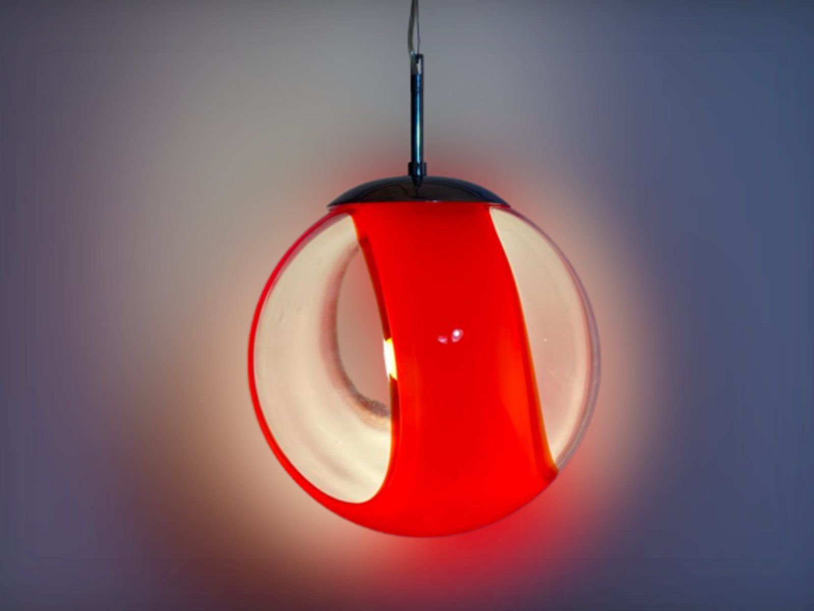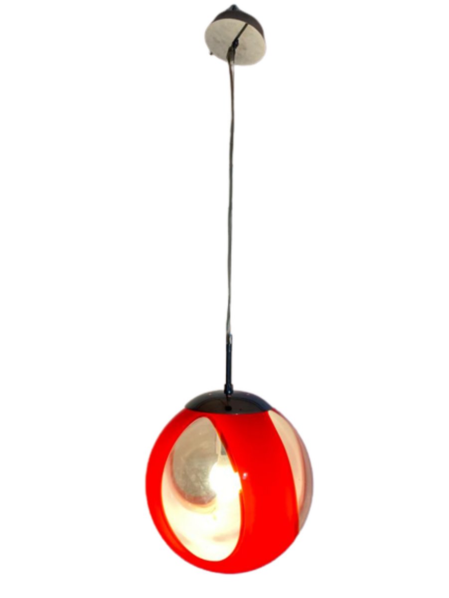 Lampada a sospensione sferica vintage Space Age rossa
