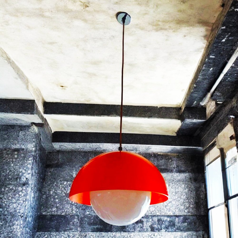 Lampada da soffitto vintage anni '70 in arancione e bianco - Mid-Century Space Design