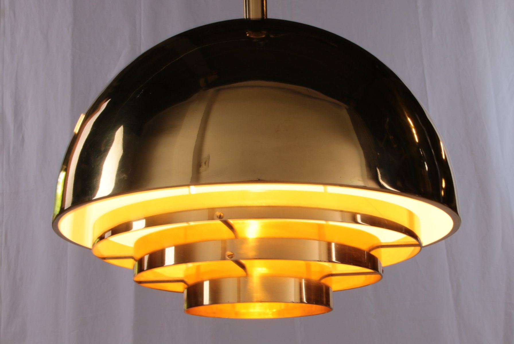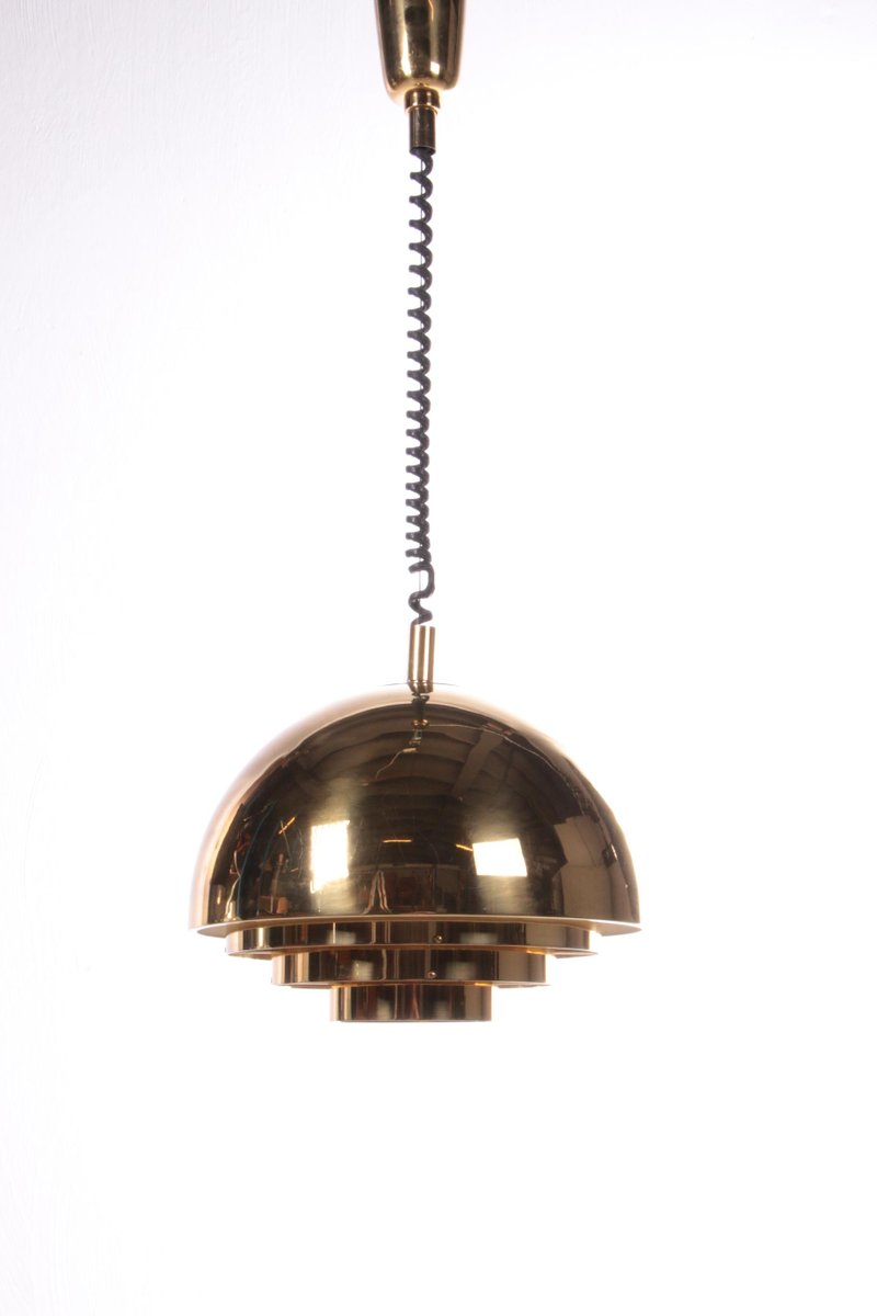 Elegant Mid-Century Modern brass hanging lamp or 'Dome' hanging lamp.