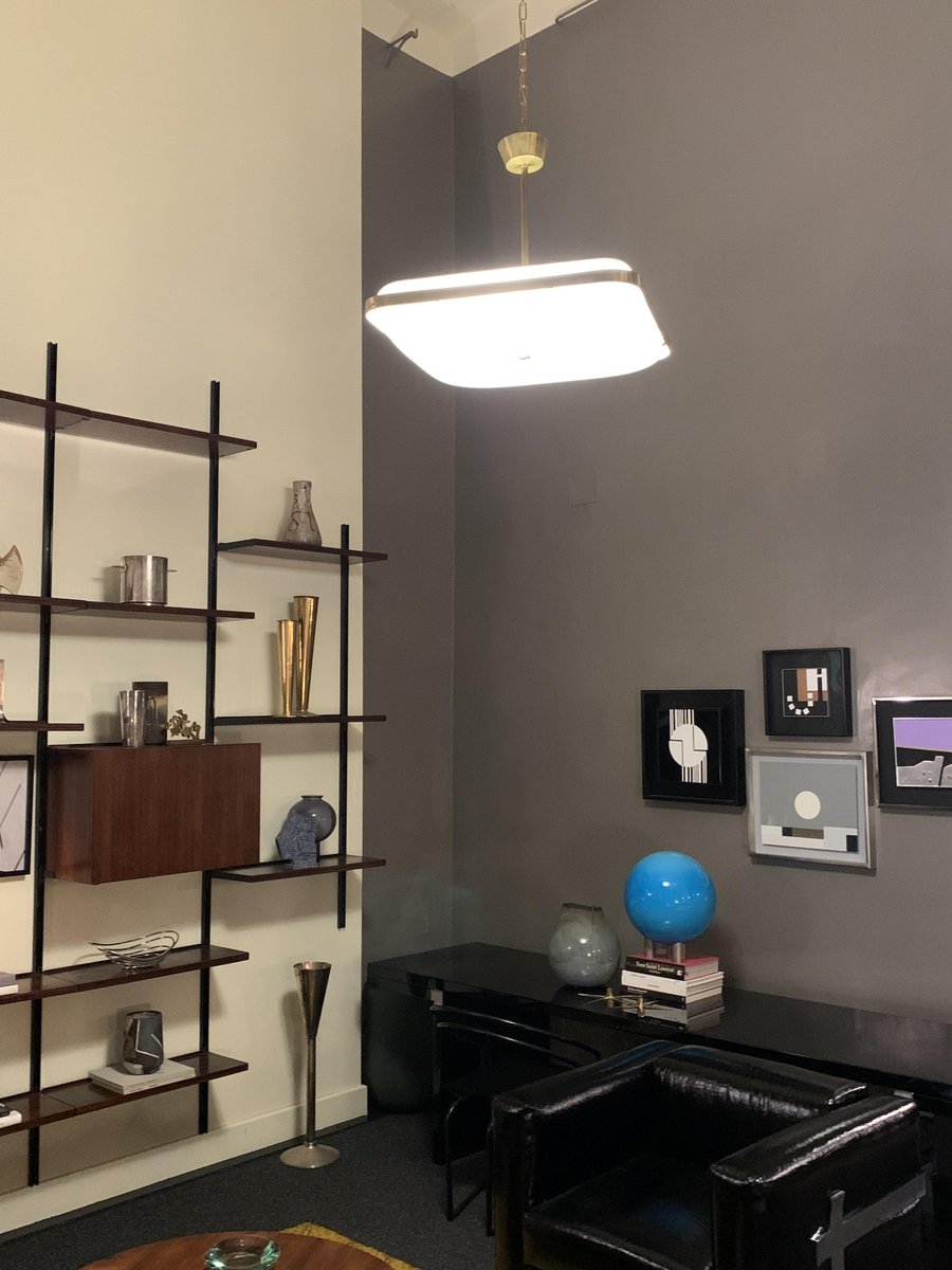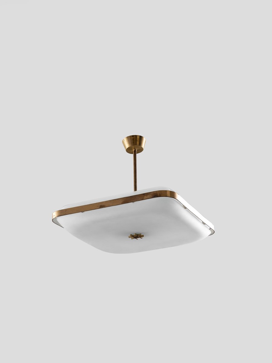Throughout the 1940s and early 1950s, Fontana Arte developed few new products, relying instead on iterations of Chiesa’s designs from the 1930s. This creative conservatism stemmed from the devastation of the war years and the economic turmoil that immediately followed. A few private commissions from hotels, offices, and museums helped sustain the company until the postwar recovery took hold in Italy.