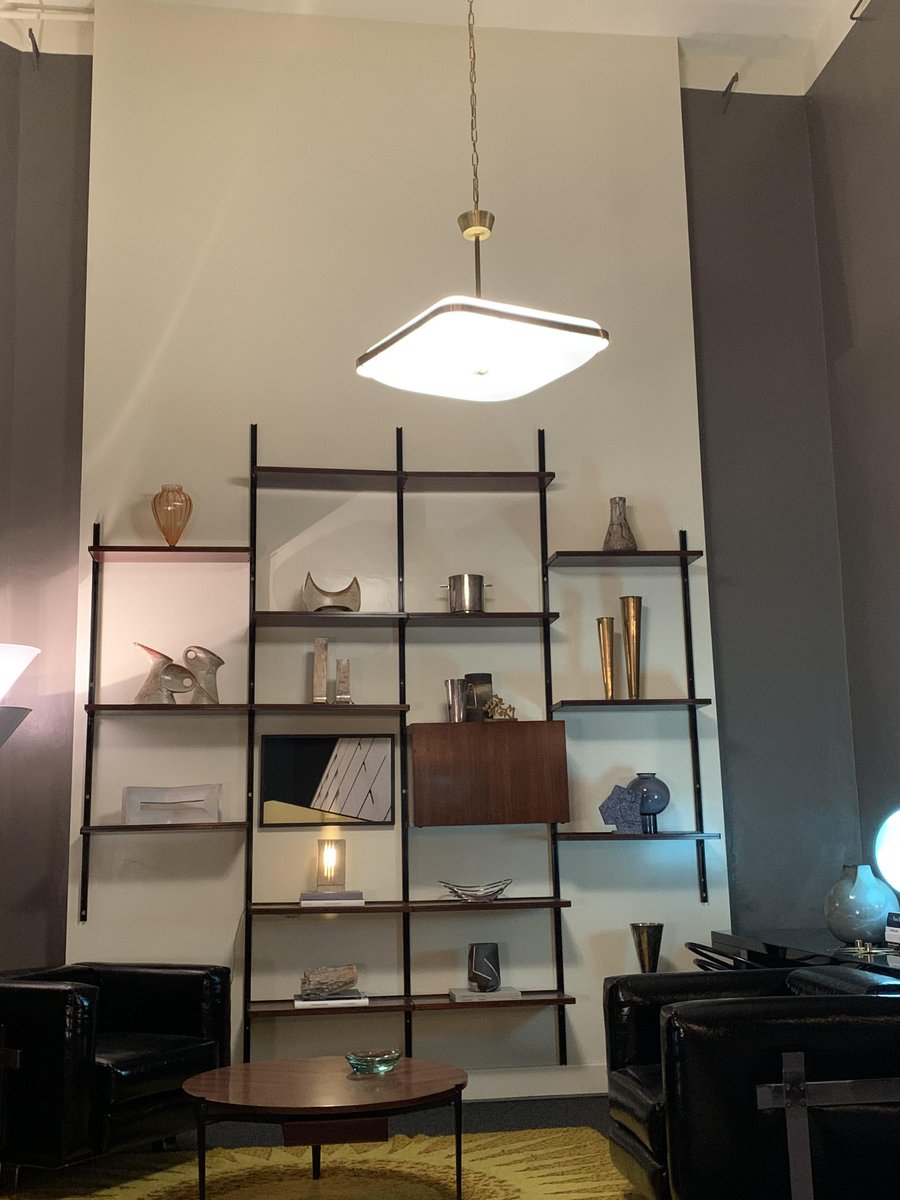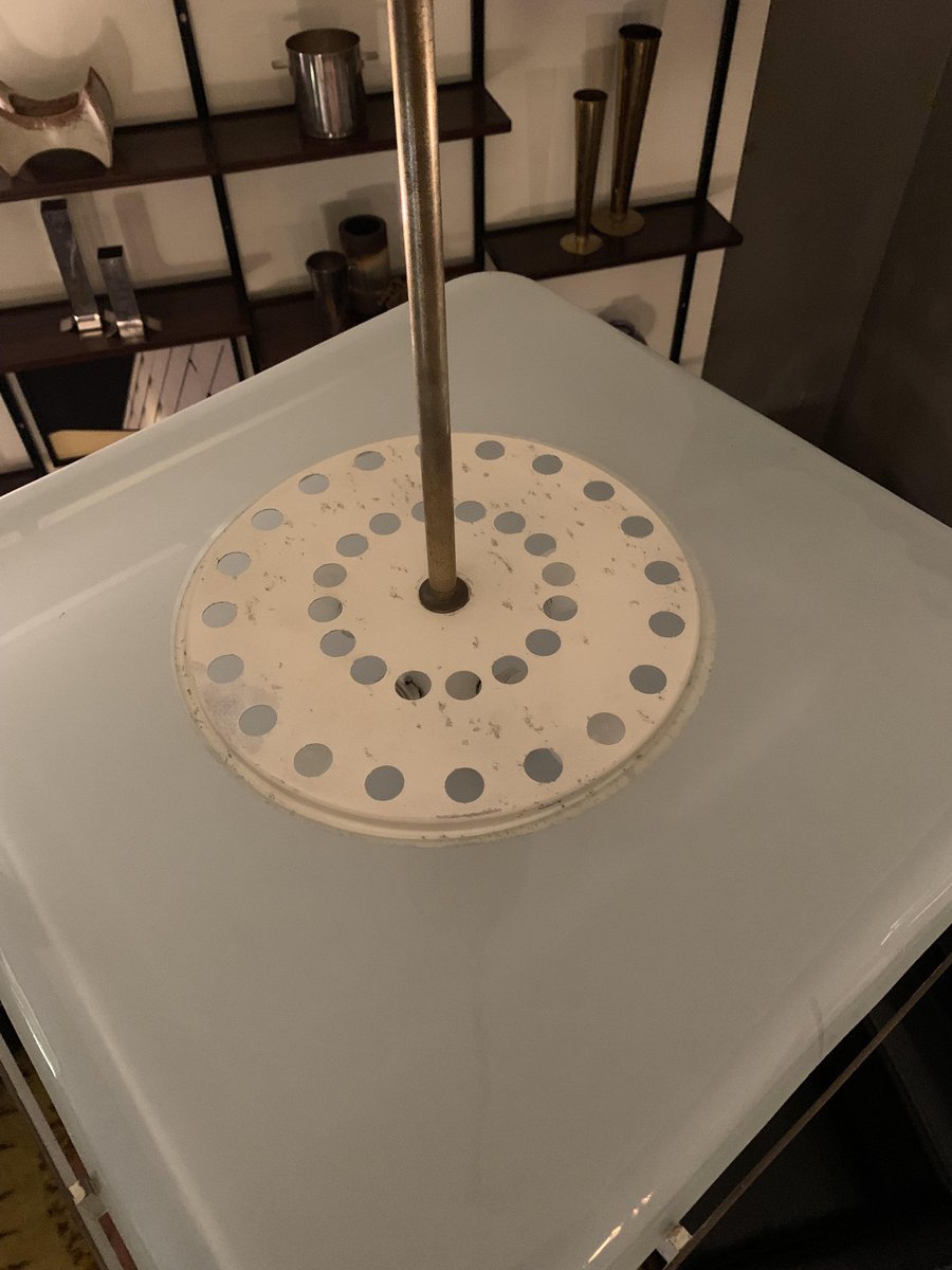 In 1954, French-born designer Max Ingrand (1908-1969) took the helm as artistic director and ushered in a new era of fashionableness and acclaim for Fontana Arte. From chandeliers, sconces, and lamps to furniture, mirrors, and decorative objects, the company’s prolific, sometimes bespoke, output during the postwar era earned it a reputation for glamour and au courant style. One piece from the ’50s that remains a bestseller today is Ingrand’s Fontana Table (1954). Notably, many pieces produced by Ingrand in collaboration with Pietro Raimondi (of whom little is published) in the ’50s and ’60s are now popular on the vintage market.